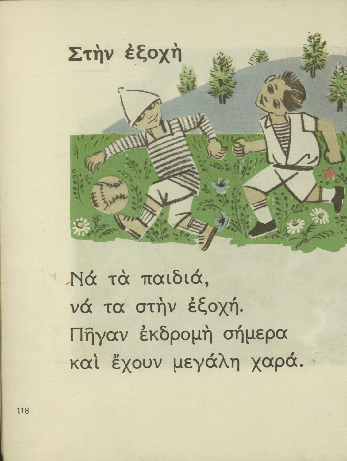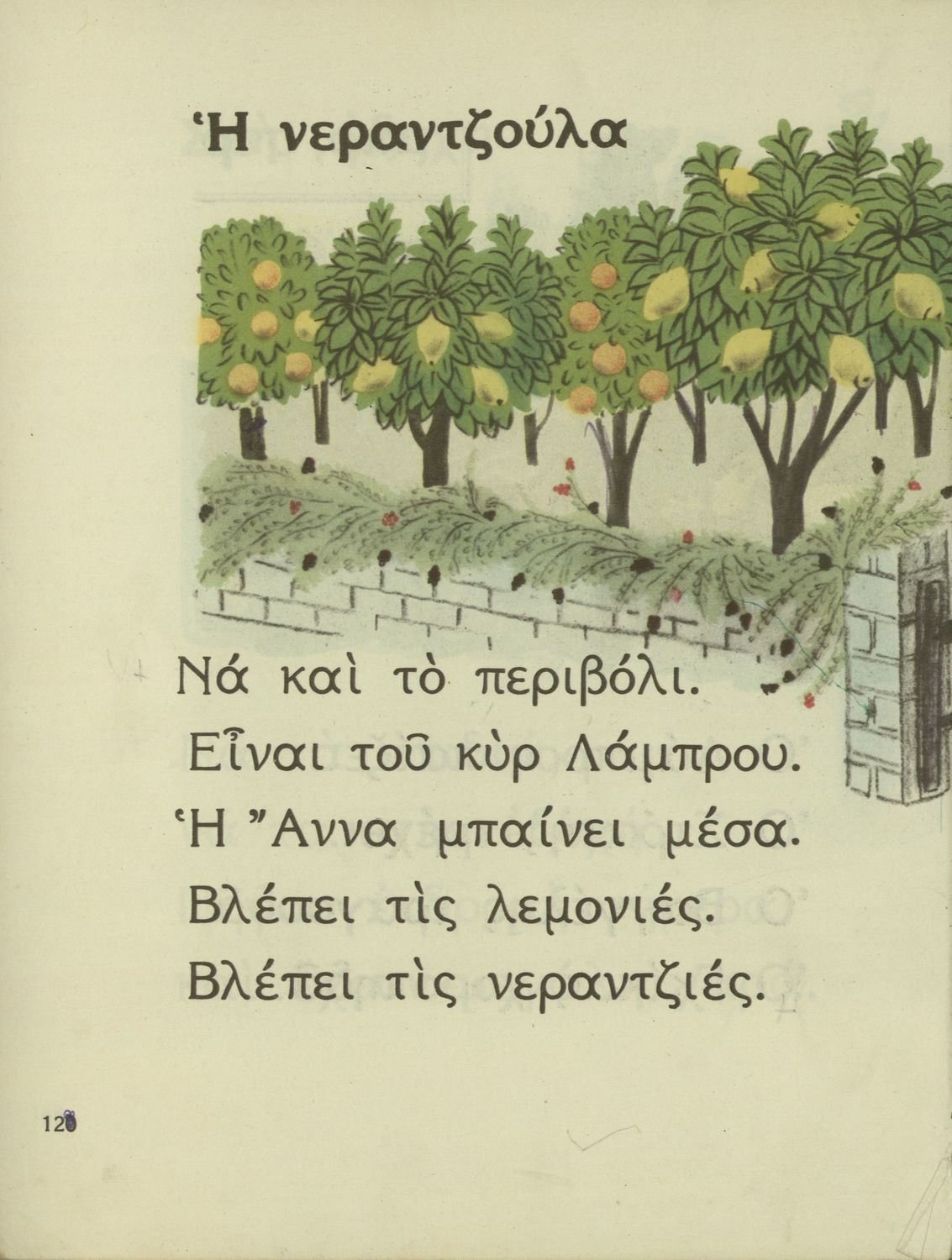 520 ## _aΑναγνωστικό Α΄ Δημοτικού που περιέχει γράμματα, συλλαβές, λέξεις, προτάσεις, κείμενα και ποιήματα για την εκμάθηση της Γλώσσας. Τα θέματα βασίζονται στην θρησκευτική, εθνική, οικογενειακή, κοινωνική, καθημερινή ζωή του τόπου. Ήρωες του βιβλίου ο Μίμης και η Άννα.