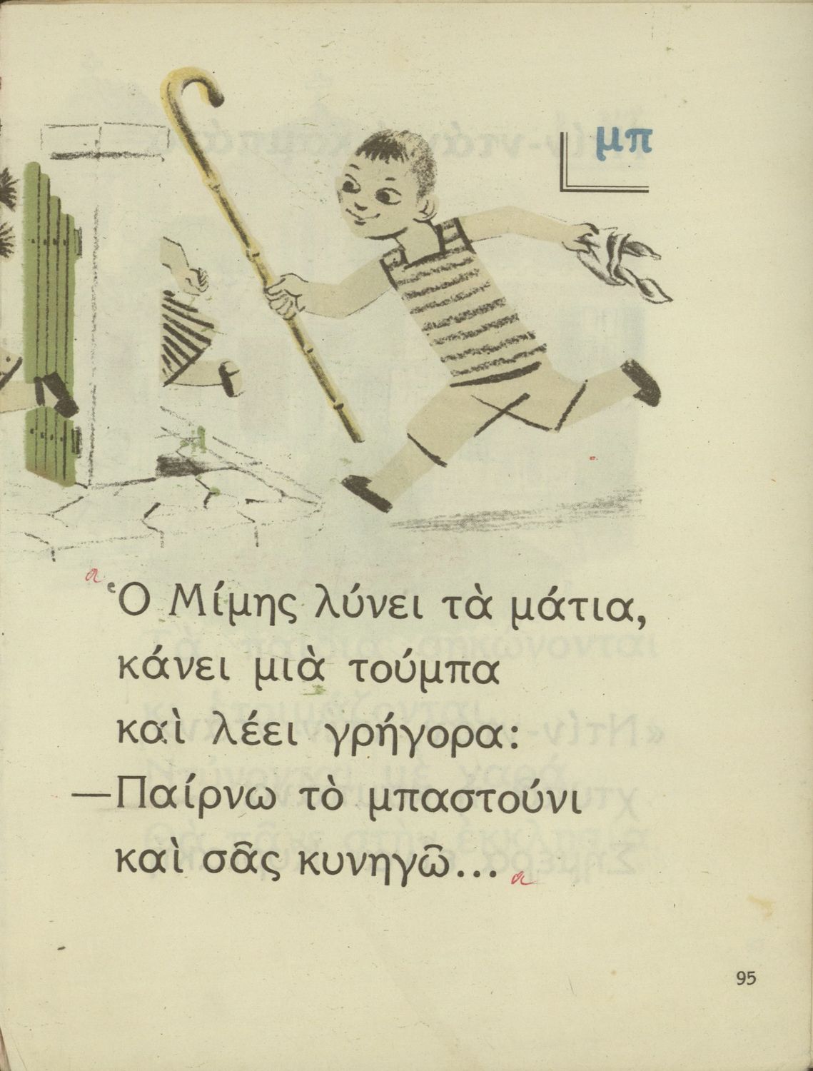 Παρουσίαση περιεχομένου: Αναγνωστικό Α΄ Δημοτικού που περιέχει γράμματα, συλλαβές, λέξεις, προτάσεις, κείμενα και ποιήματα για την εκμάθηση της Γλώσσας. Τα θέματα βασίζονται στην θρησκευτική, εθνική, οικογενειακή, κοινωνική, καθημερινή ζωή του τόπου. Ήρωες του βιβλίου ο Μίμης και η Άννα.
