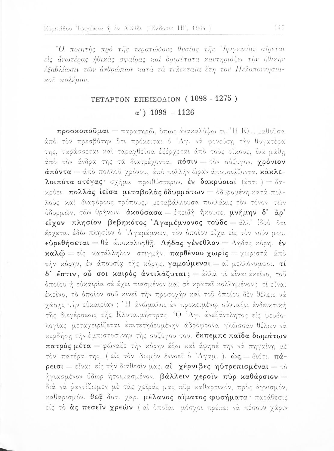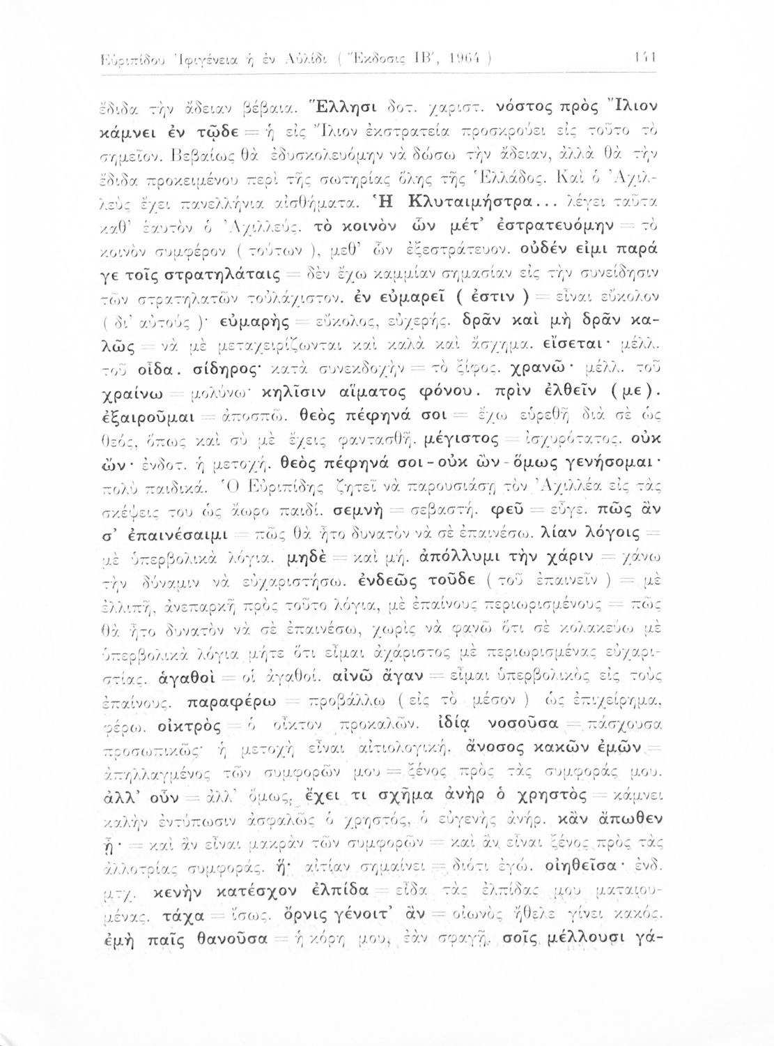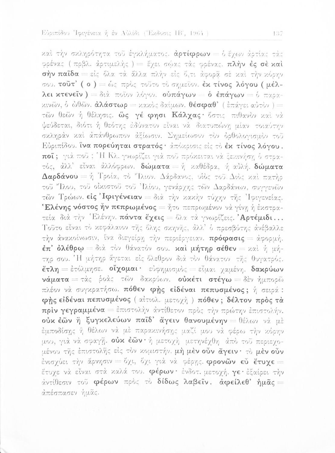 Παιδαγωγικό βοήθημα Αρχαίων Ελληνικών Ε΄ Γυμνασίου που περιλαμβάνει ερμηνευτικές, γλωσσικές και πραγματολογικές παρατηρήσεις στην τραγωδία του Ευριπίδη Ιφιγένειας εν Αυλίδι