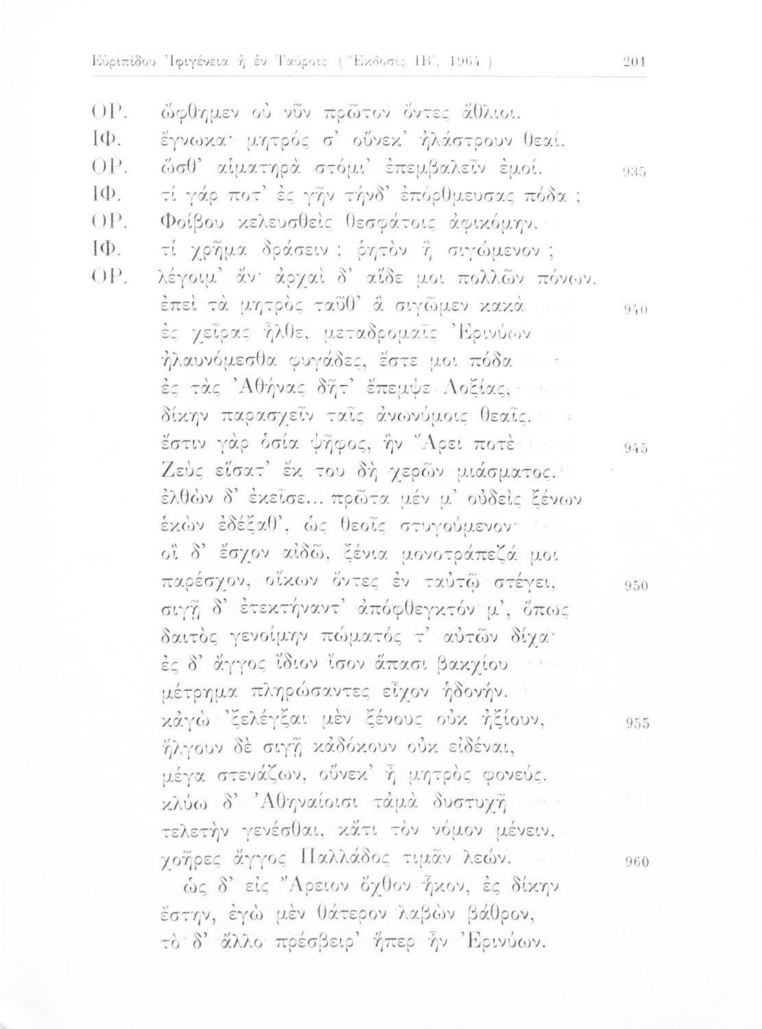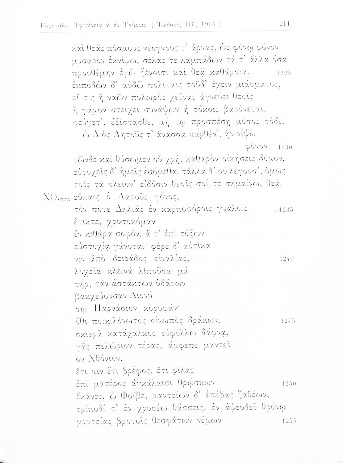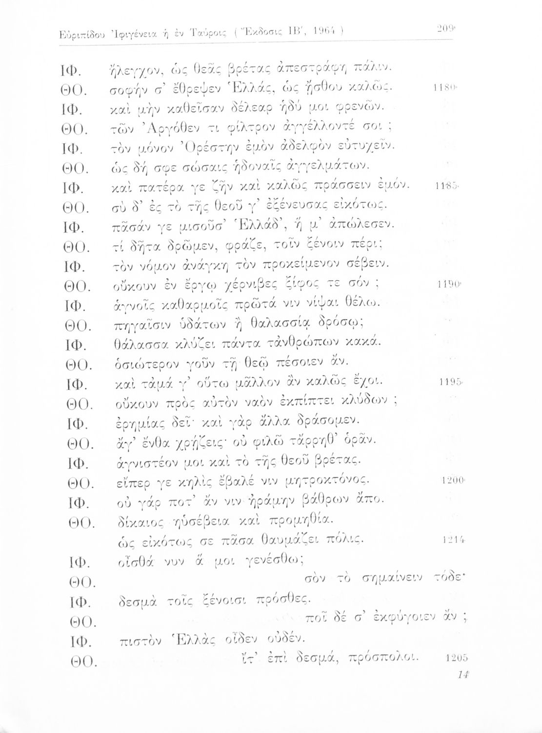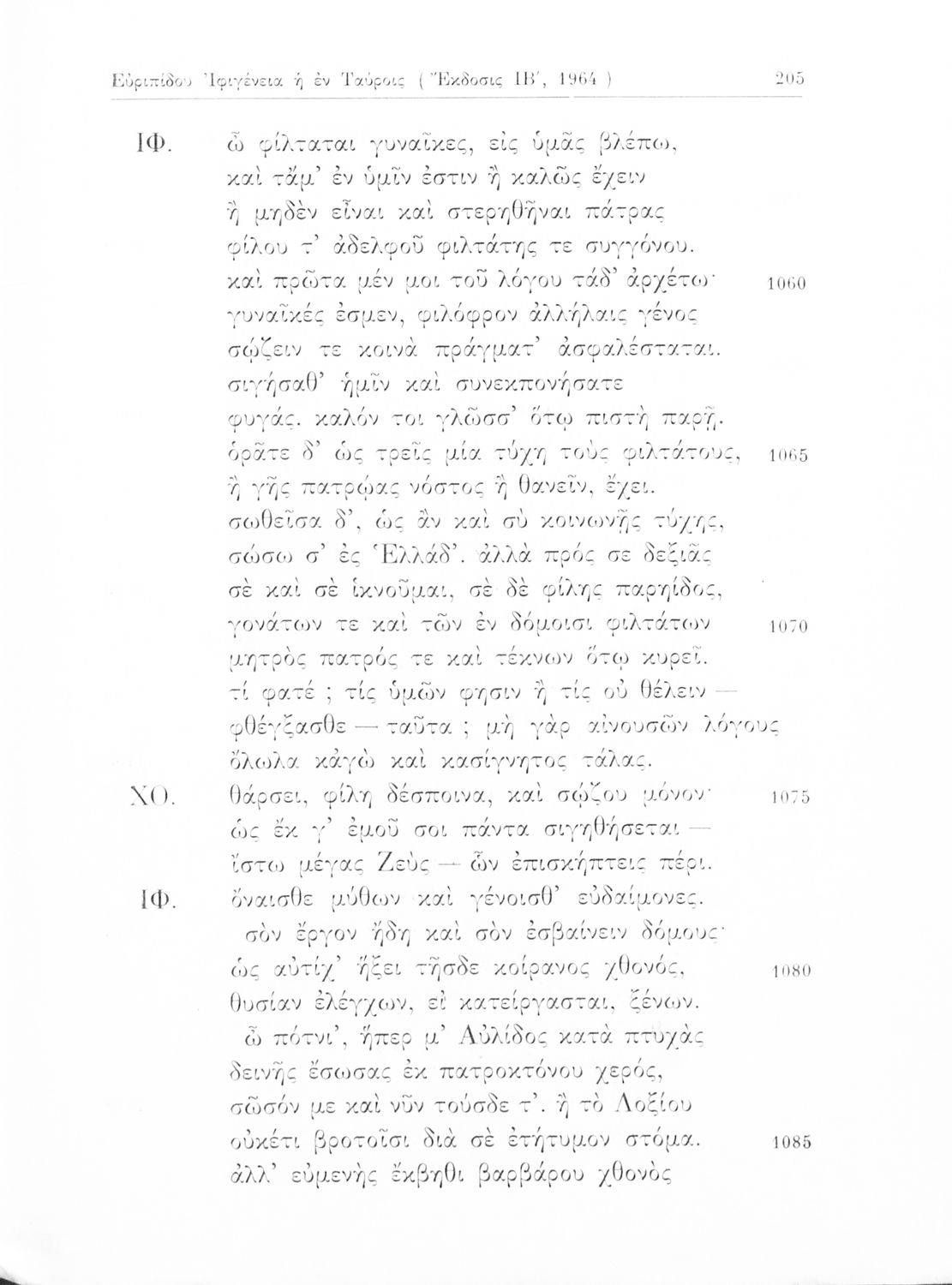 Σχολικό εγχειρίδιο Αρχαίων Ελληνικών Ε΄ Γυμνασίου που περιέχει αποσπάσματα από την τραγωδία του Ευριπίδη Ιφιγένεια η εν Ταύροις, ερμηνευτικά και πραγματολογικά σχόλια και λεξιλογικές παρατηρήσεις.