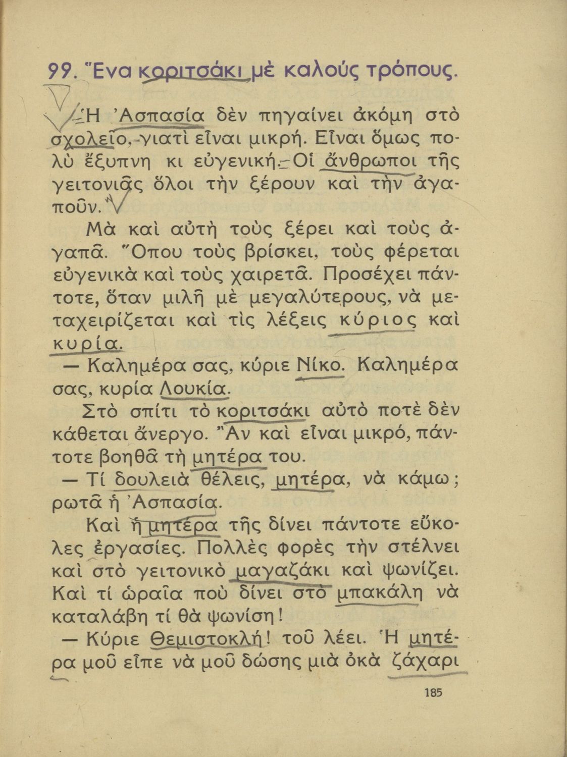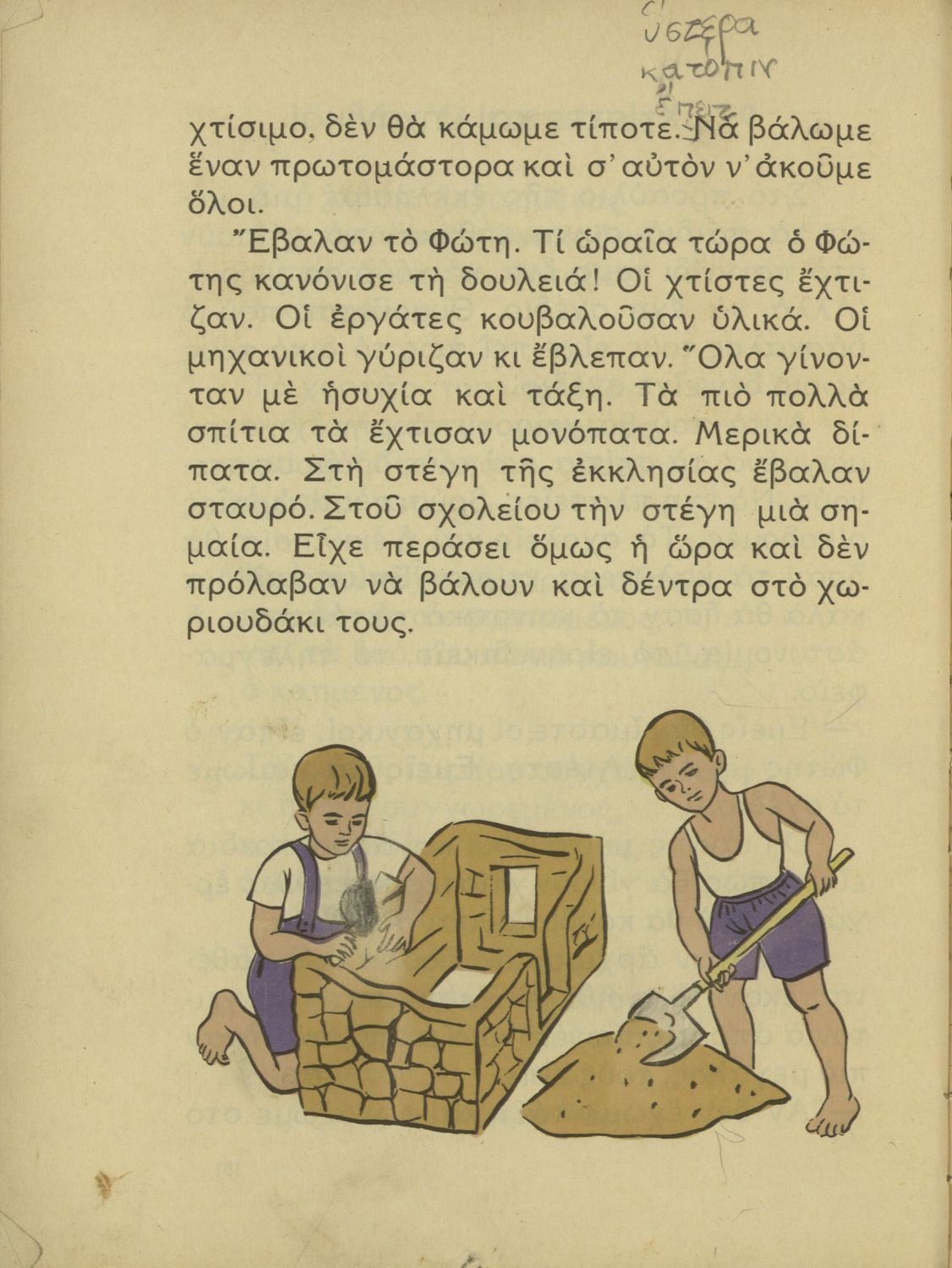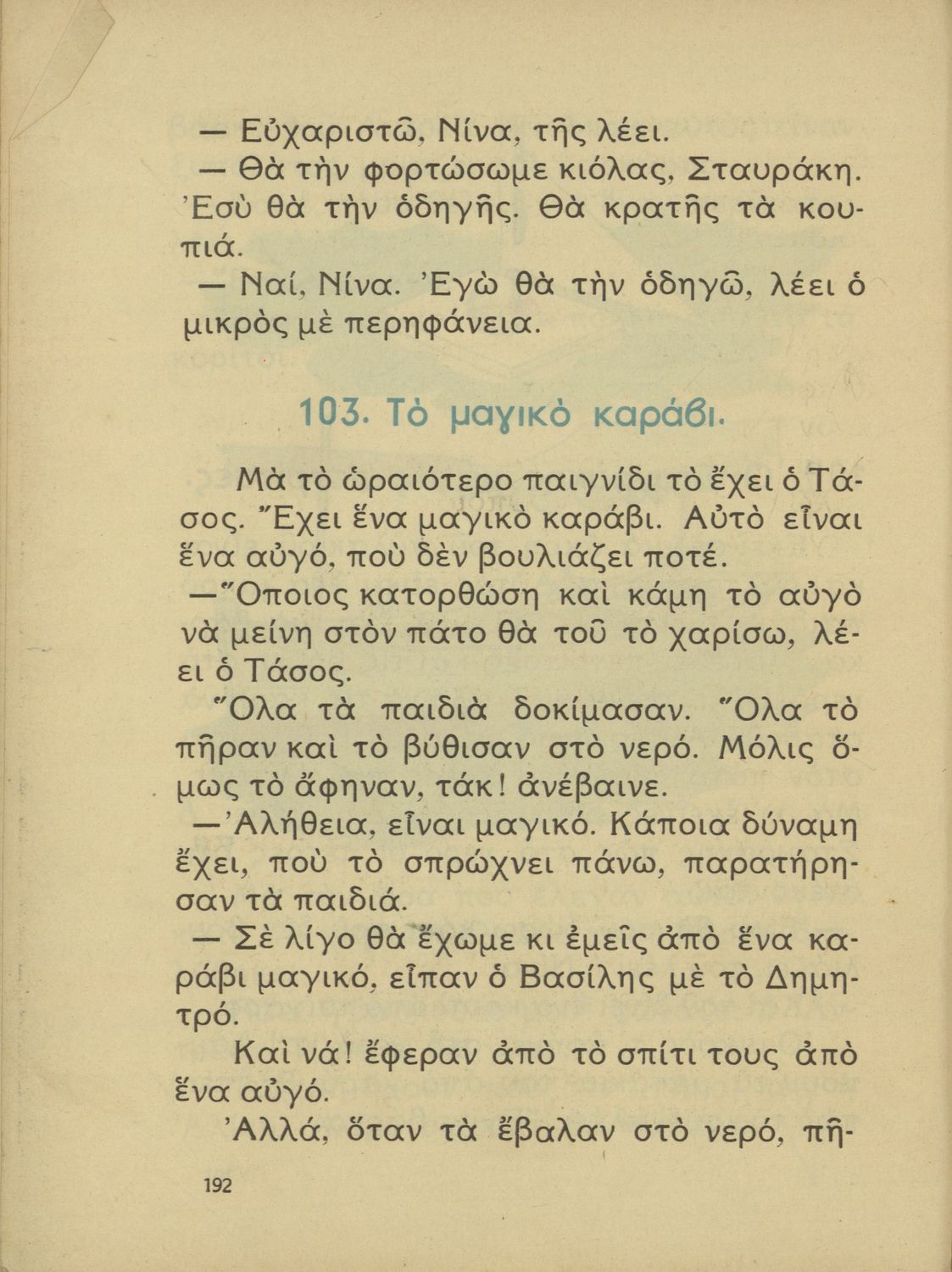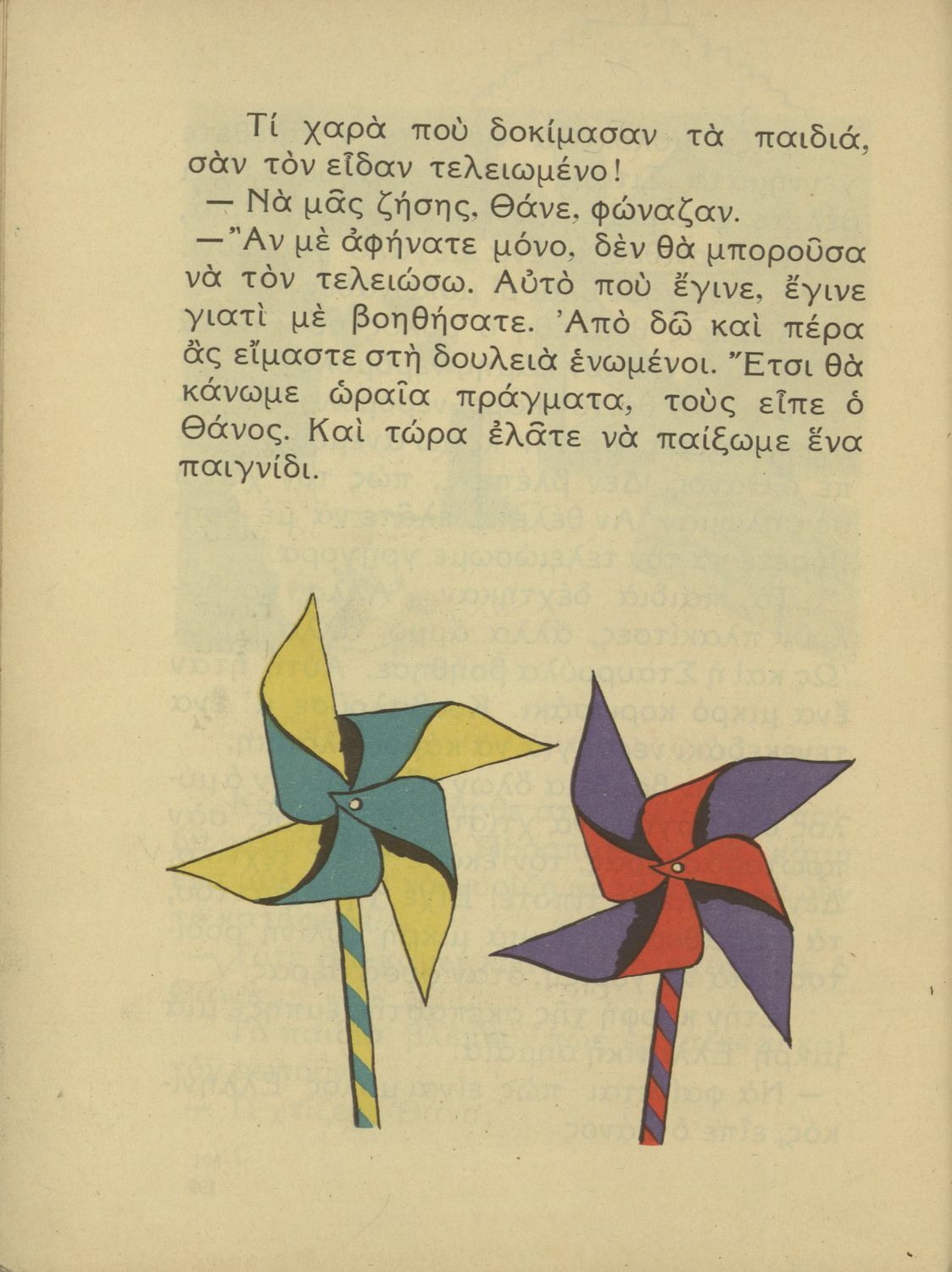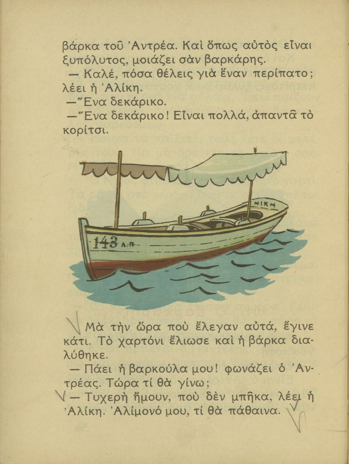 Αναγνωστικό Β' Δημοτικού που περιλαμβάνει μικρά διηγήματα και ποιήματα με περιεχόμενο από την οικογενειακή και κοινωνική ζωή, την ελληνική φύση, την ελληνική ιστορία και μυθολογία και την υγιεινή.