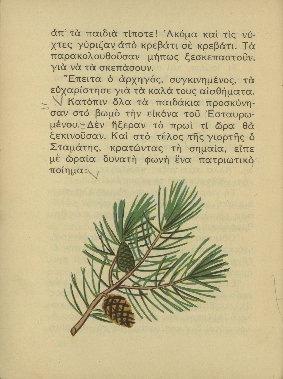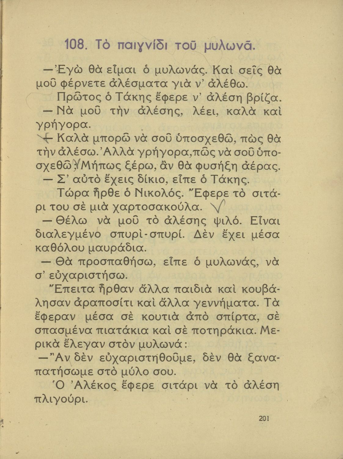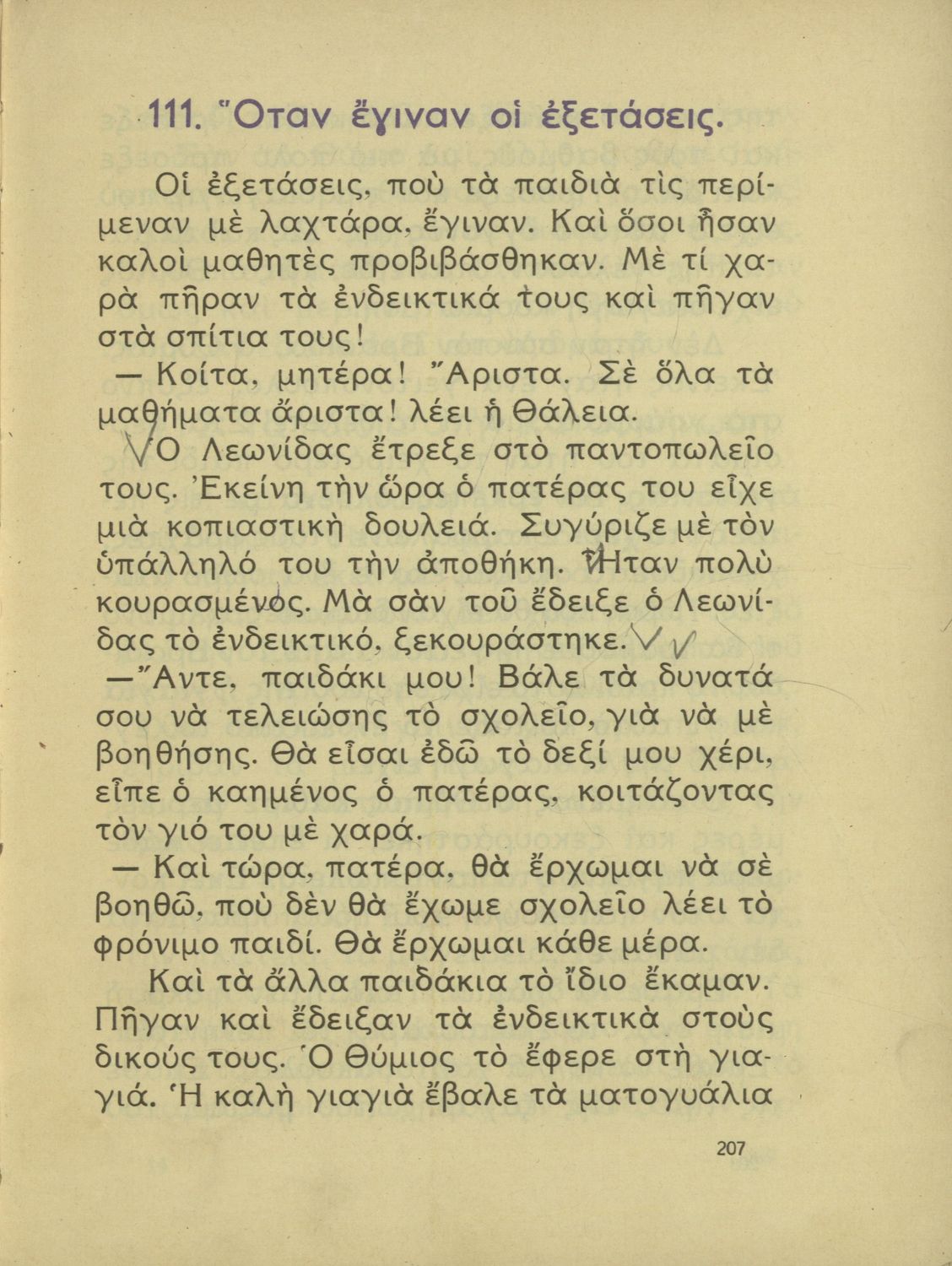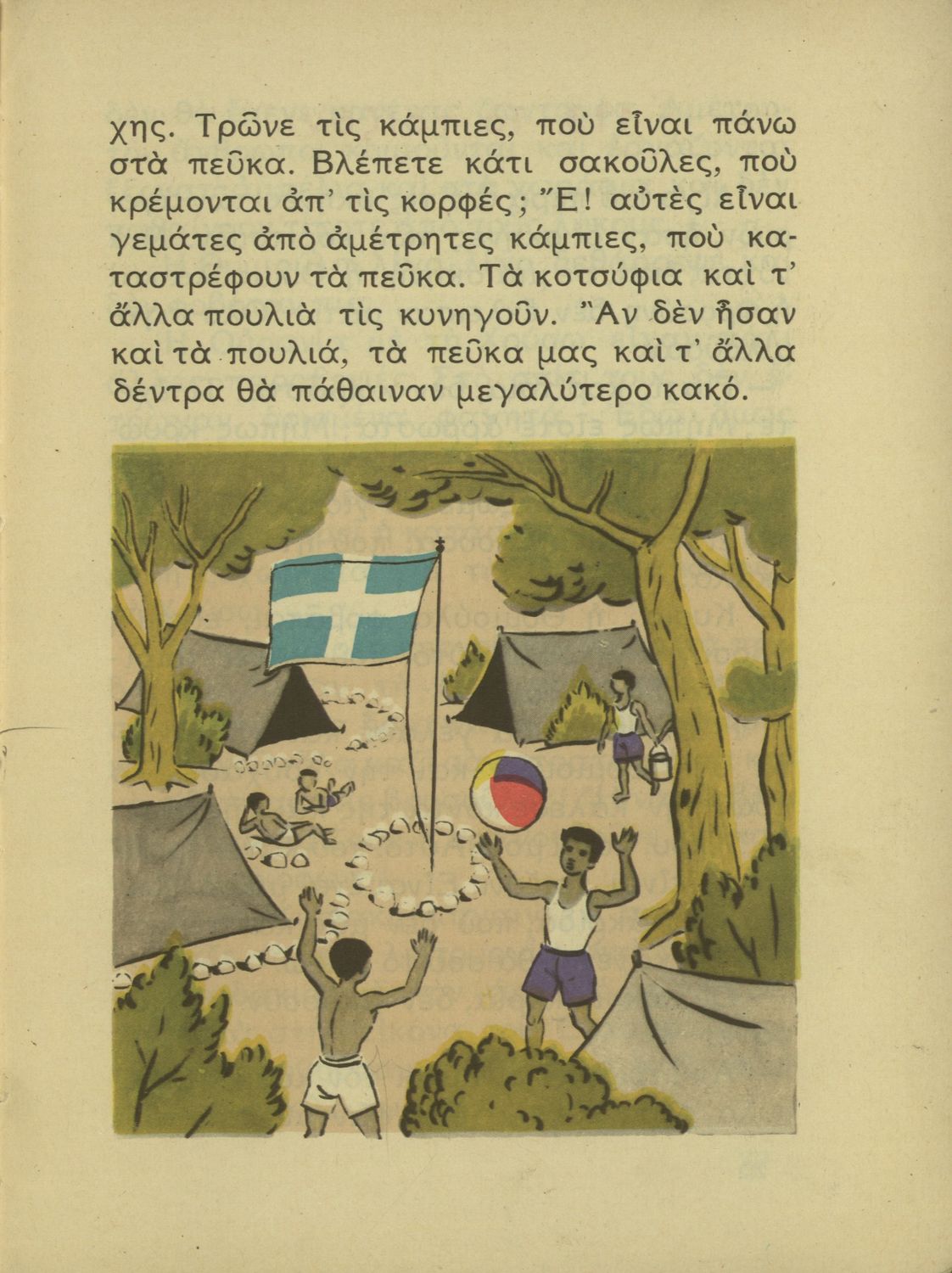 Αναγνωστικό Β' Δημοτικού που περιλαμβάνει μικρά διηγήματα και ποιήματα με περιεχόμενο από την οικογενειακή και κοινωνική ζωή, την ελληνική φύση, την ελληνική ιστορία και μυθολογία και την υγιεινή.
