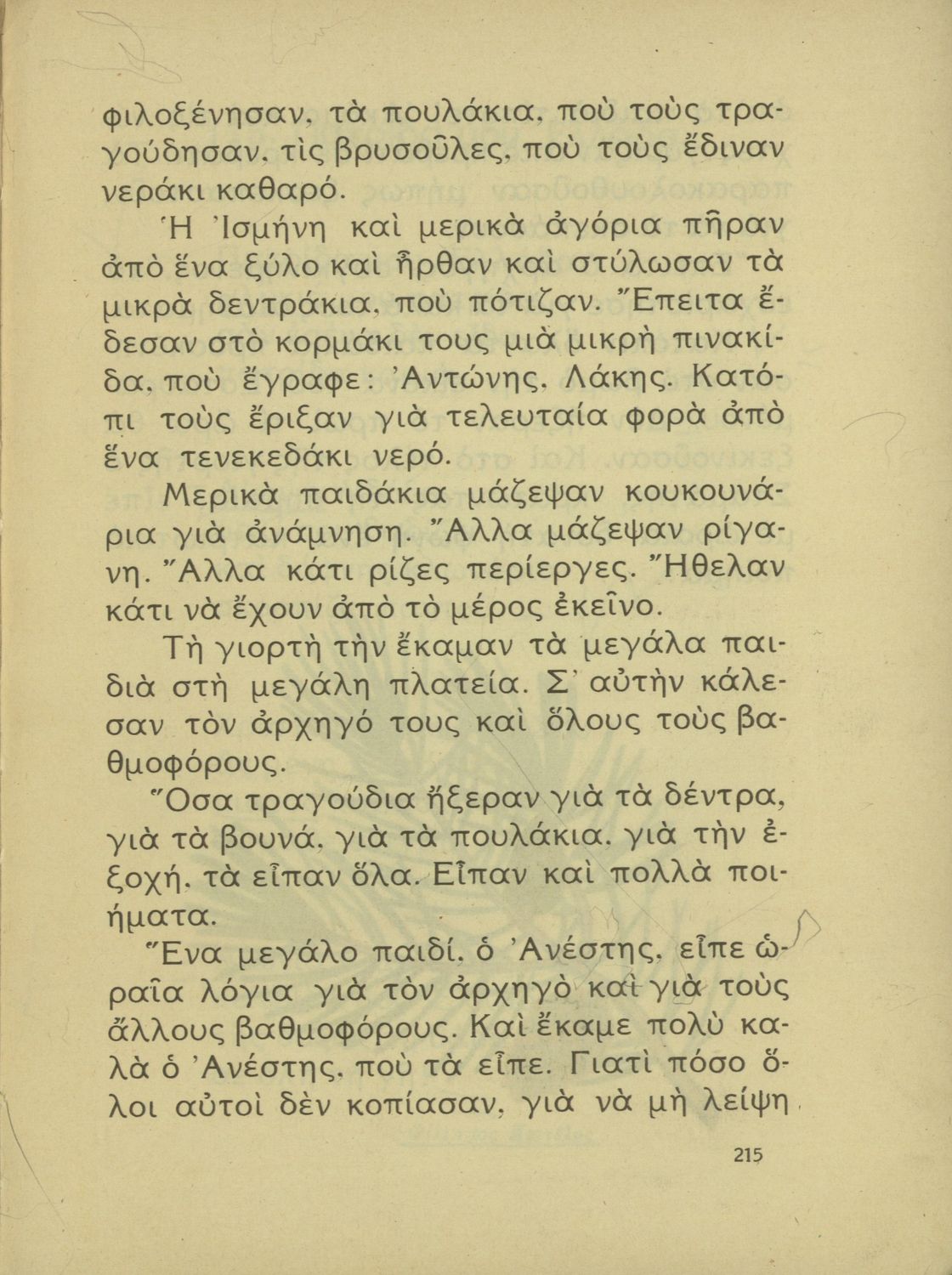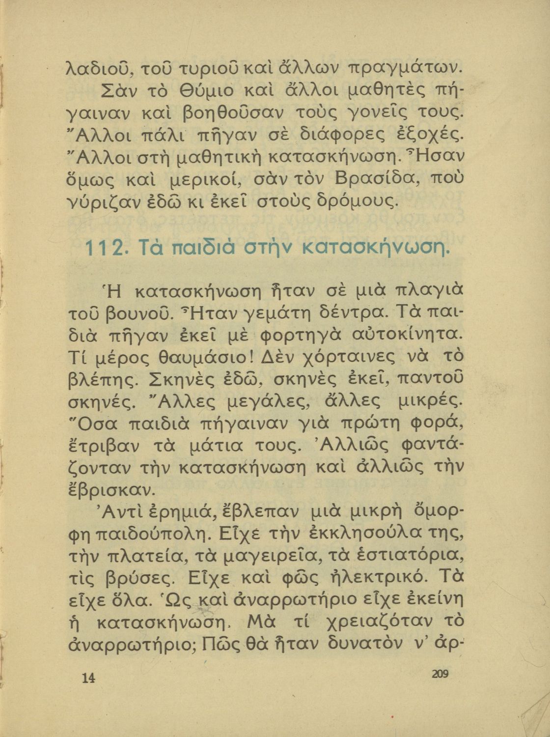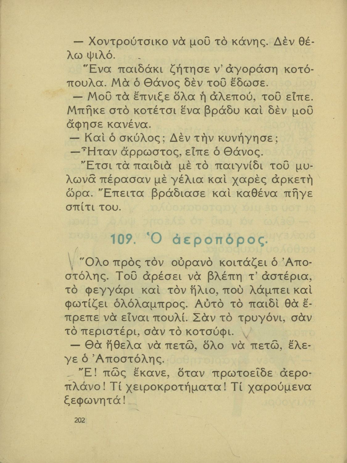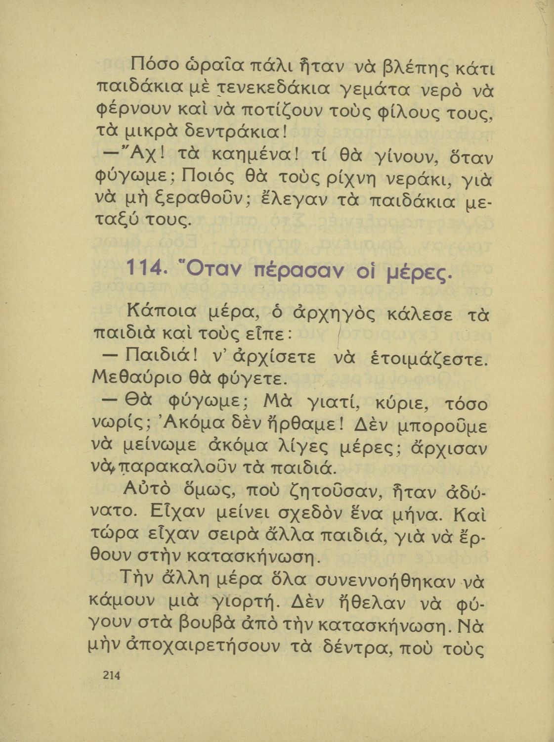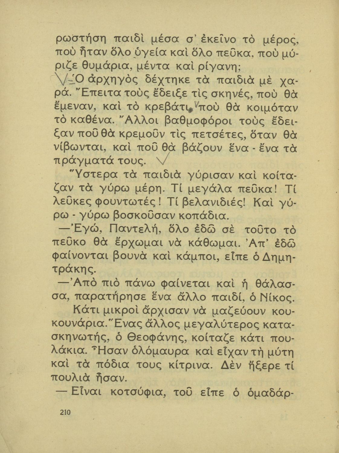 Αναγνωστικό Β' Δημοτικού που περιλαμβάνει μικρά διηγήματα και ποιήματα με περιεχόμενο από την οικογενειακή και κοινωνική ζωή, την ελληνική φύση, την ελληνική ιστορία και μυθολογία και την υγιεινή.
