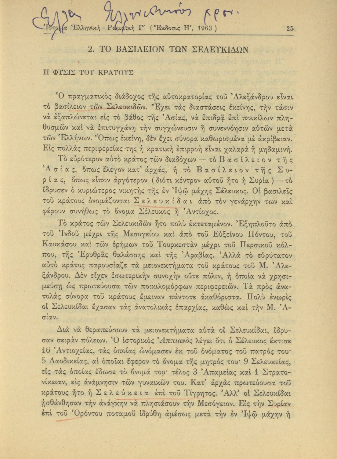 Τίτλος: Ιστορία Ελληνική - Ρωμαϊκή από του θανάτου του Μ. Αλεξάνδρου μέχρι του Μ. Κωνσταντίνου. Δια την Γ΄ Τάξη των Εξατάξιων Γυμνασίων