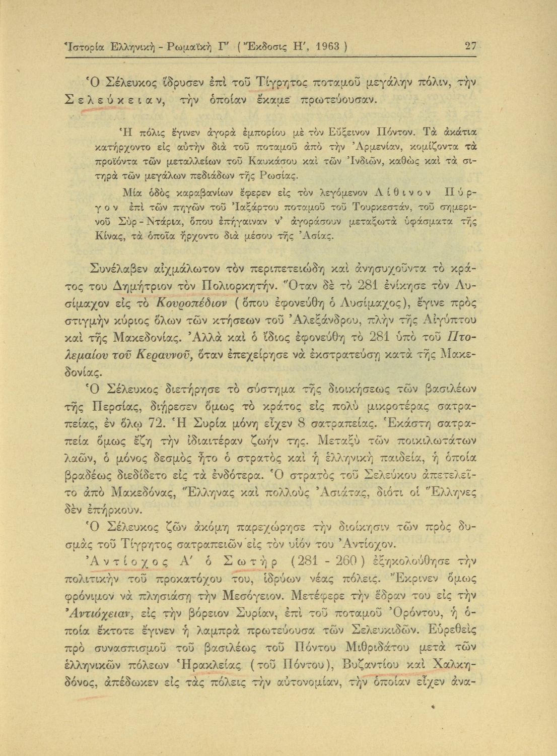 Ιστορία Ελληνική - Ρωμαϊκή από του θανάτου του Μ. Αλεξάνδρου μέχρι του Μ. Κωνσταντίνου. Δια την Γ΄ Τάξη των Εξατάξιων Γυμνασίων