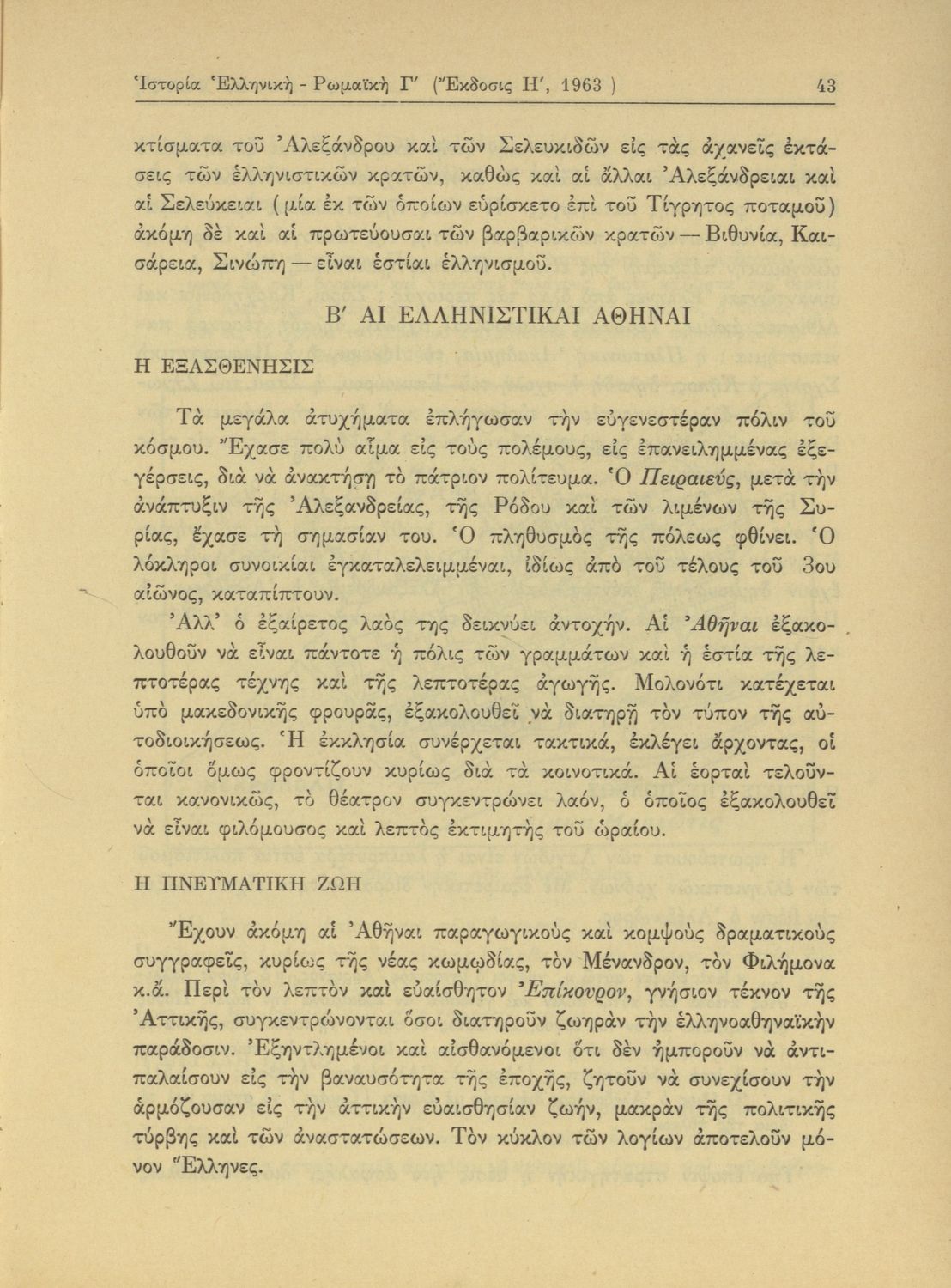 Ιστορία Ελληνική - Ρωμαϊκή από του θανάτου του Μ. Αλεξάνδρου μέχρι του Μ. Κωνσταντίνου. Δια την Γ΄ Τάξη των Εξατάξιων Γυμνασίων