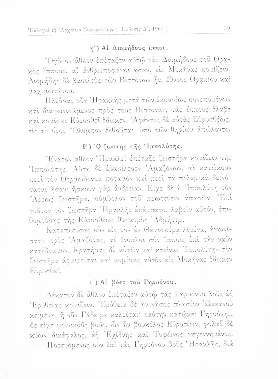 Σχολικό εγχειρίδιο Αρχαίων Ελληνικών Β΄ και Γ΄ Γυμνασίου που περιέχει αποσπάσματα από έργα αρχαίων Ελλήνων συγγραφέων, ερμηνευτικά και πραγματολογικά σχόλια και γραμματικές παρατηρήσεις.