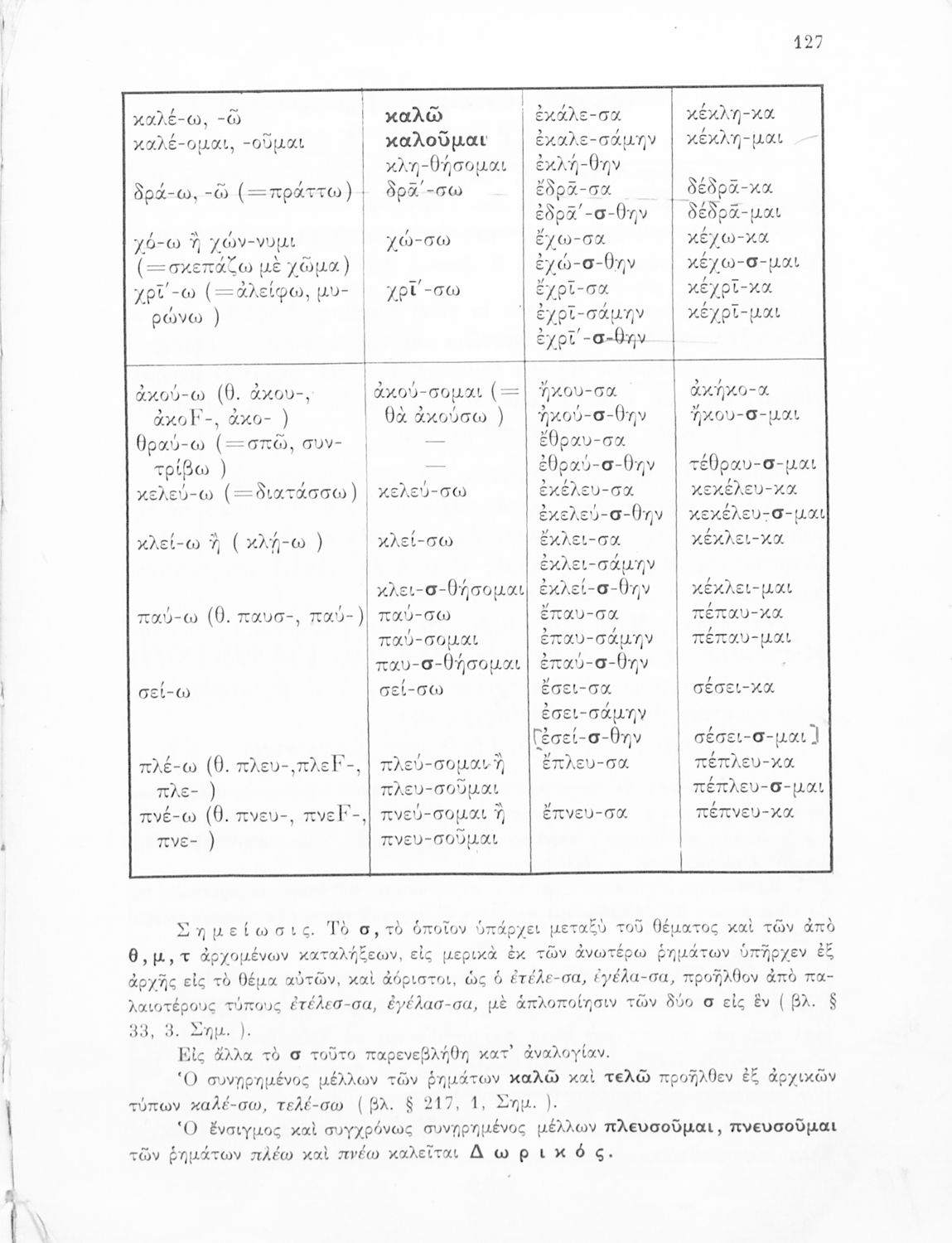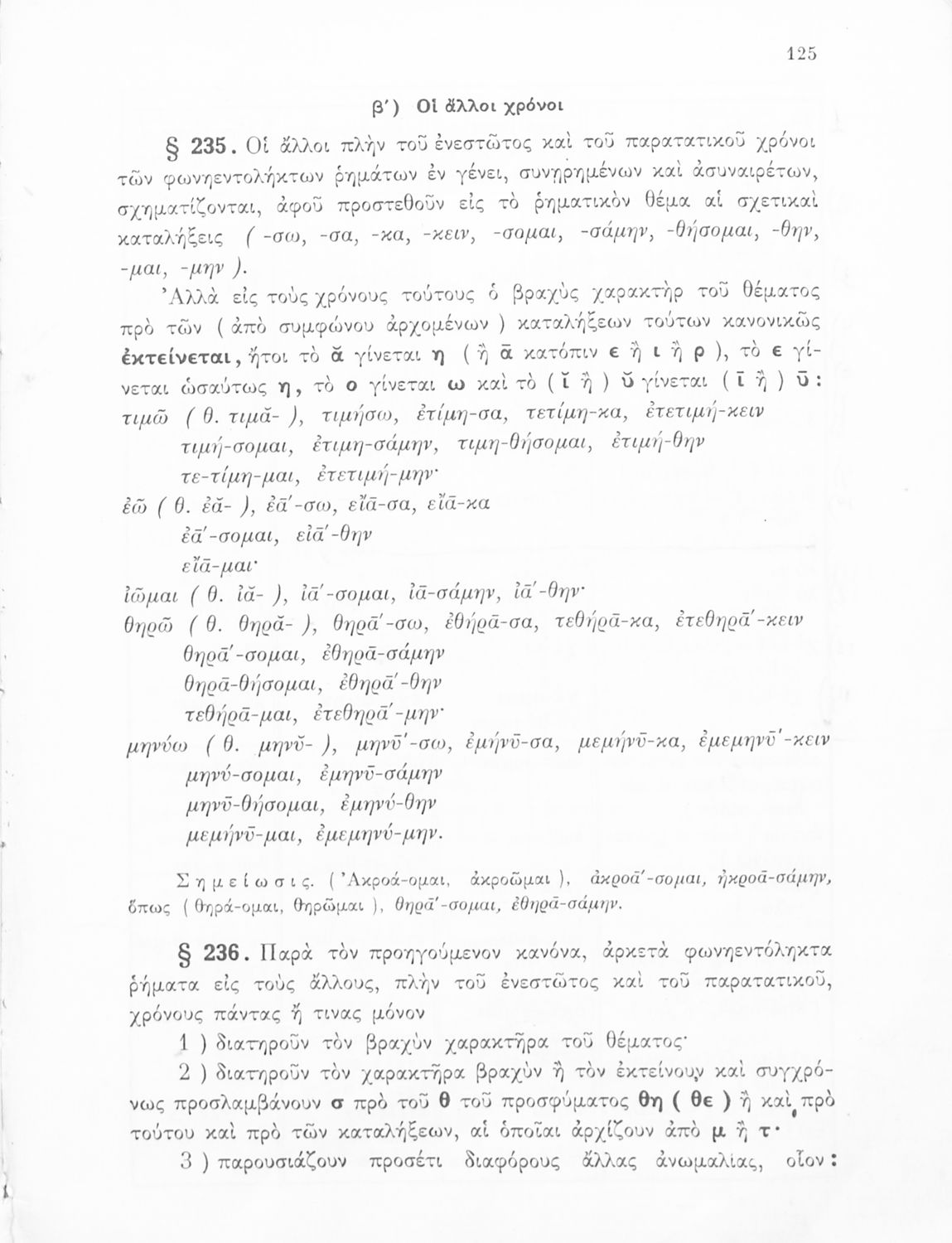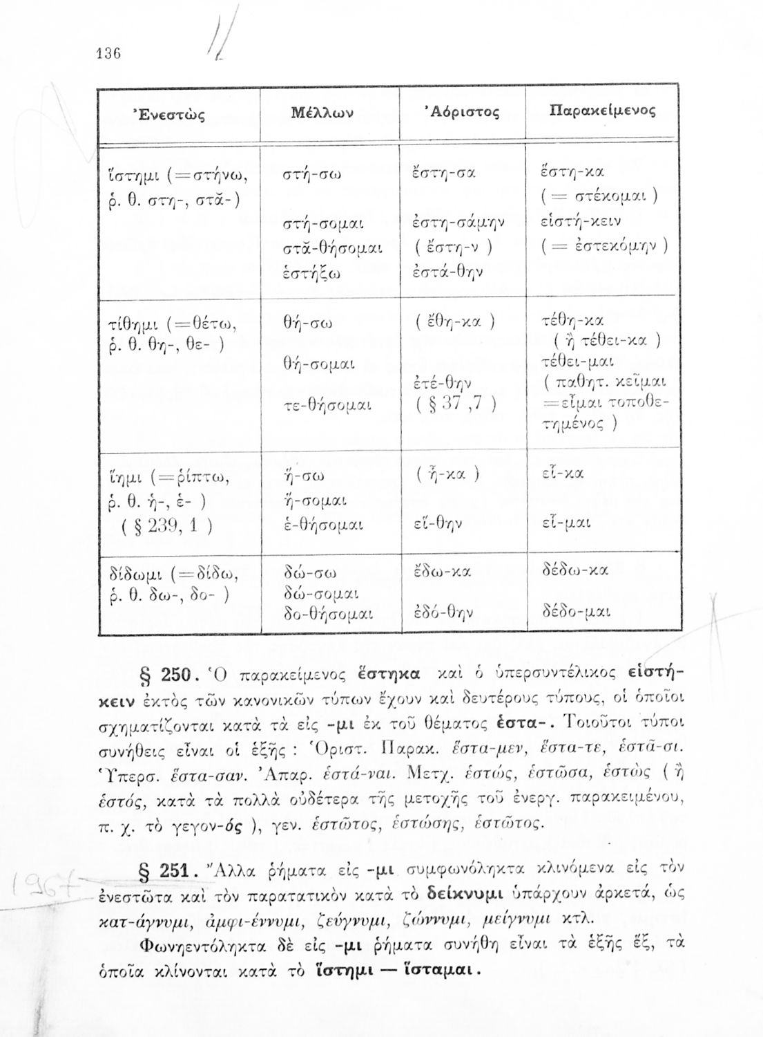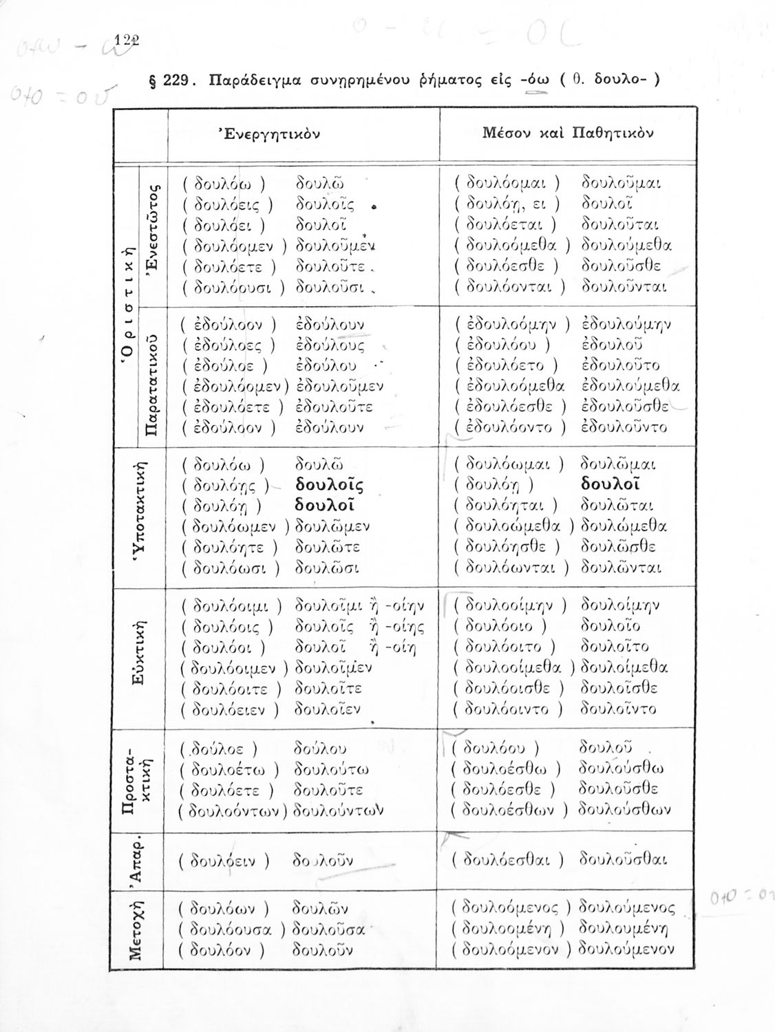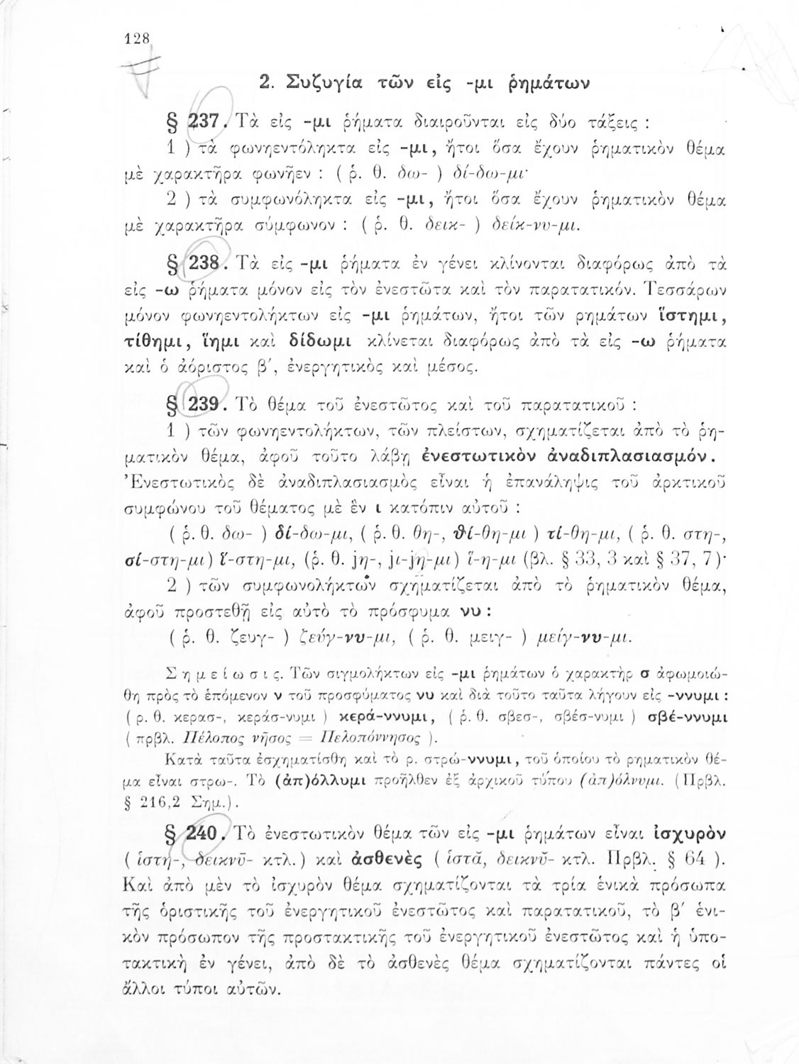 Σχολικό εγχειρίδιο Αρχαίων Ελληνικών Γυμνασίου που περιέχει τους κανόνες γραμματικής και είναι χωρισμένο σε φθογγολογικό, τυπολογικό και ετυμολογικό μέρος. Περιέχει και κατάλογο ανωμάλων ρημάτων.