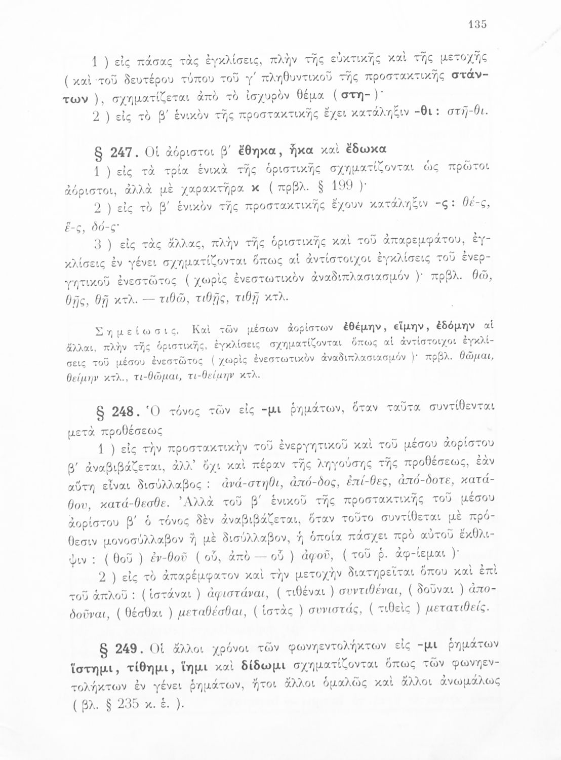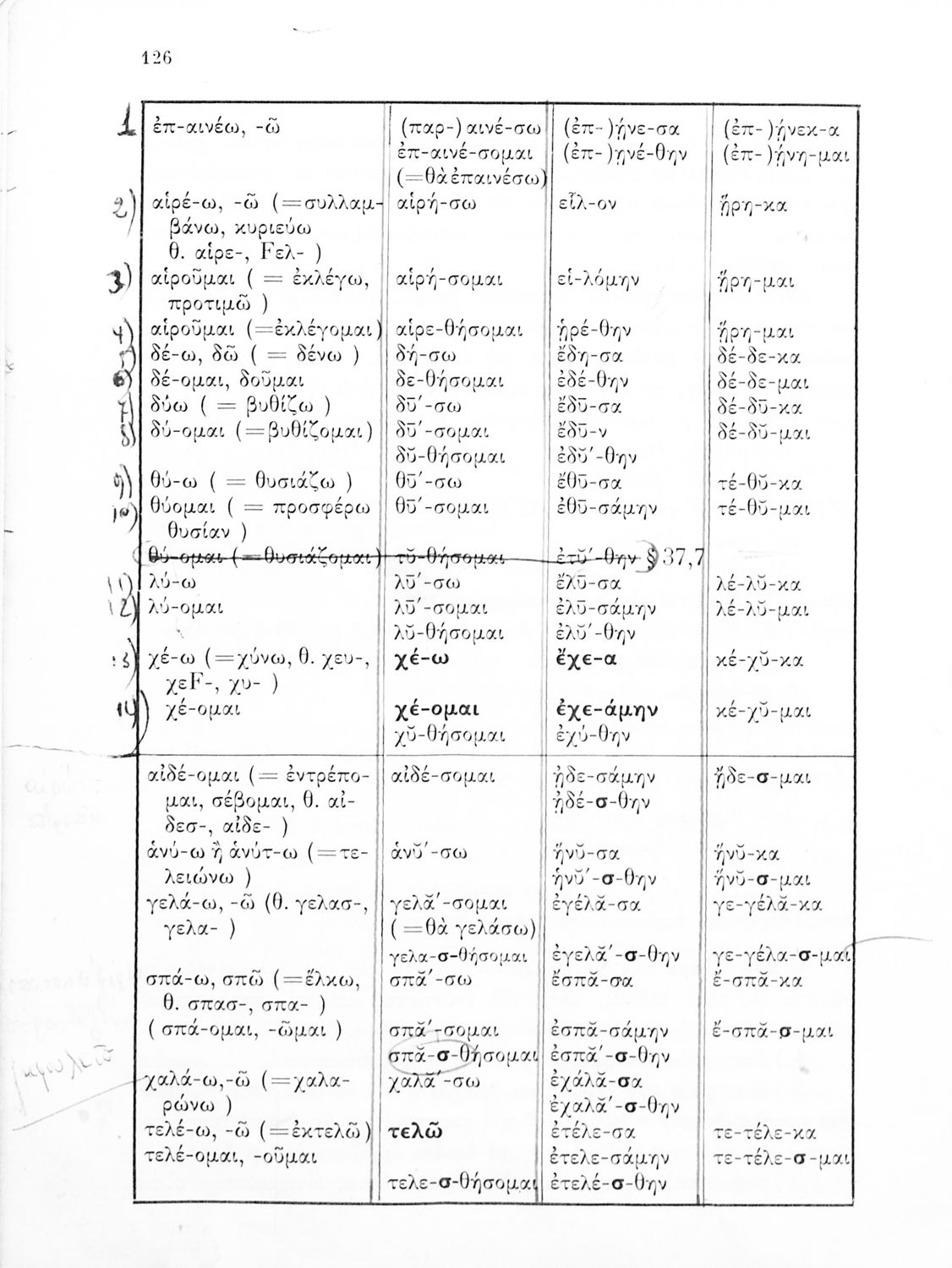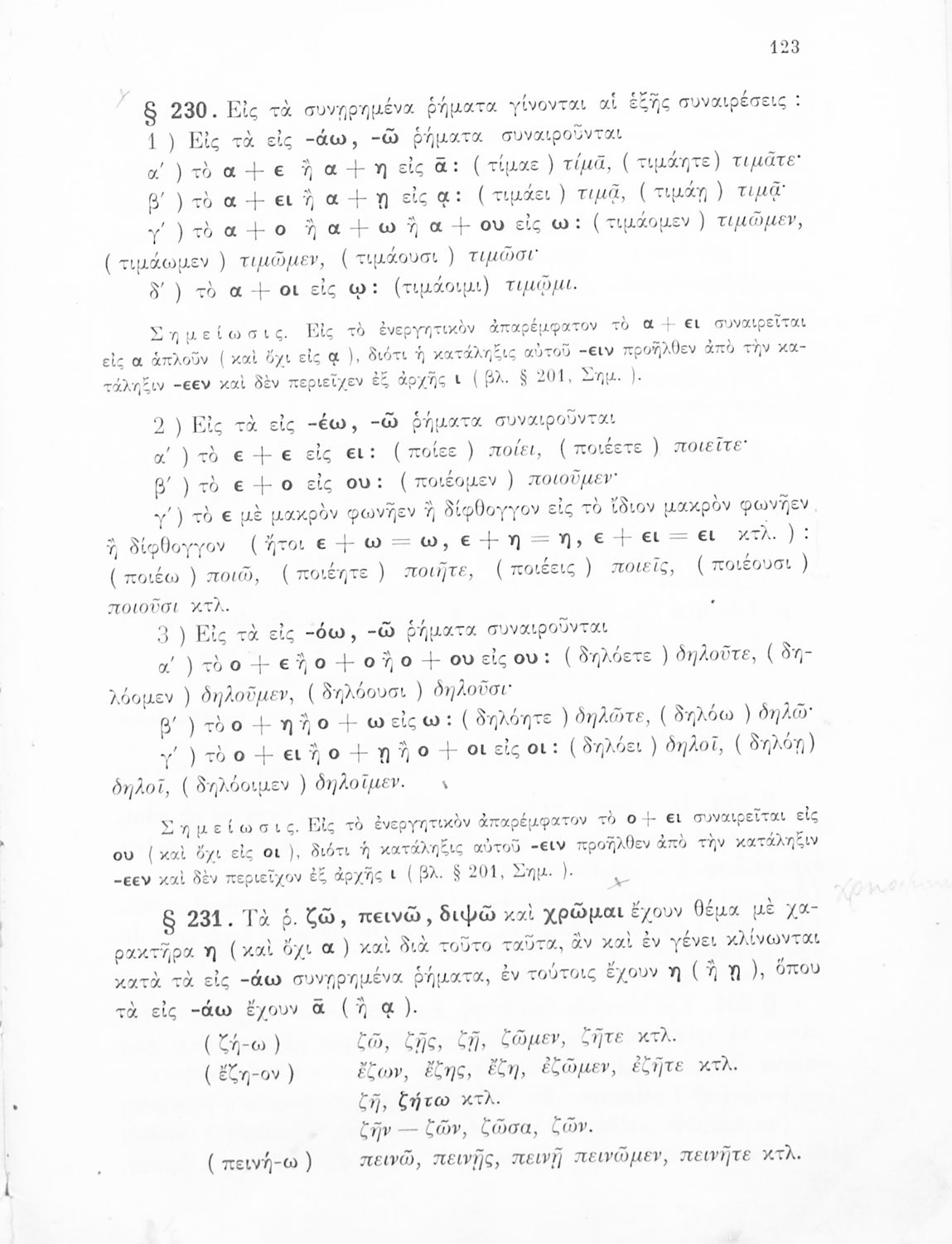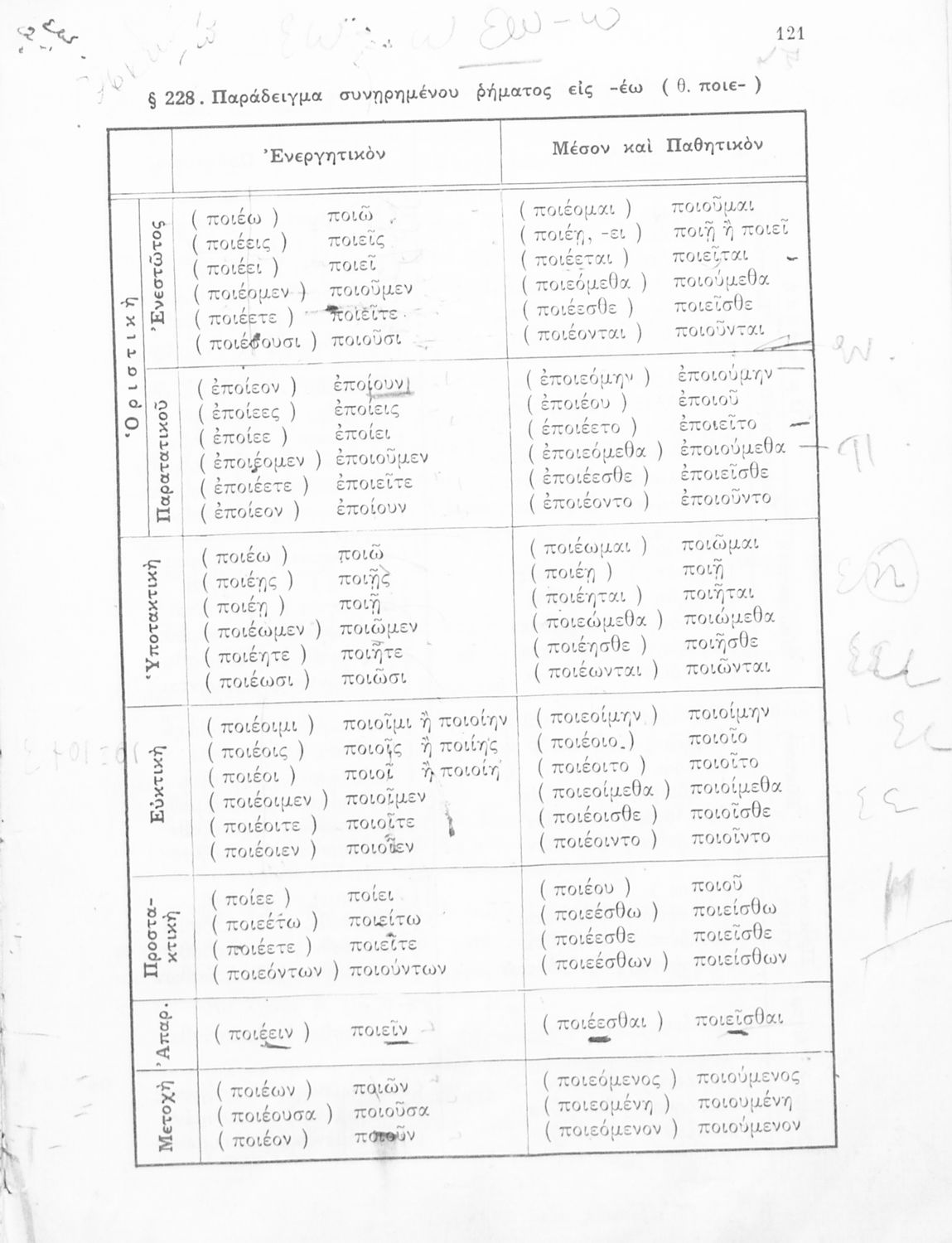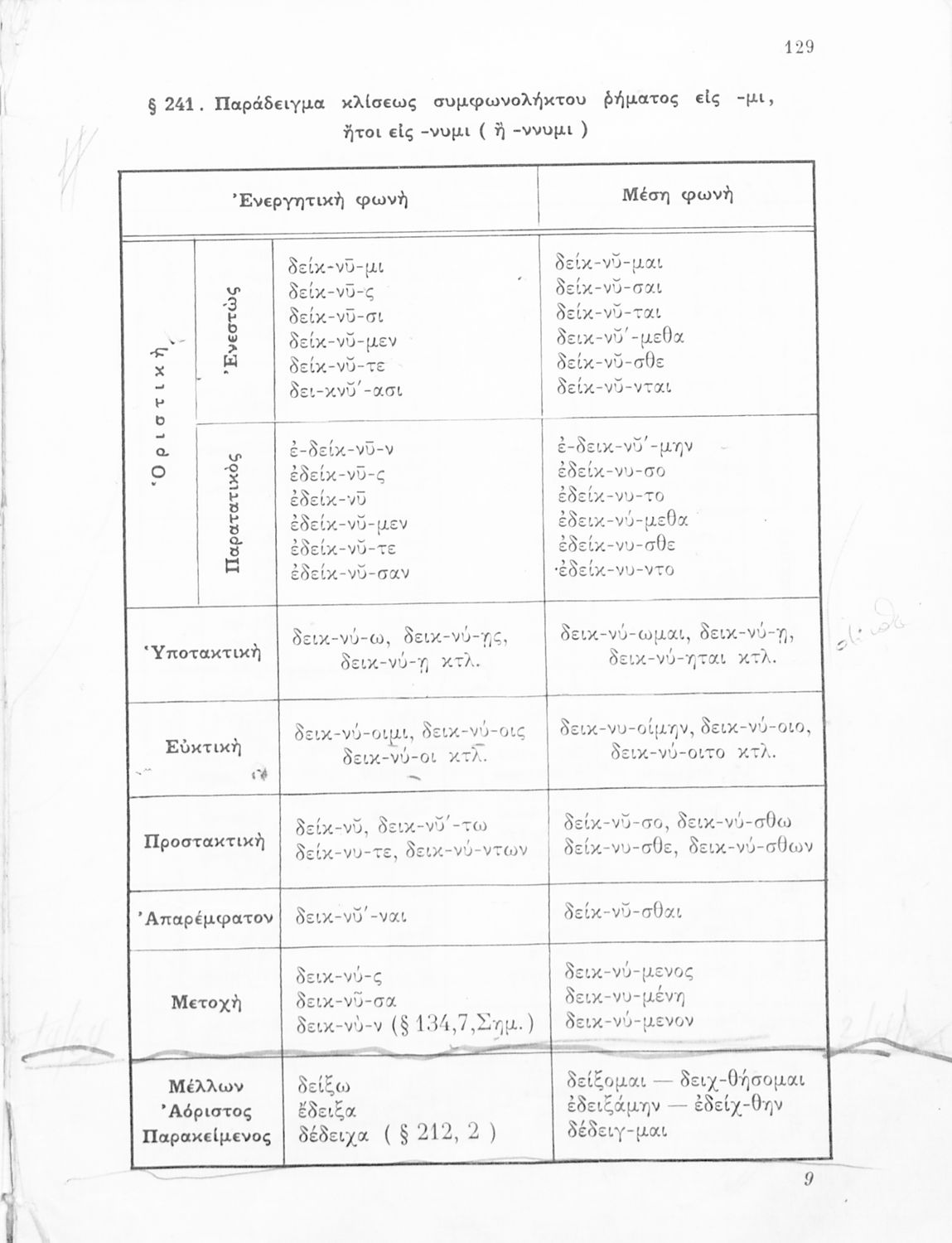 Σχολικό εγχειρίδιο Αρχαίων Ελληνικών Γυμνασίου που περιέχει τους κανόνες γραμματικής και είναι χωρισμένο σε φθογγολογικό, τυπολογικό και ετυμολογικό μέρος. Περιέχει και κατάλογο ανωμάλων ρημάτων.