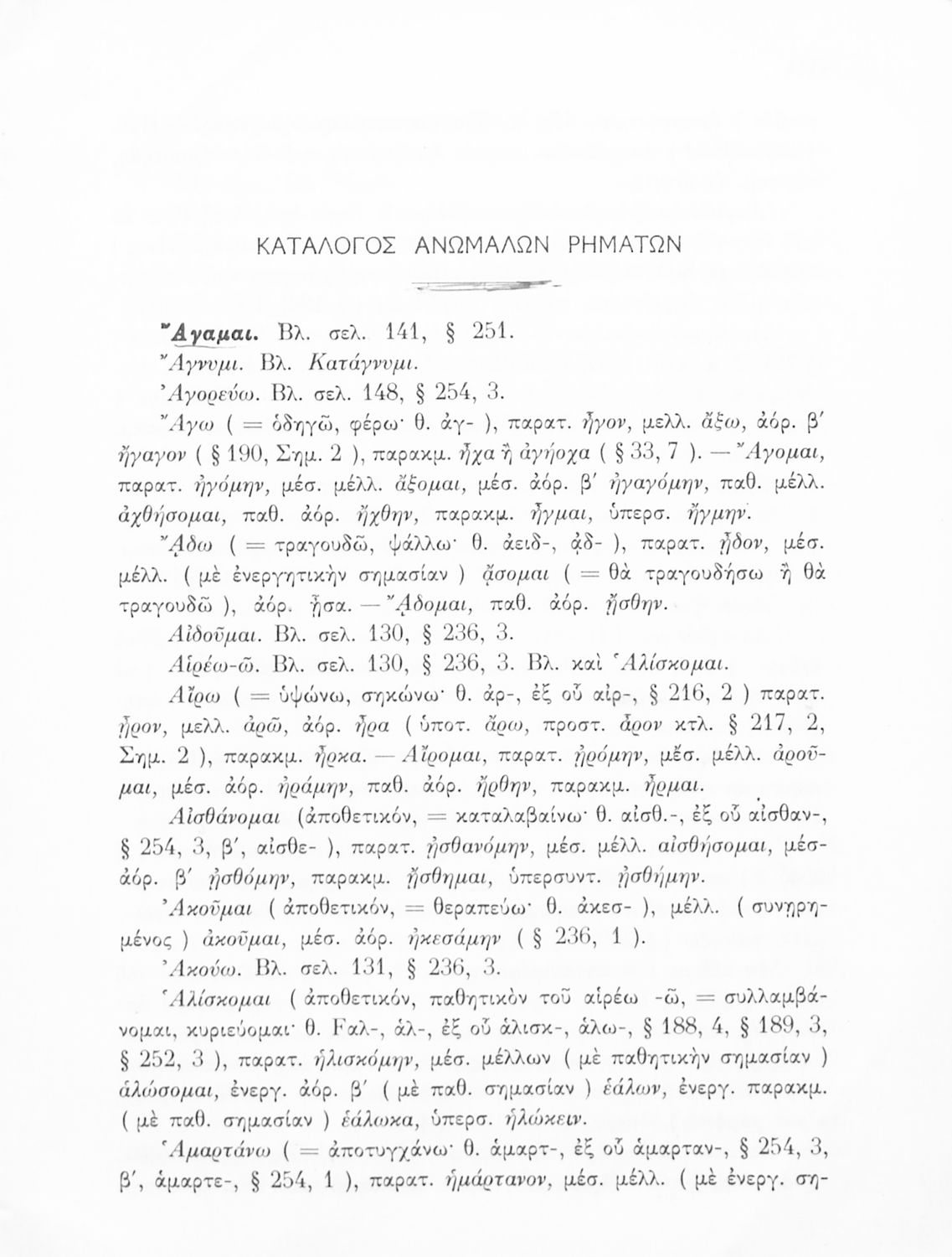 Σχολικό εγχειρίδιο Αρχαίων Ελληνικών Γυμνασίου που περιέχει τους κανόνες γραμματικής και είναι χωρισμένο σε φθογγολογικό, τυπολογικό και ετυμολογικό μέρος. Περιέχει και κατάλογο ανωμάλων ρημάτων.