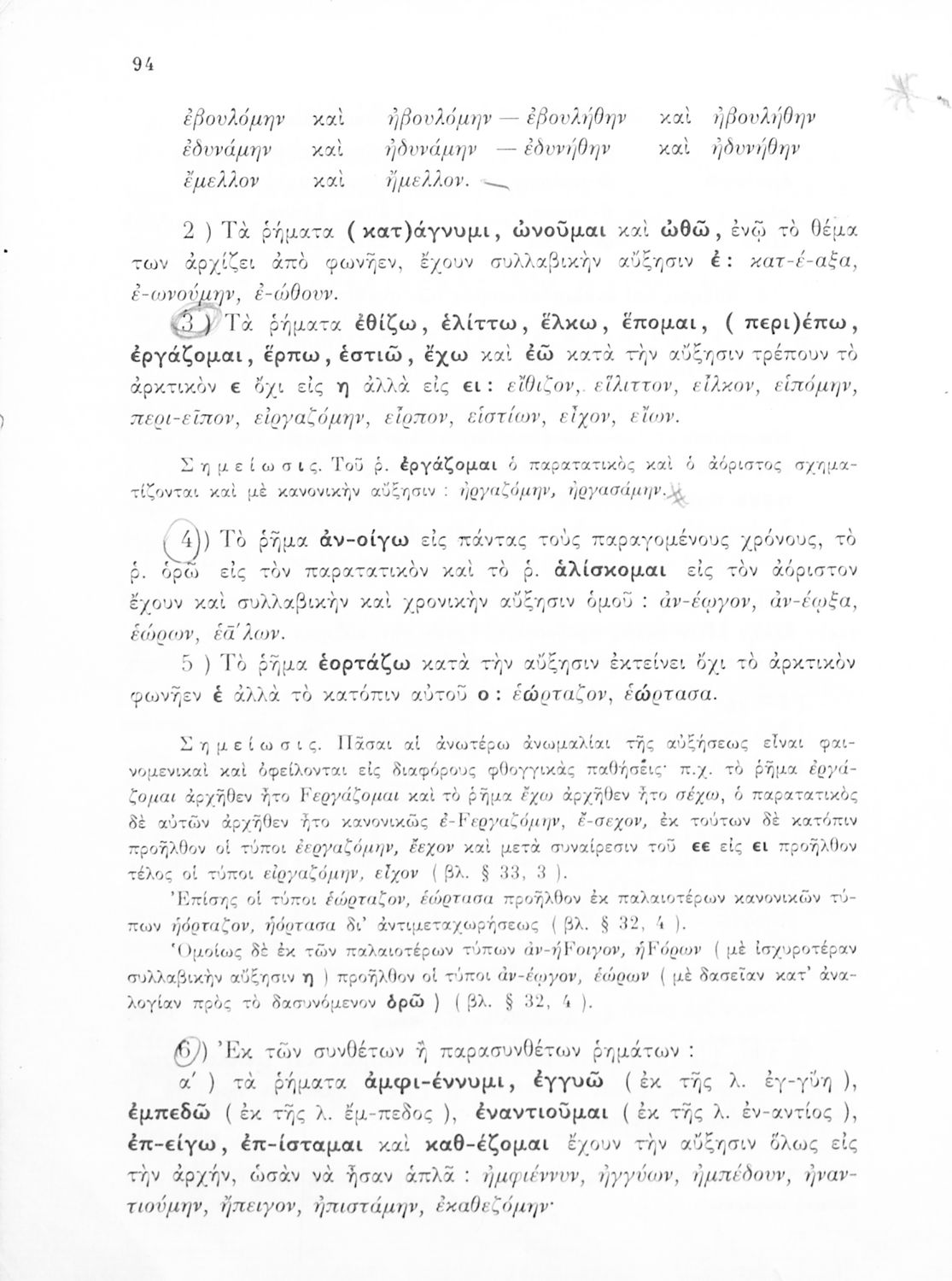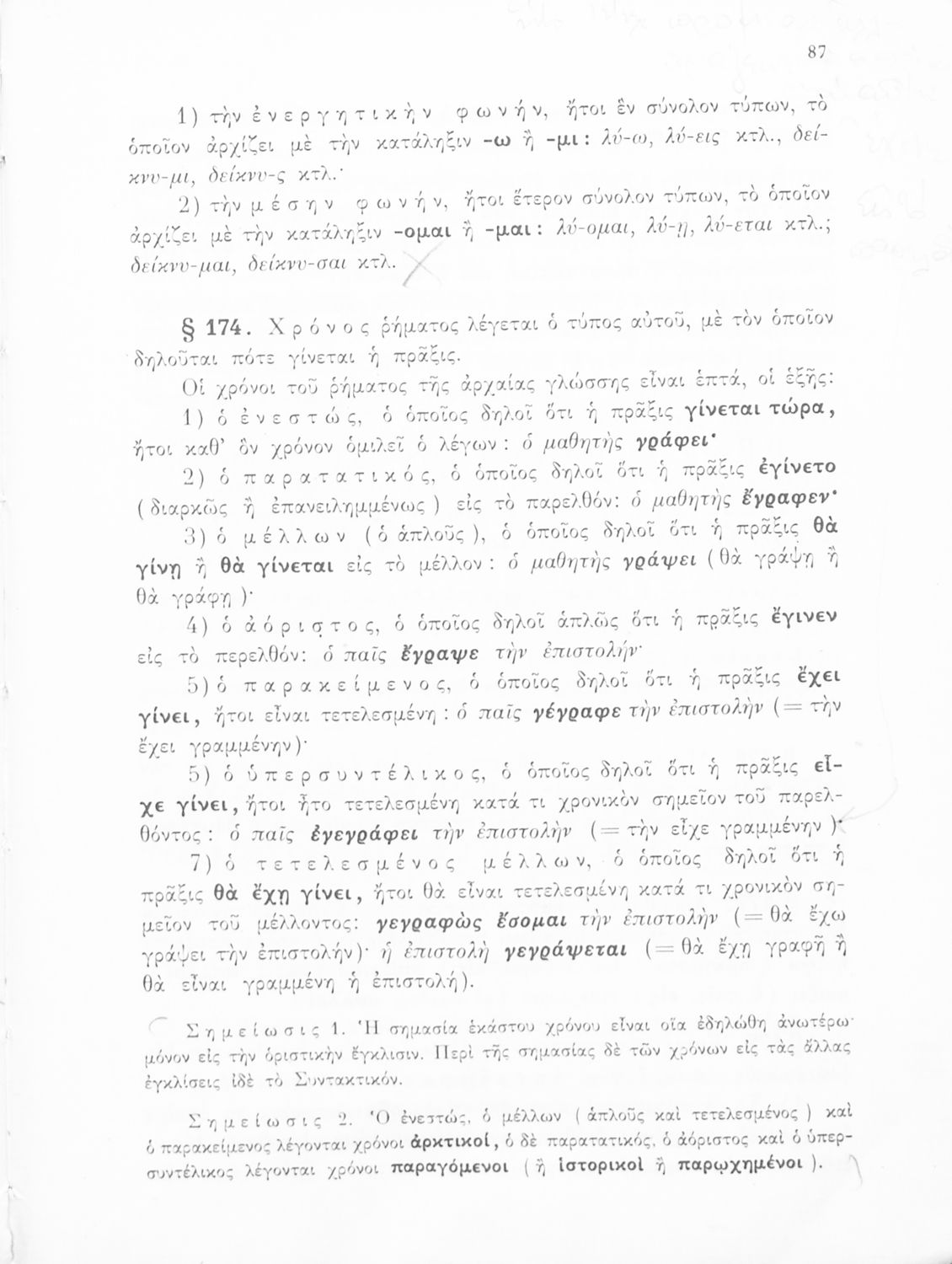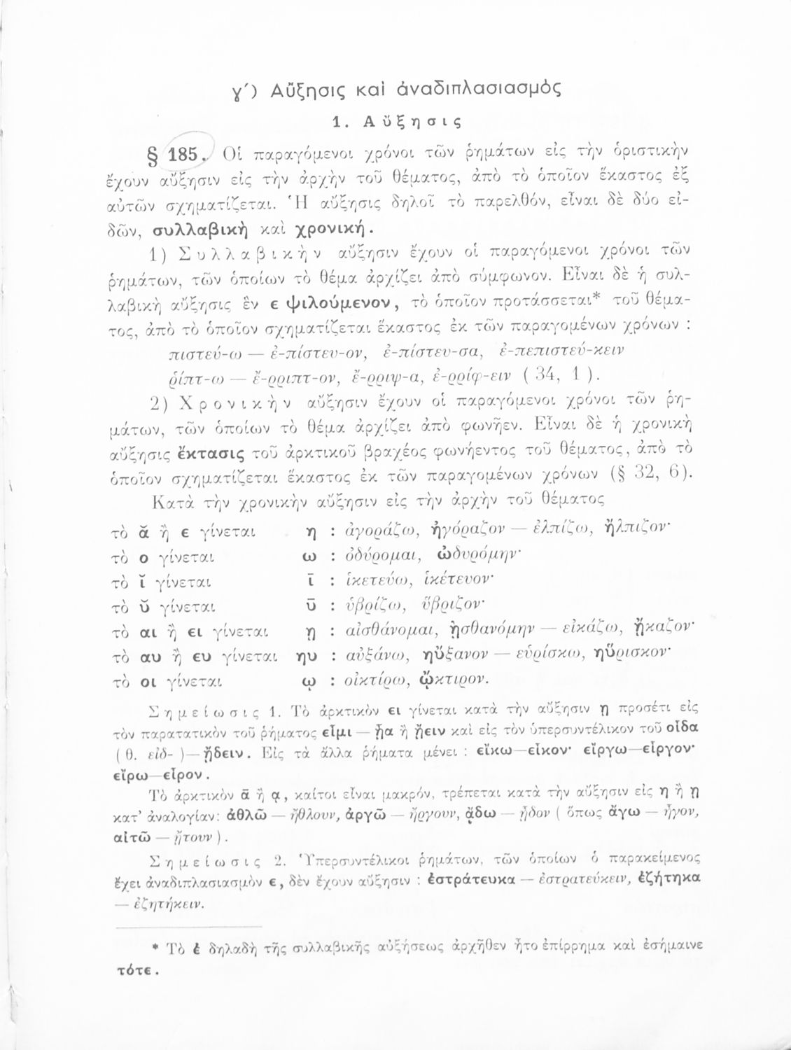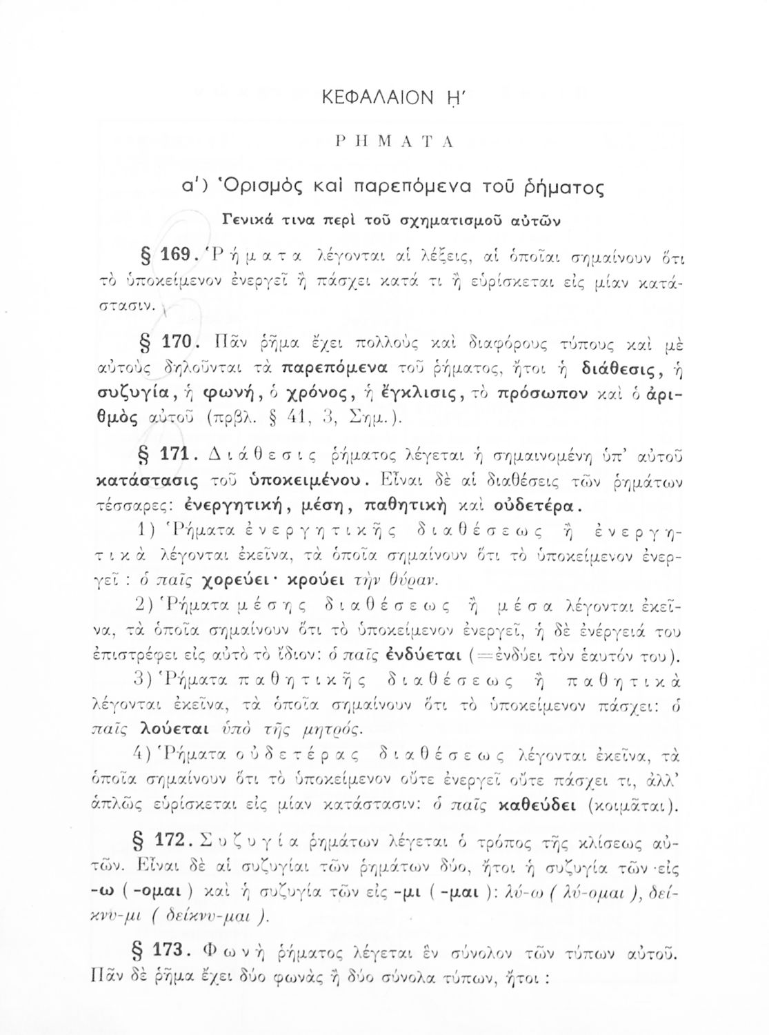 Σχολικό εγχειρίδιο Αρχαίων Ελληνικών Γυμνασίου που περιέχει τους κανόνες γραμματικής και είναι χωρισμένο σε φθογγολογικό, τυπολογικό και ετυμολογικό μέρος. Περιέχει και κατάλογο ανωμάλων ρημάτων.