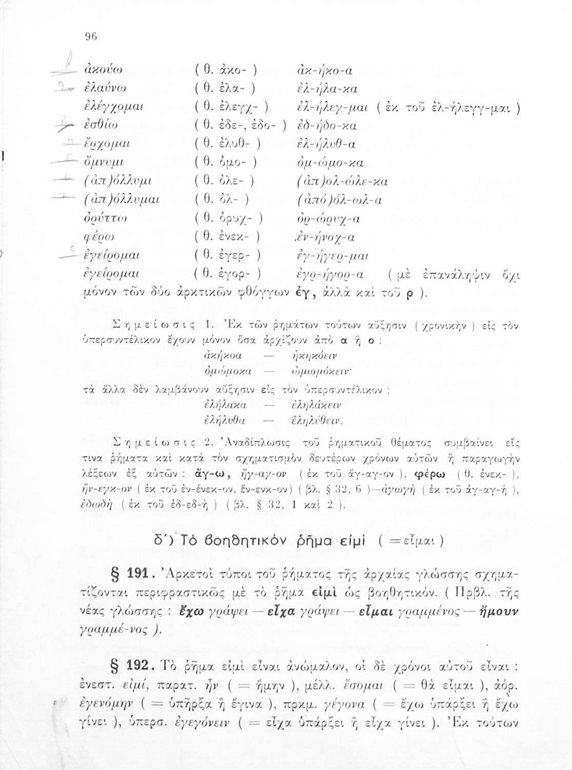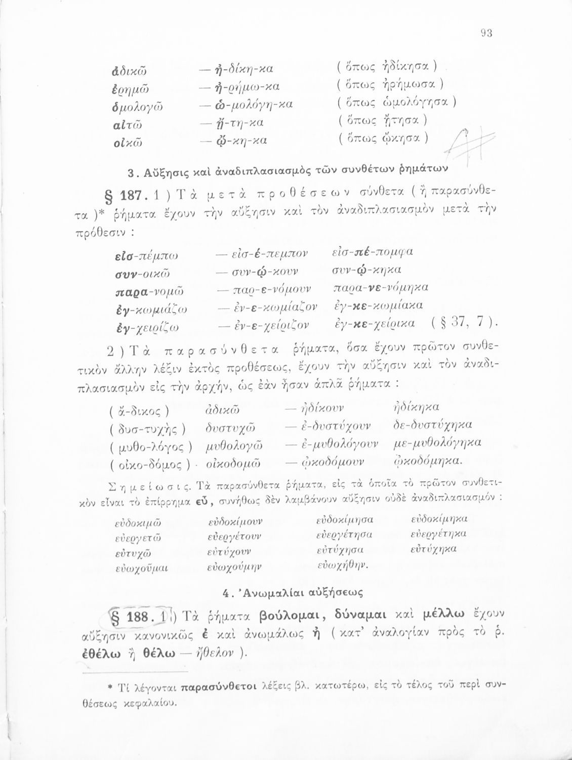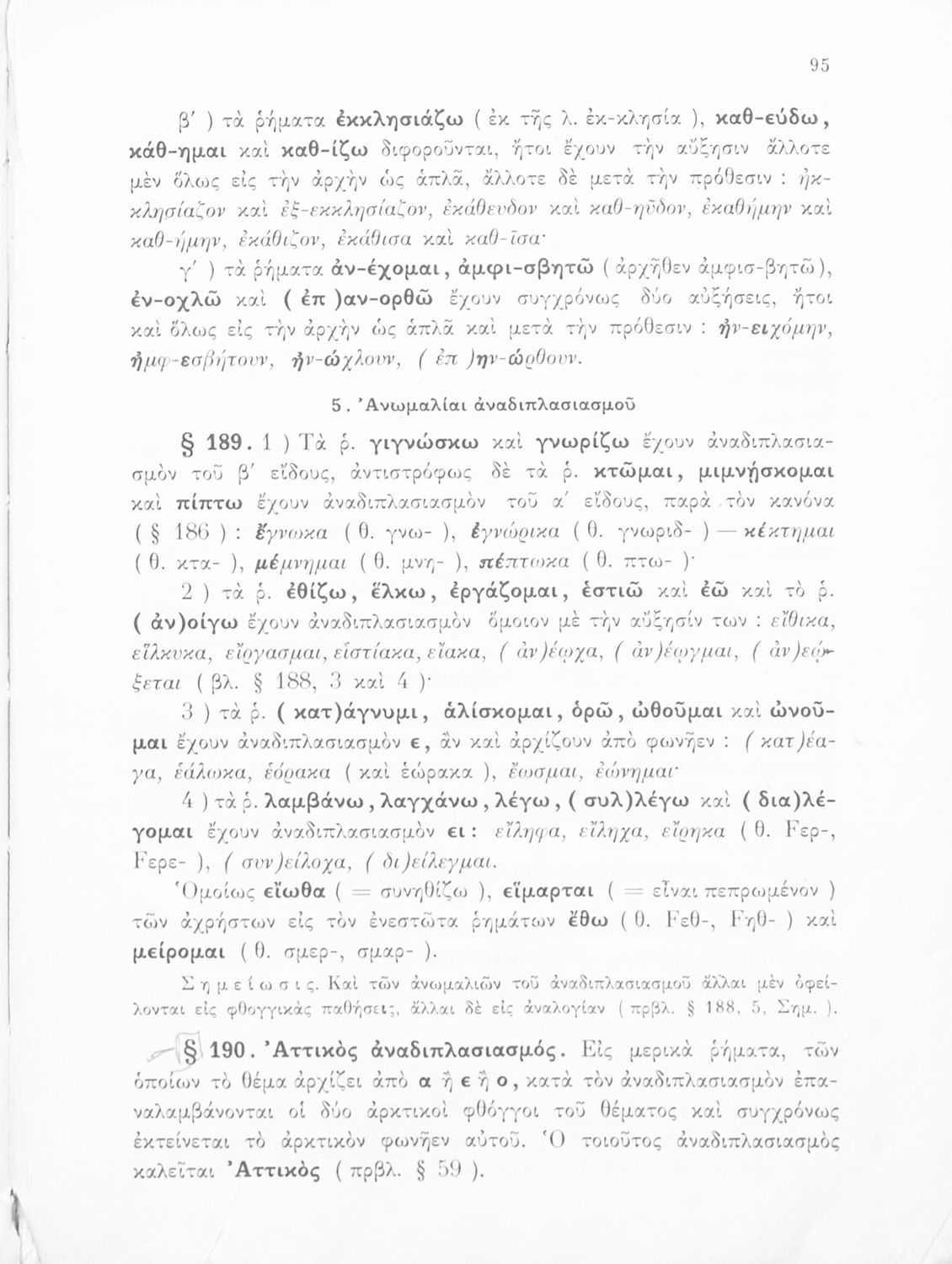 Σχολικό εγχειρίδιο Αρχαίων Ελληνικών Γυμνασίου που περιέχει τους κανόνες γραμματικής και είναι χωρισμένο σε φθογγολογικό, τυπολογικό και ετυμολογικό μέρος. Περιέχει και κατάλογο ανωμάλων ρημάτων.