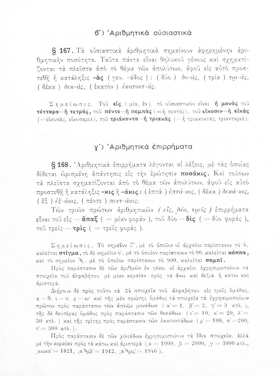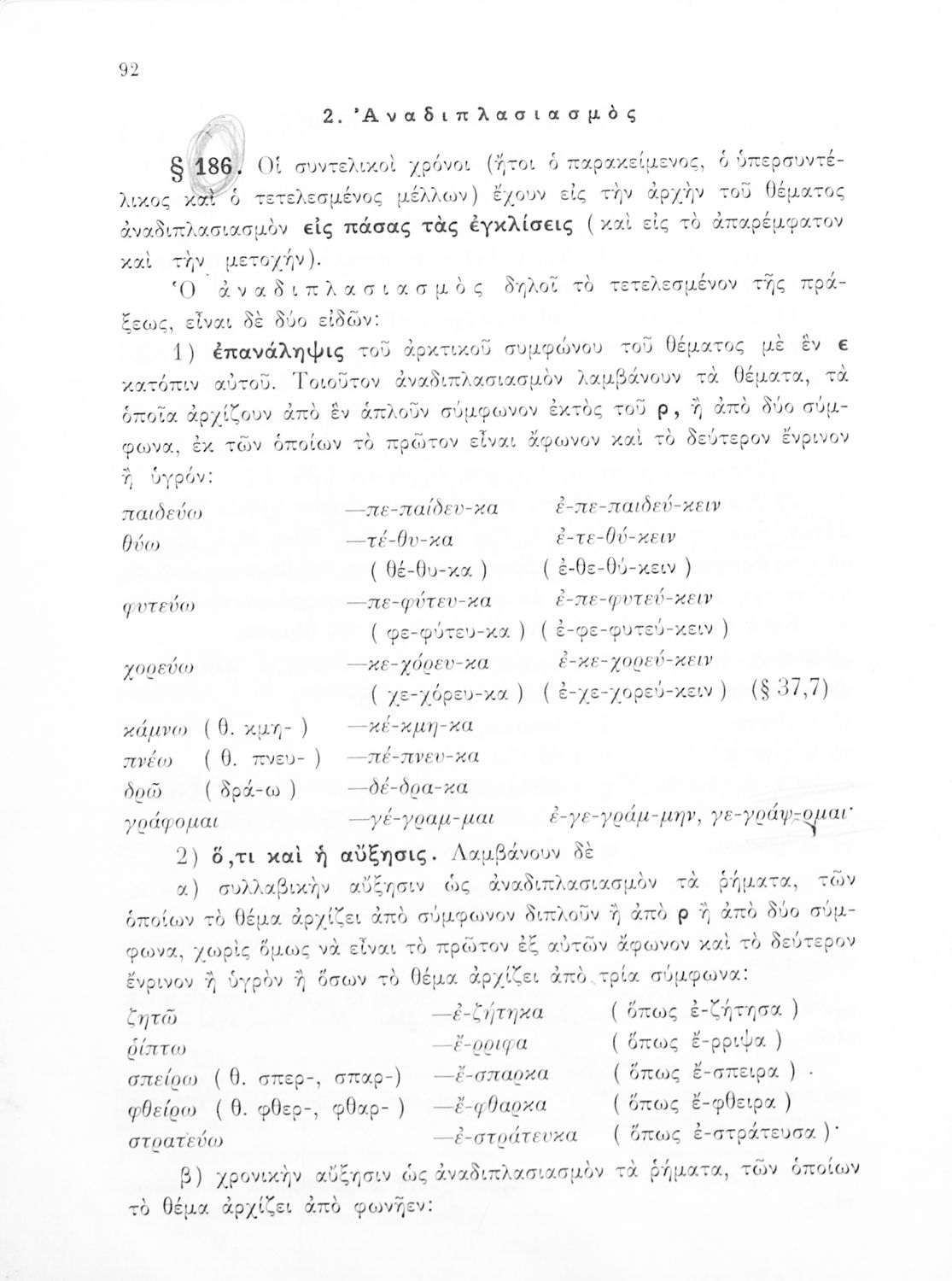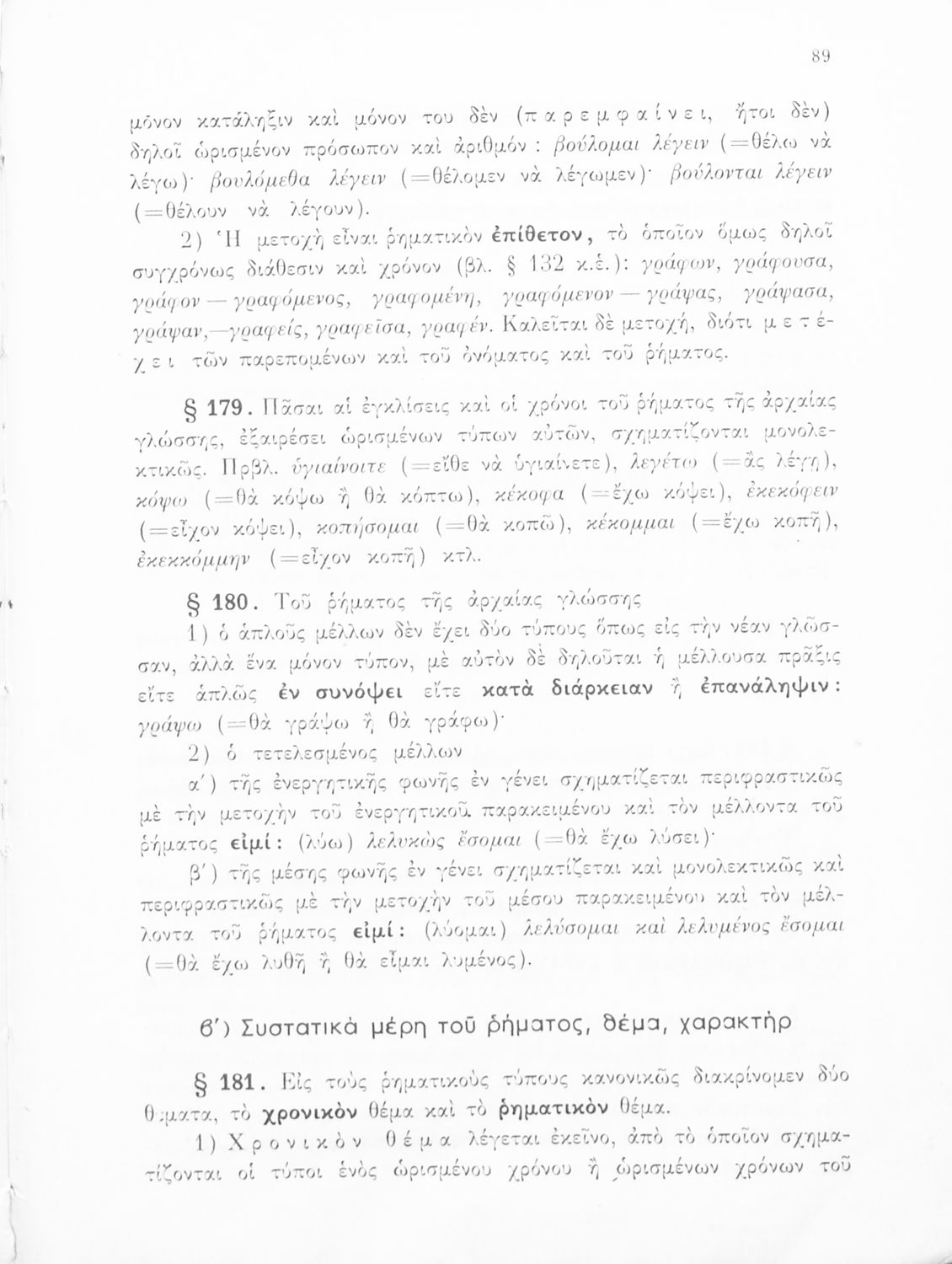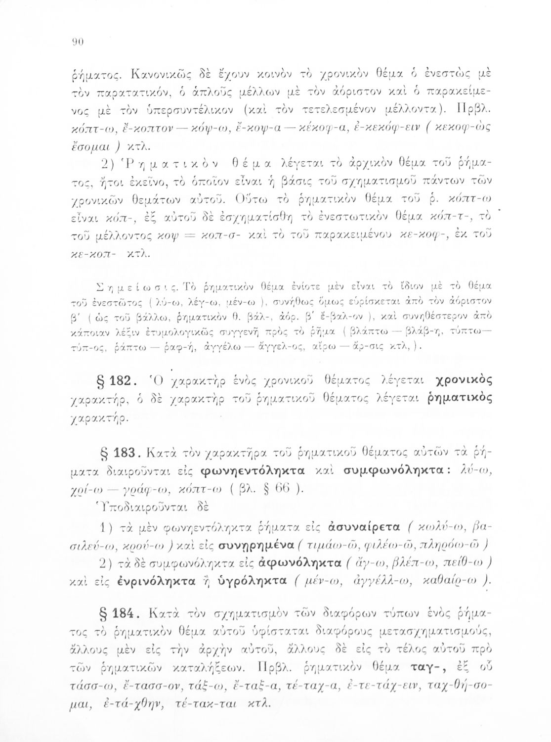 Σχολικό εγχειρίδιο Αρχαίων Ελληνικών Γυμνασίου που περιέχει τους κανόνες γραμματικής και είναι χωρισμένο σε φθογγολογικό, τυπολογικό και ετυμολογικό μέρος. Περιέχει και κατάλογο ανωμάλων ρημάτων.