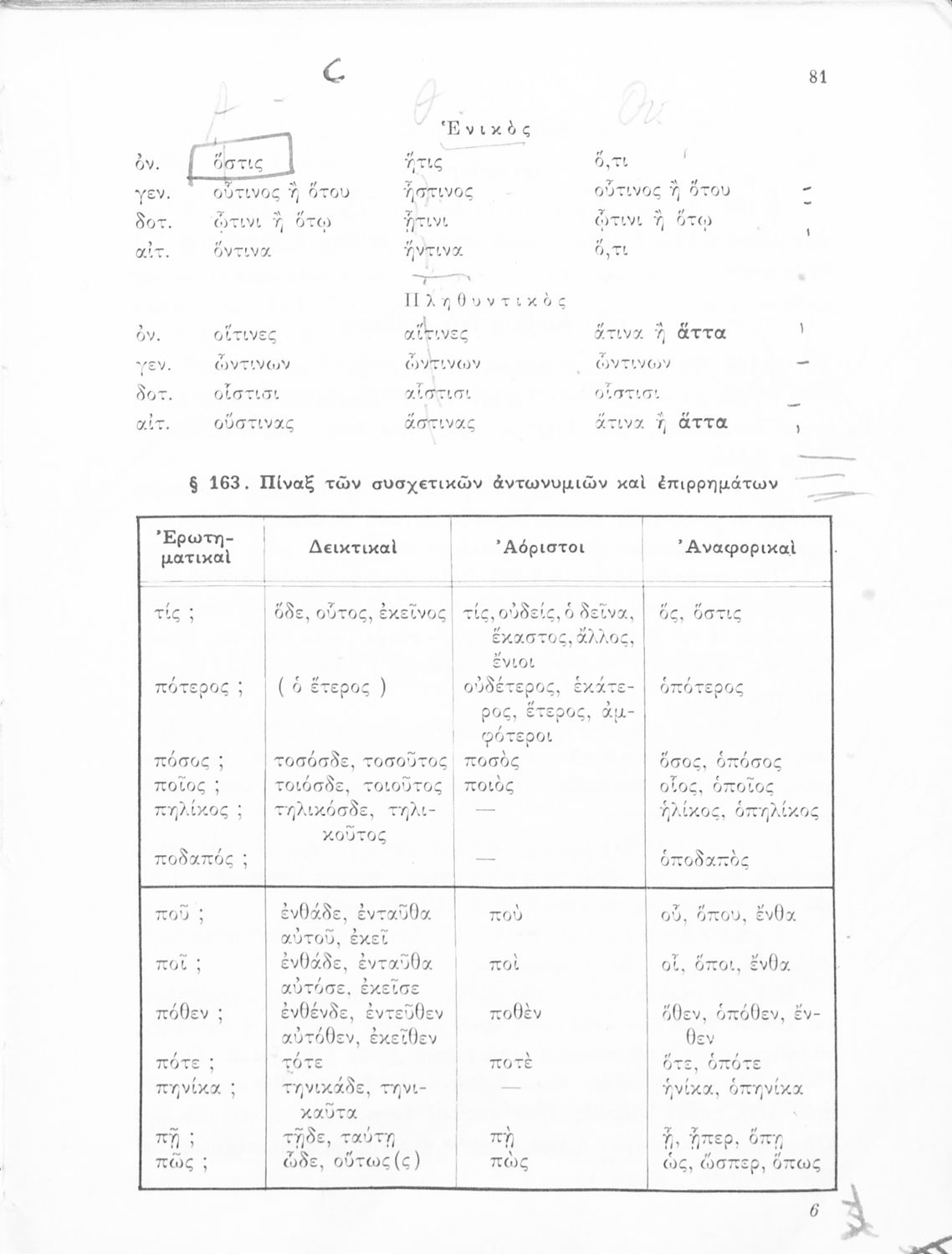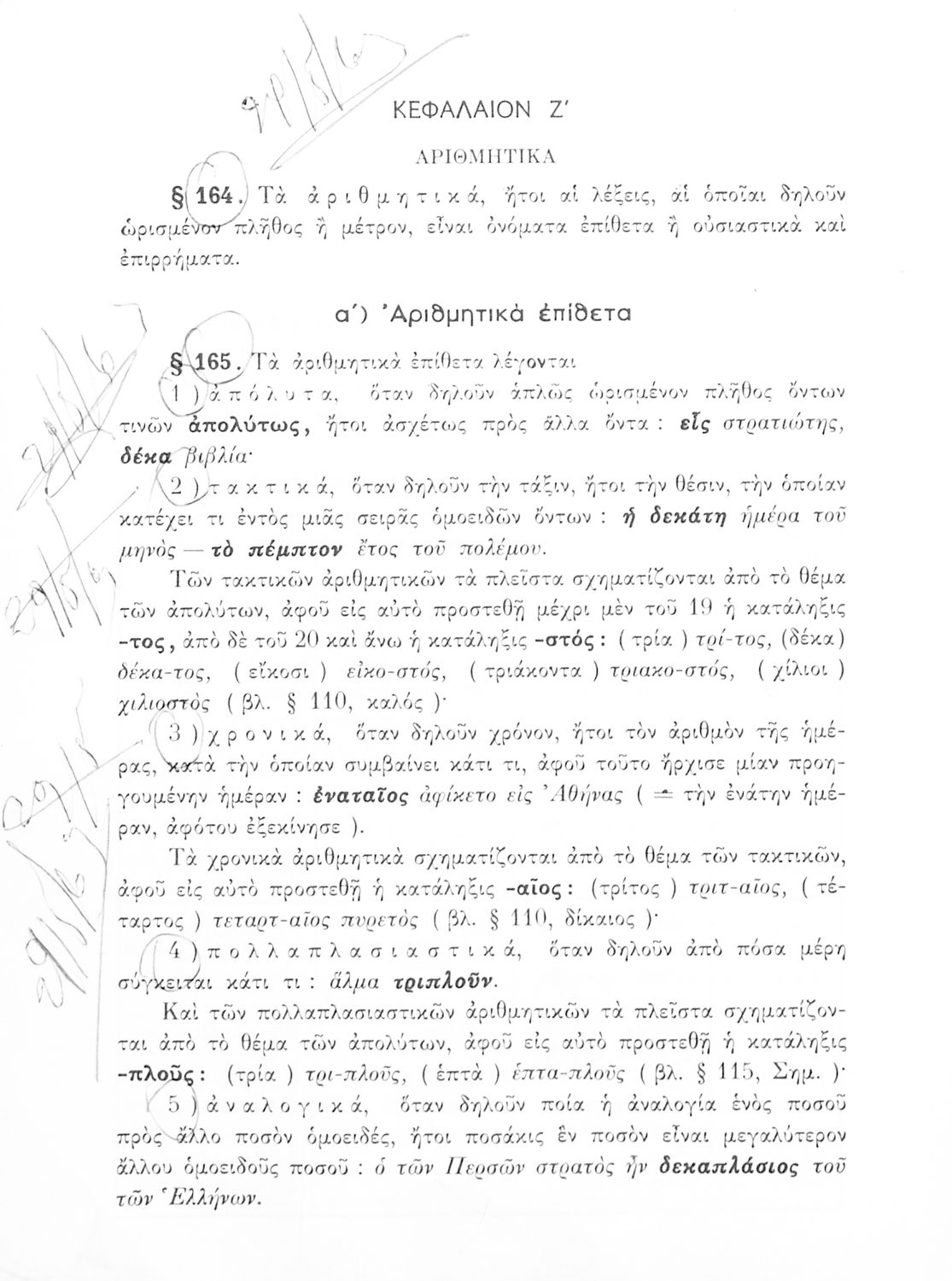 Σχολικό εγχειρίδιο Αρχαίων Ελληνικών Γυμνασίου που περιλαμβάνει τους κανόνες γραμματικής και είναι χωρισμένη στο φθογγολογικό, το τυπολογικό και ετυμολογικό μέρος.