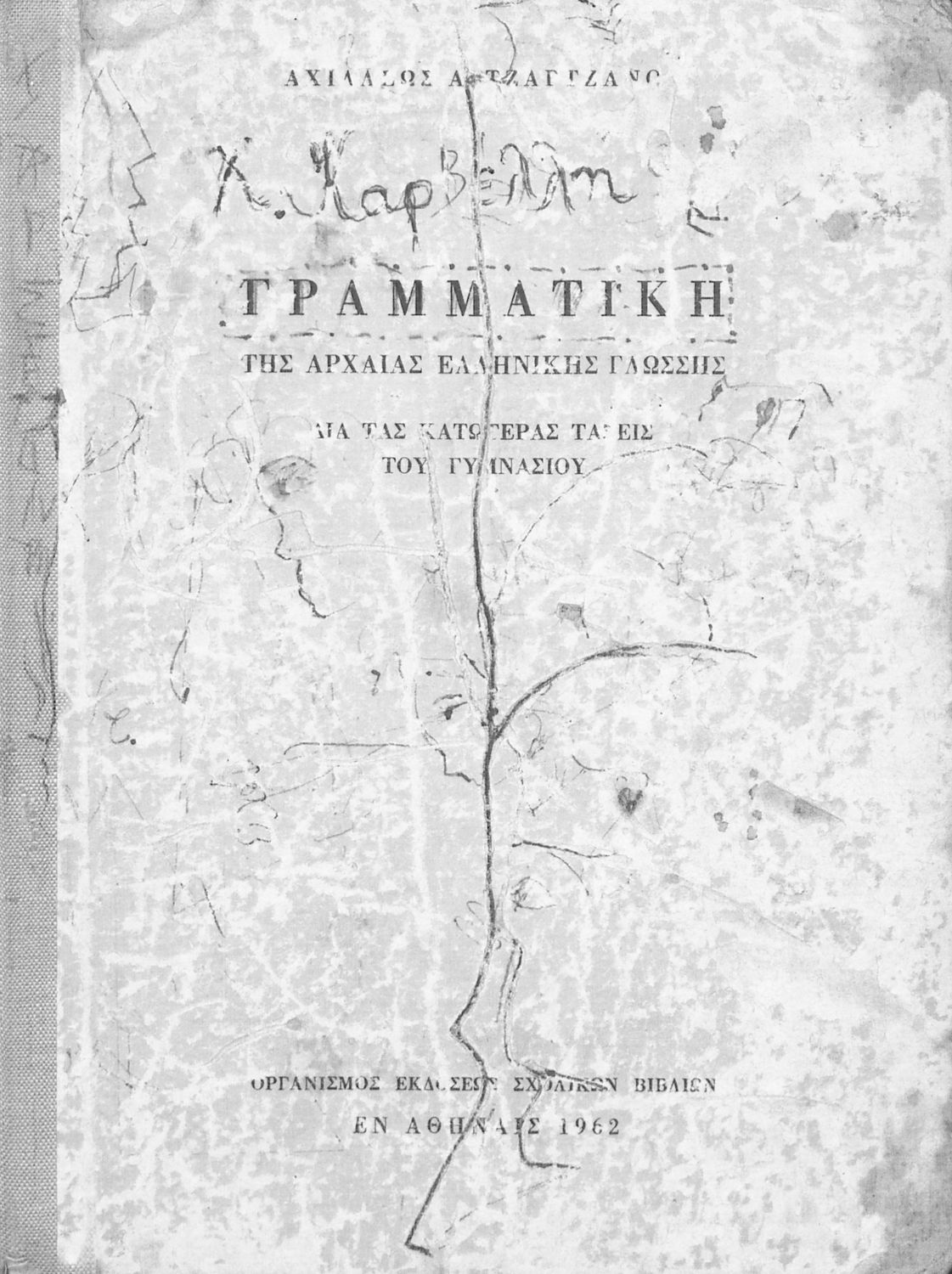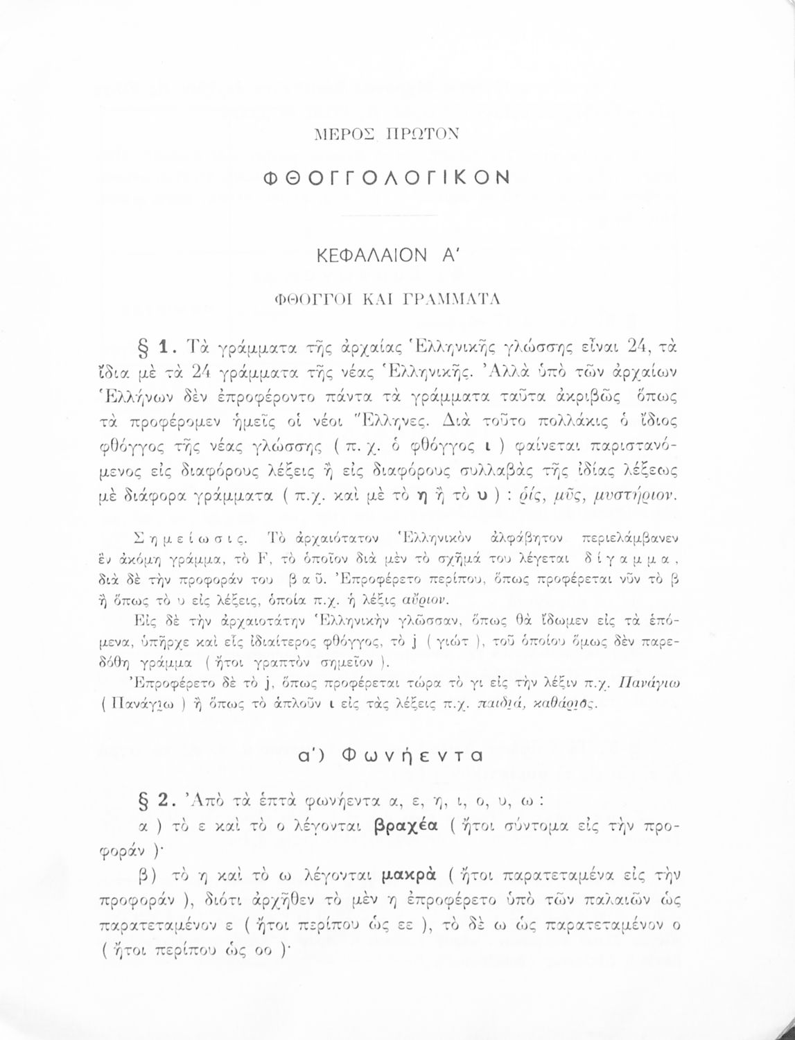 Σχολικό εγχειρίδιο Αρχαίων Ελληνικών Γυμνασίου που περιλαμβάνει τους κανόνες γραμματικής και είναι χωρισμένη στο φθογγολογικό, το τυπολογικό και ετυμολογικό μέρος.