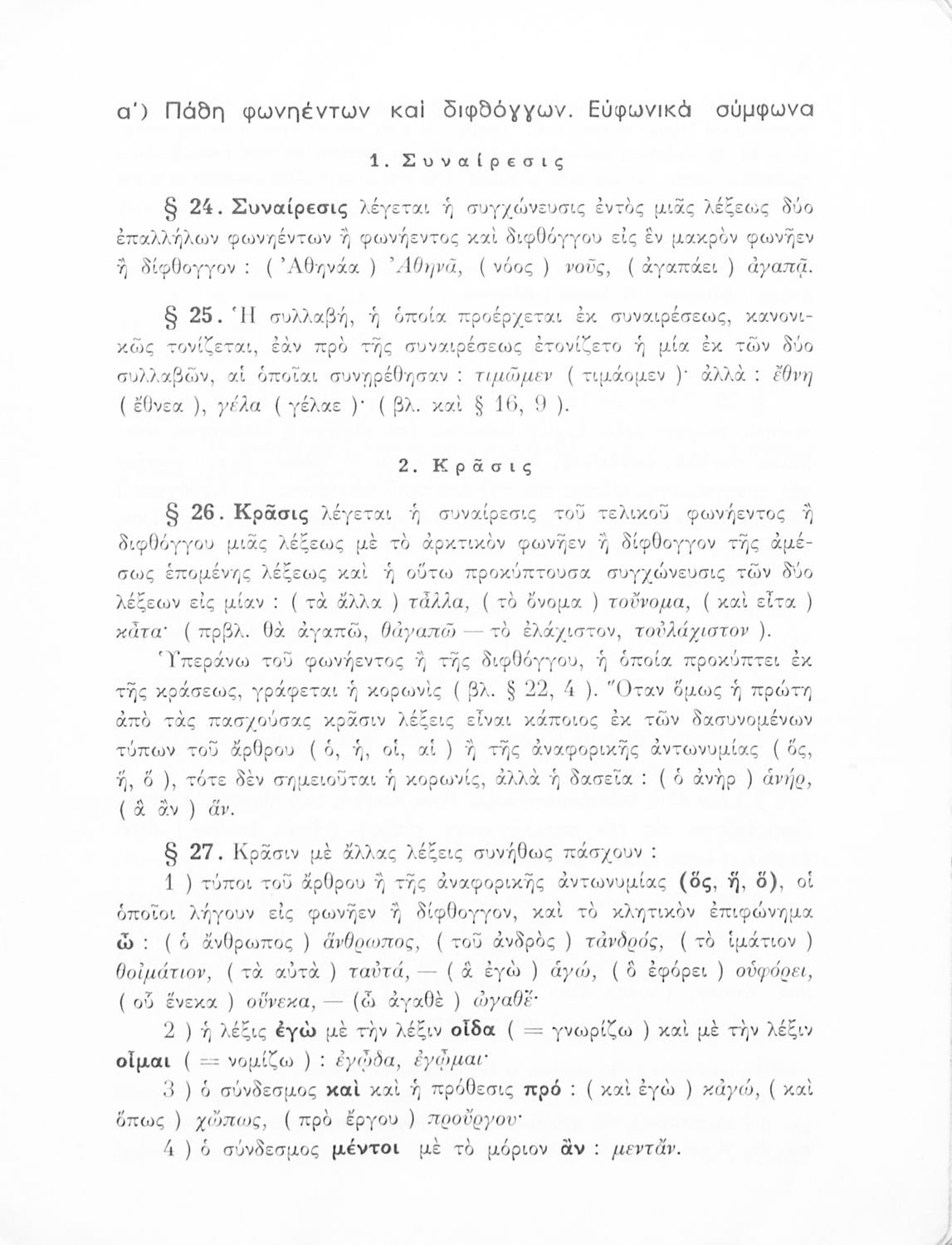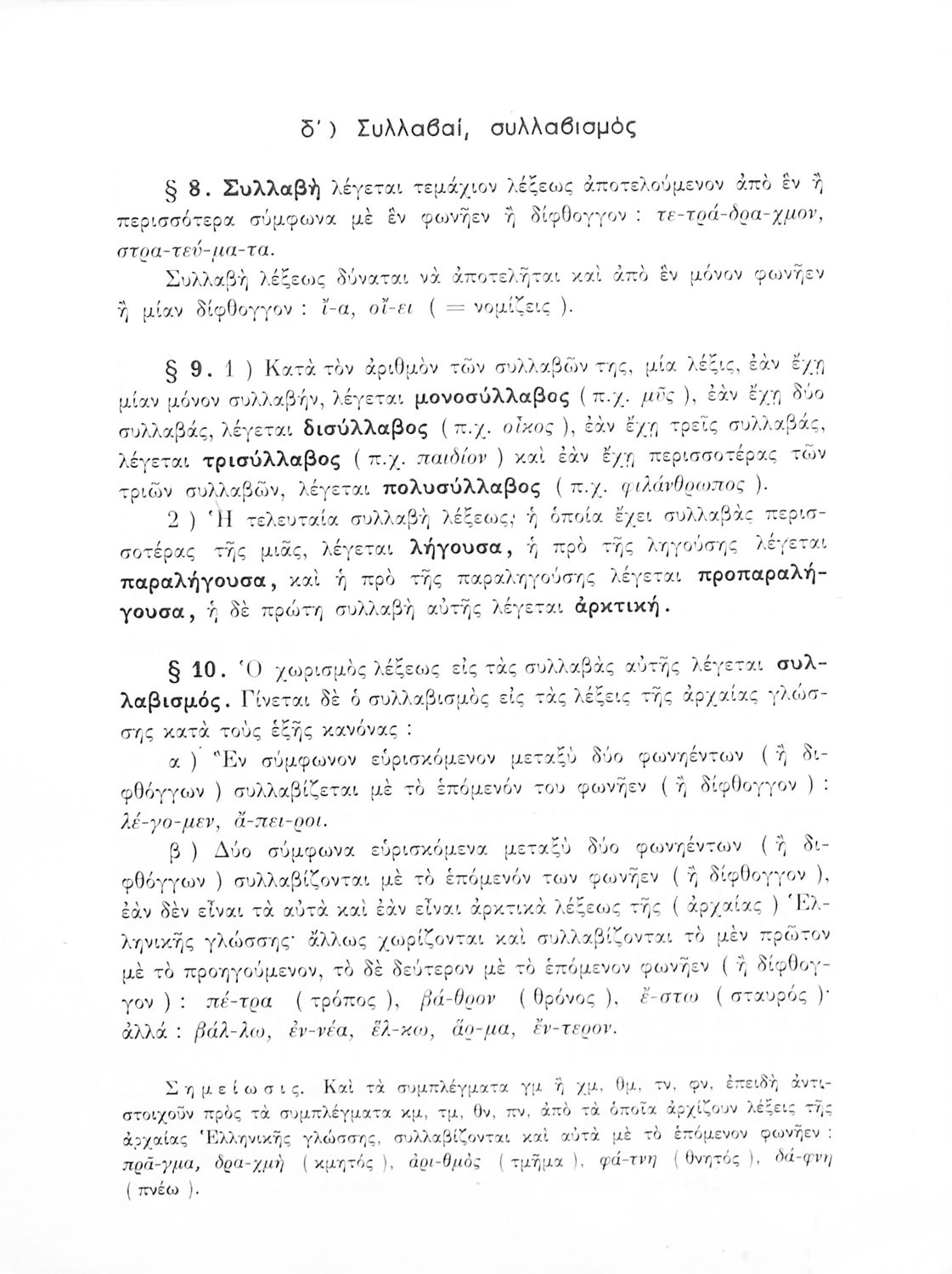 Σχολικό εγχειρίδιο Αρχαίων Ελληνικών Γυμνασίου που περιέχει τους κανόνες γραμματικής και είναι χωρισμένο σε φθογγολογικό, τυπολογικό και ετυμολογικό μέρος. Περιέχει και κατάλογο ανωμάλων ρημάτων.