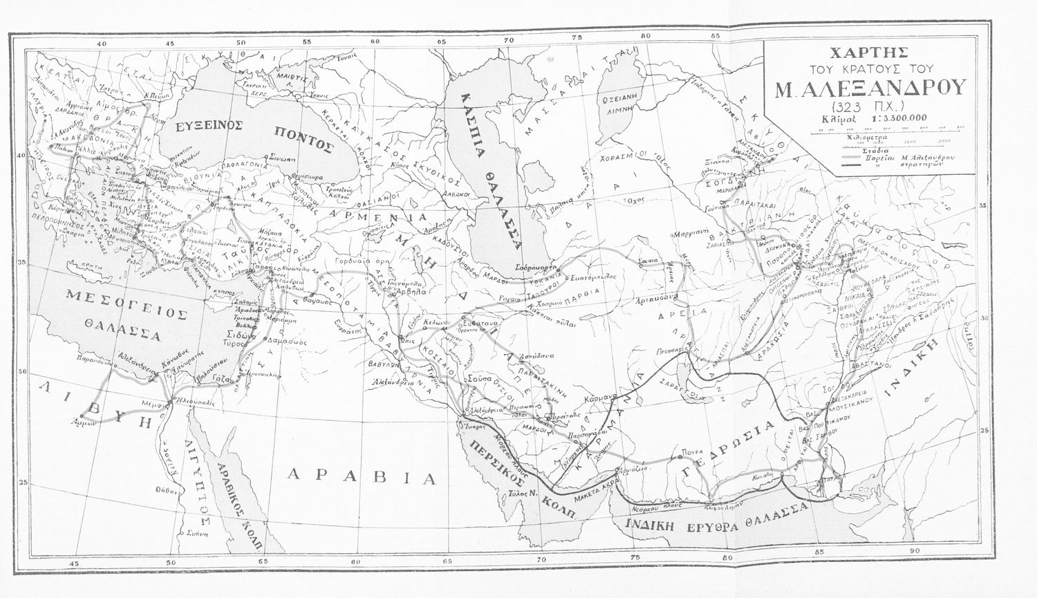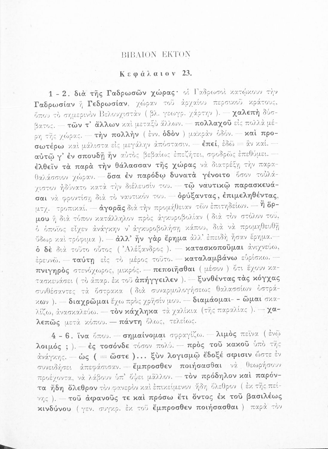 Σχολικό εγχειρίδιο Αρχαίων Ελληνικών που περιλαμβάνει αποσπάσματα από το έργο του Αρριανού Αλέξανδρου Ανάβασις και του Ηρόδοτου Ιστορίαι, ερμηνευτικές και λεξιλογικές παρατηρήσεις καθώς και τοπογραφικούς ...