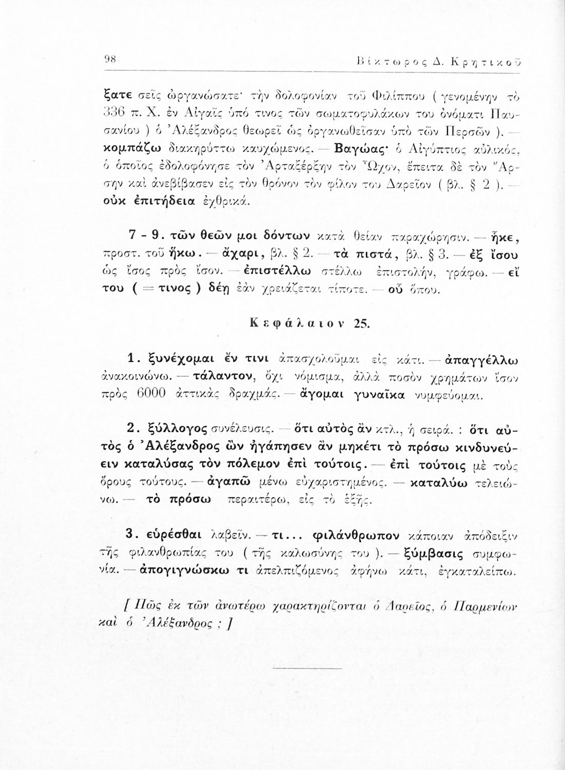 Αρριανός (Lucius Flavius Arrianus), Βίκτωρ Δ. Κρητικός (σχόλια)