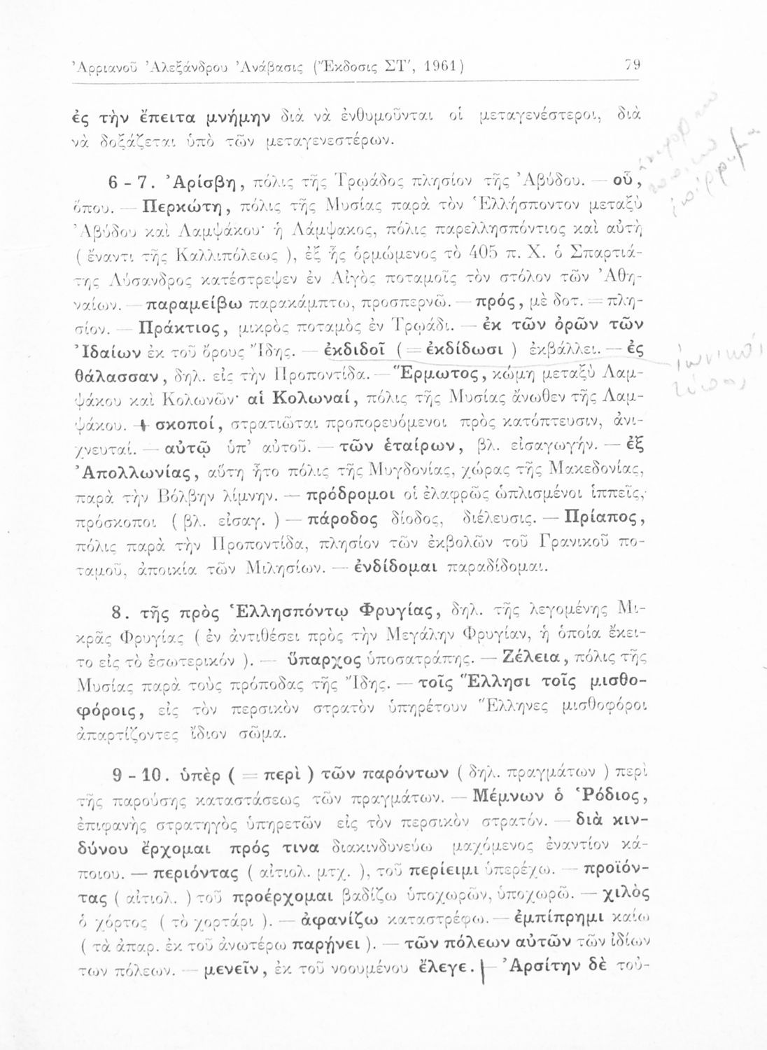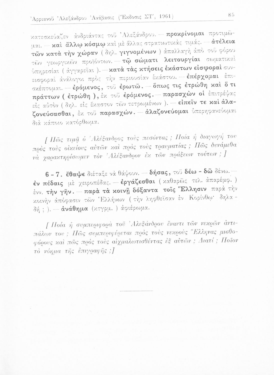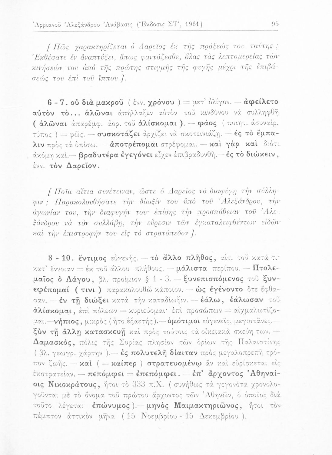 Σχολικό εγχειρίδιο Αρχαίων Ελληνικών που περιλαμβάνει αποσπάσματα από το έργο του Αρριανού Αλέξανδρου Ανάβασις και του Ηρόδοτου Ιστορίαι, ερμηνευτικές και λεξιλογικές παρατηρήσεις καθώς και τοπογραφικούς ...