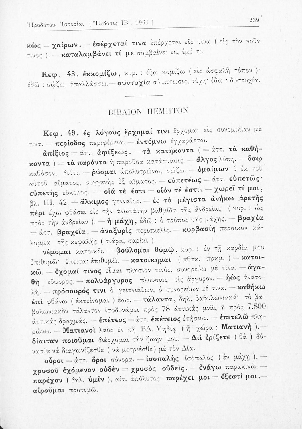 Σχολικό εγχειρίδιο Αρχαίων Ελληνικών Γ΄ Γυμνασίου που περιλαμβάνει εισαγωγή στη ζωή και το έργο του Ηρόδοτου, αποσπάσματα από την Ιστορία του, ερμηνευτικές σημειώσεις και τοπογραφικούς πίνακες με εικόνες και χάρτες.