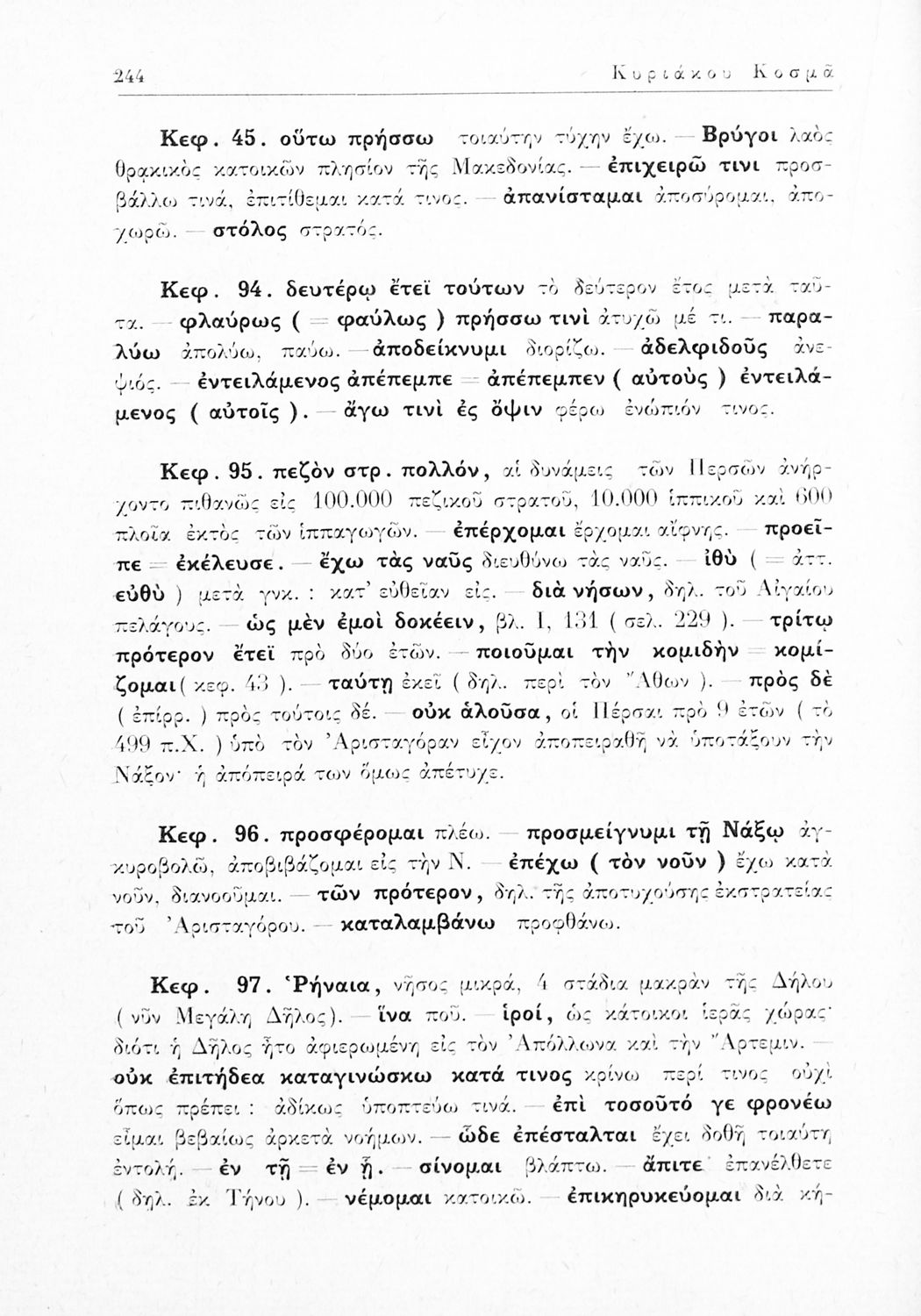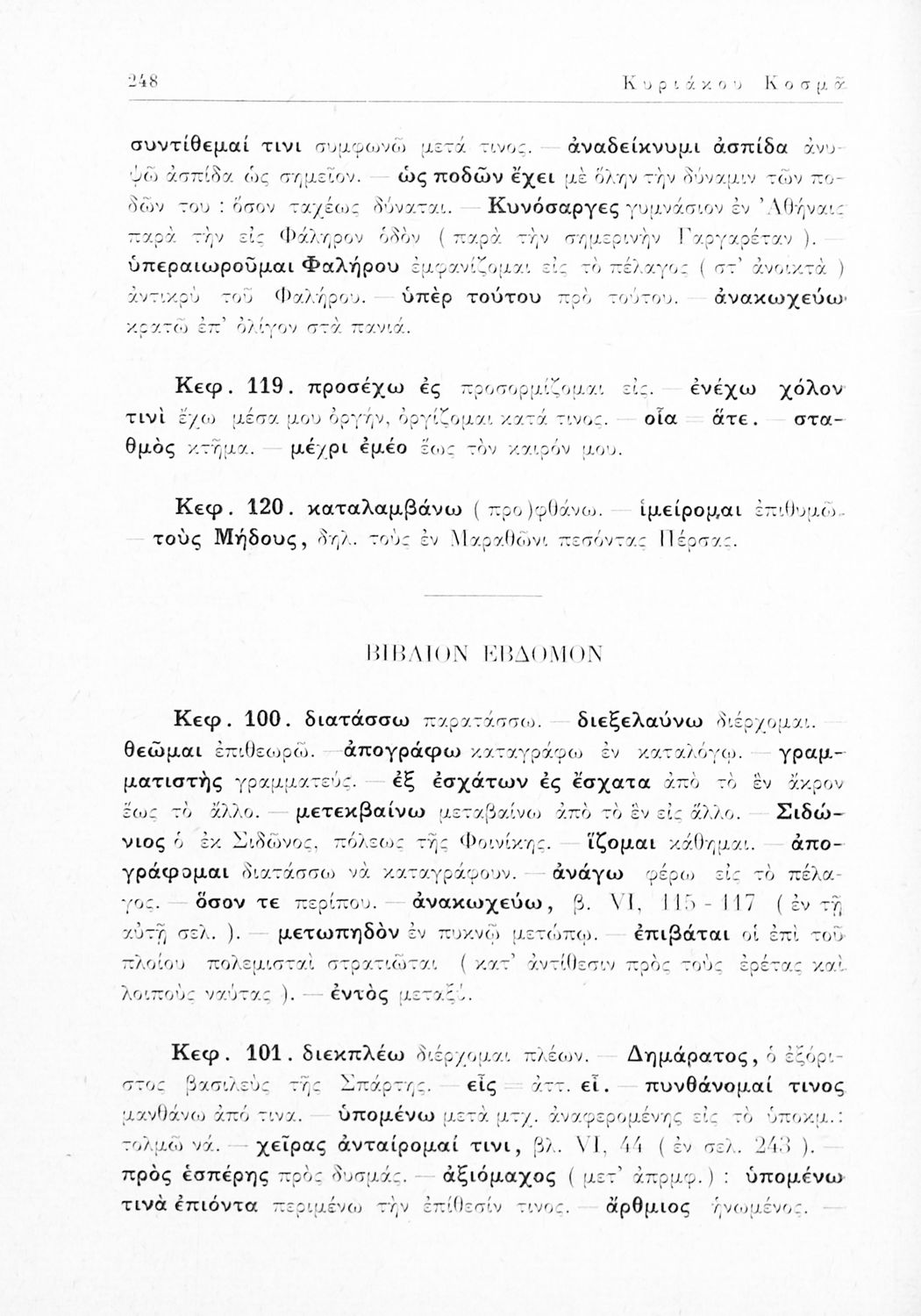 LDR 01376 2200217 4500 035 ## _a02-00754 040 ## _aΕλληνικό Λογοτεχνικό και Ιστορικό Αρχείο 041 ## _ael 100 ## _aΗρόδοτος _aΚυριάκος Κοσμάς (σχόλια) 110 ## _a1961 ΚΟΣ 245 0# _aΗροδότου Ιστορίαι, (Εκλογαί) διά την Γ΄ τάξιν των εξατάξιων Γυμνασίων 250 ## _a12η Έκδοση 260 ## _aΑθήνα _bΟργανισμός Εκδόσεως Σχολικών Βιβλίων _c1961 300 ## _a143 _bΧάρτες (έγχρωμοι), Χάρτες (ασπρόμαυροι) 520 ## _aΣχολικό εγχειρίδιο Αρχαίων Ελληνικών Γ΄ Γυμνασίου που περιλαμβάνει εισαγωγή στη ζωή και το έργο του Ηρόδοτου, αποσπάσματα από την Ιστορία του, ερμηνευτικές σημειώσεις και τοπογραφικούς πίνακες με εικόνες και χάρτες. 521 ## _aΓ' Γυμνασίου 522 ## _aΕλλάδα 546 ## _aΚαθαρεύουσα 563 ## _aΜαλακό Εξώφυλλο 583 ## _a1032/16-3-1961 650 #4 _aΑρισταγόρας _aΗρόδοτος _aΜαρδόνιος _aΠέρσες _aΠλαταιές _aΣαλαμίνα