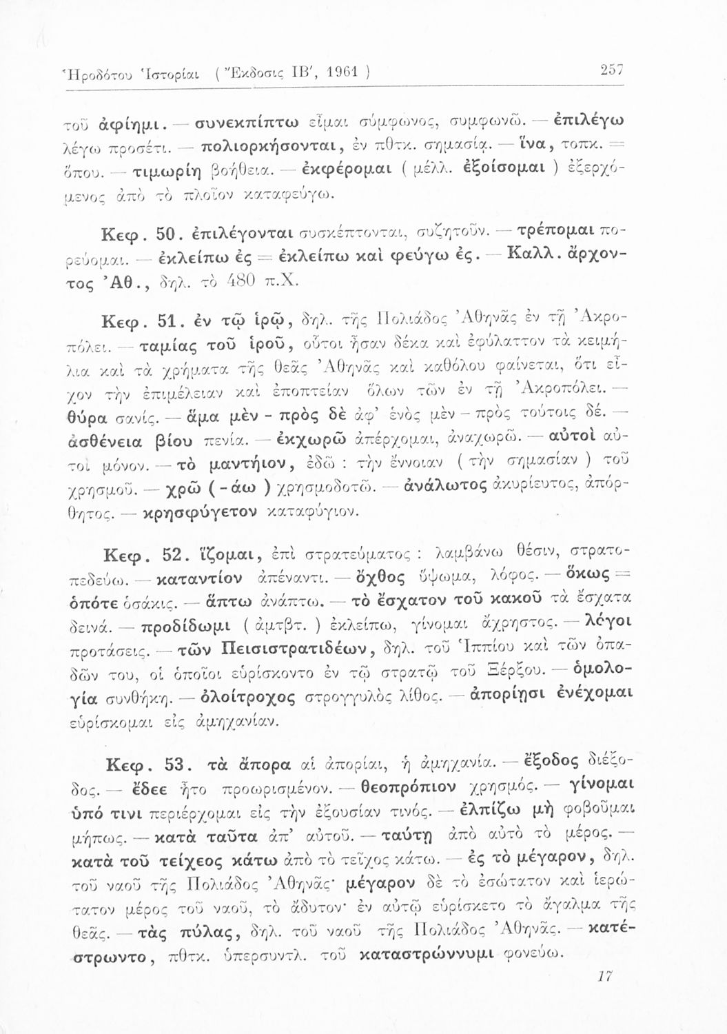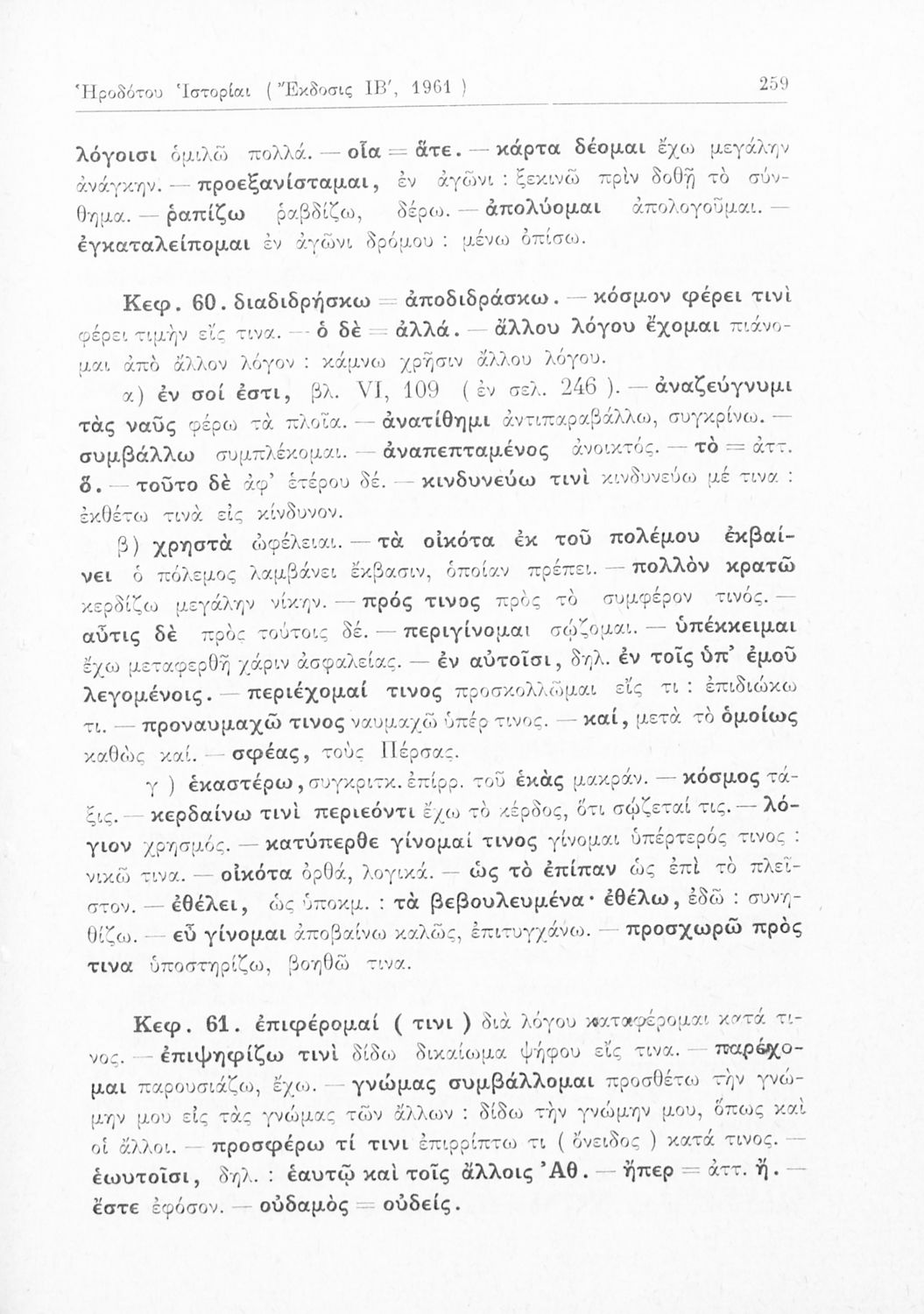 Σχολικό εγχειρίδιο Αρχαίων Ελληνικών Γ΄ Γυμνασίου που περιλαμβάνει εισαγωγή στη ζωή και το έργο του Ηρόδοτου, αποσπάσματα από την Ιστορία του, ερμηνευτικές σημειώσεις και τοπογραφικούς πίνακες με εικόνες και χάρτες.