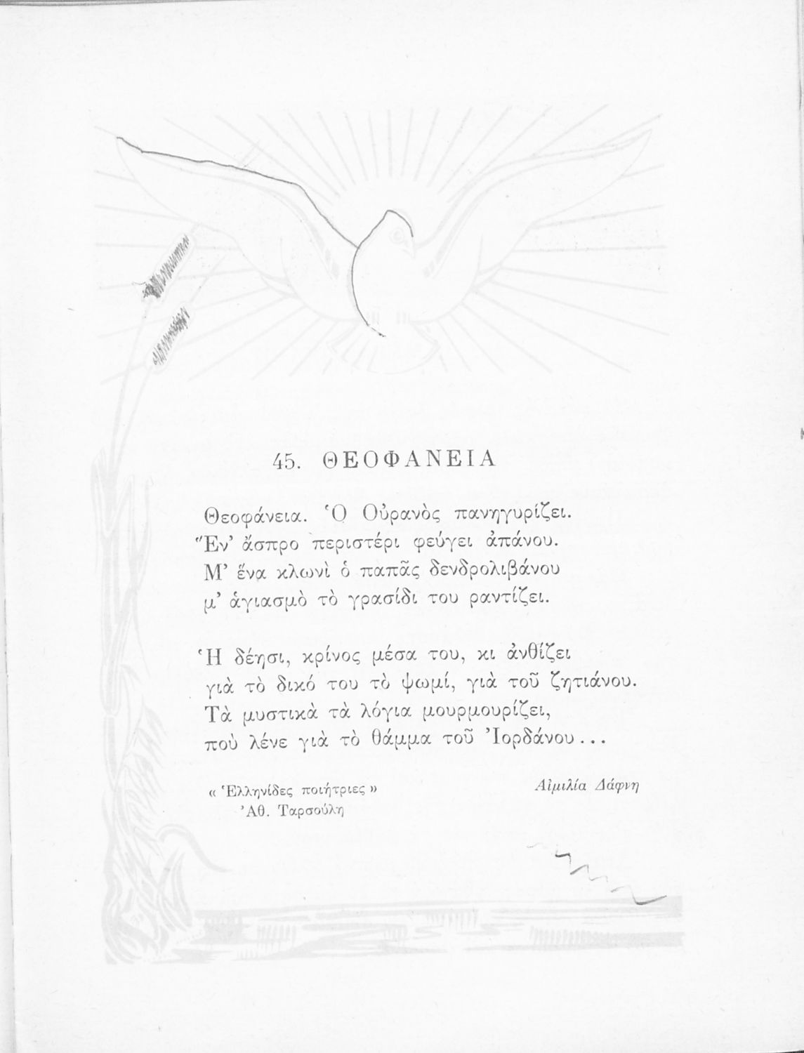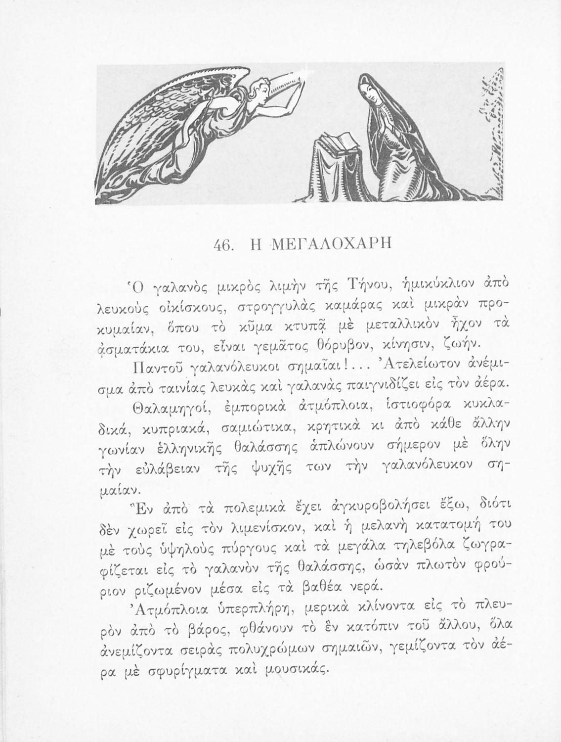 Αναγνωστικό Ε΄ Δημοτικού που περιέχει κείμενα εμπνευσμένα από την εθνική, κοινωνική και οικογενειακή ζωή και την ελληνική φύση, μυθολογία και ιστορία. Φέρει το σύμβολο της δικτατορίας.
