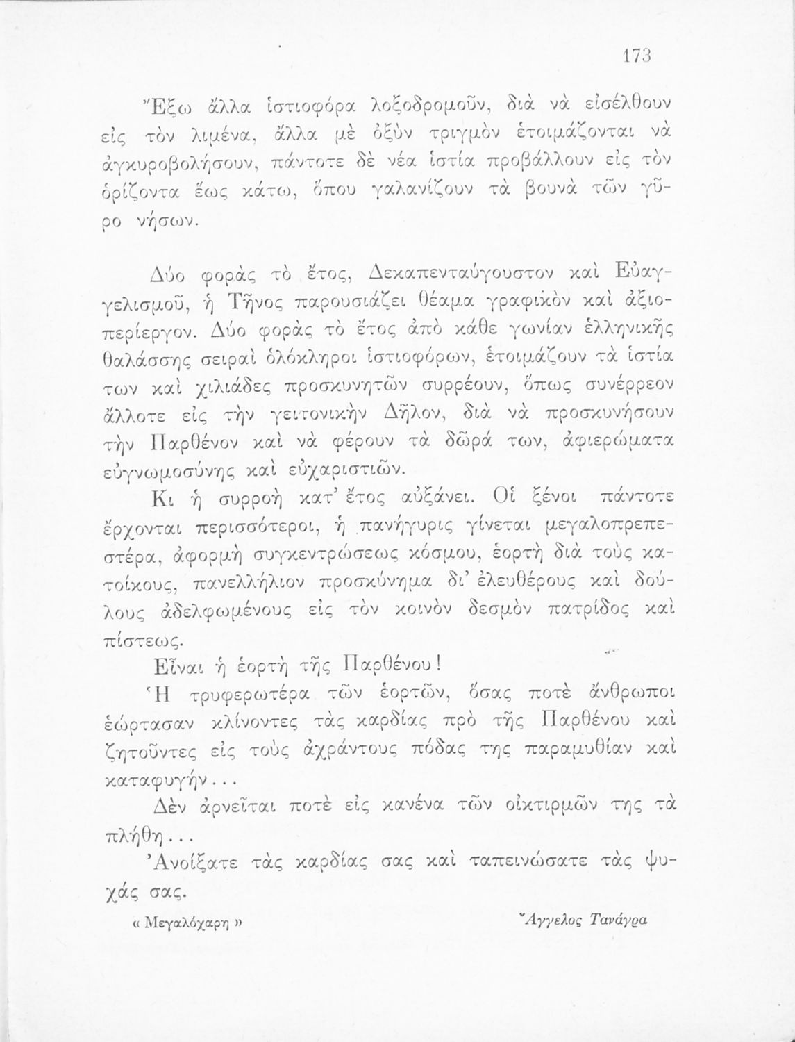 Αναγνωστικό Ε΄ Δημοτικού που περιέχει πεζά και ποιήματα εμπνευσμένα από τη θρησκευτική, εθνική, κοινωνική ζωή καθώς και από τις ασχολίες των Ελλήνων, την αρχαία και σύγχρονη ελληνική ιστορία και τον πολιτισμό.