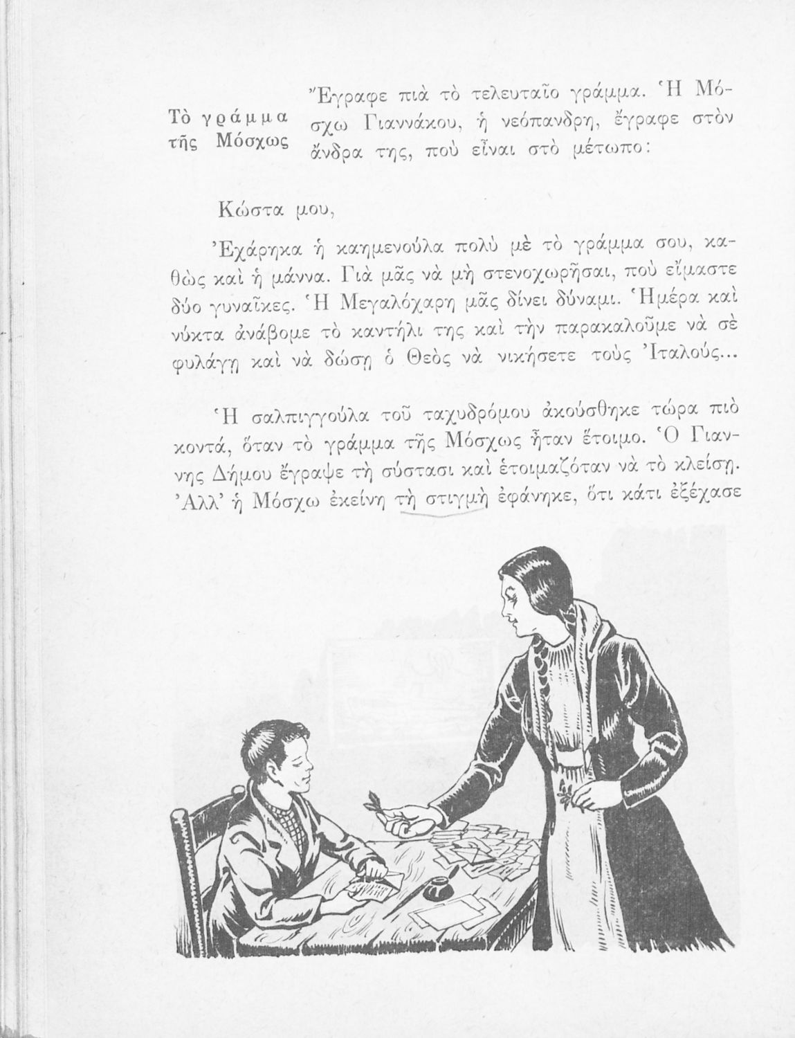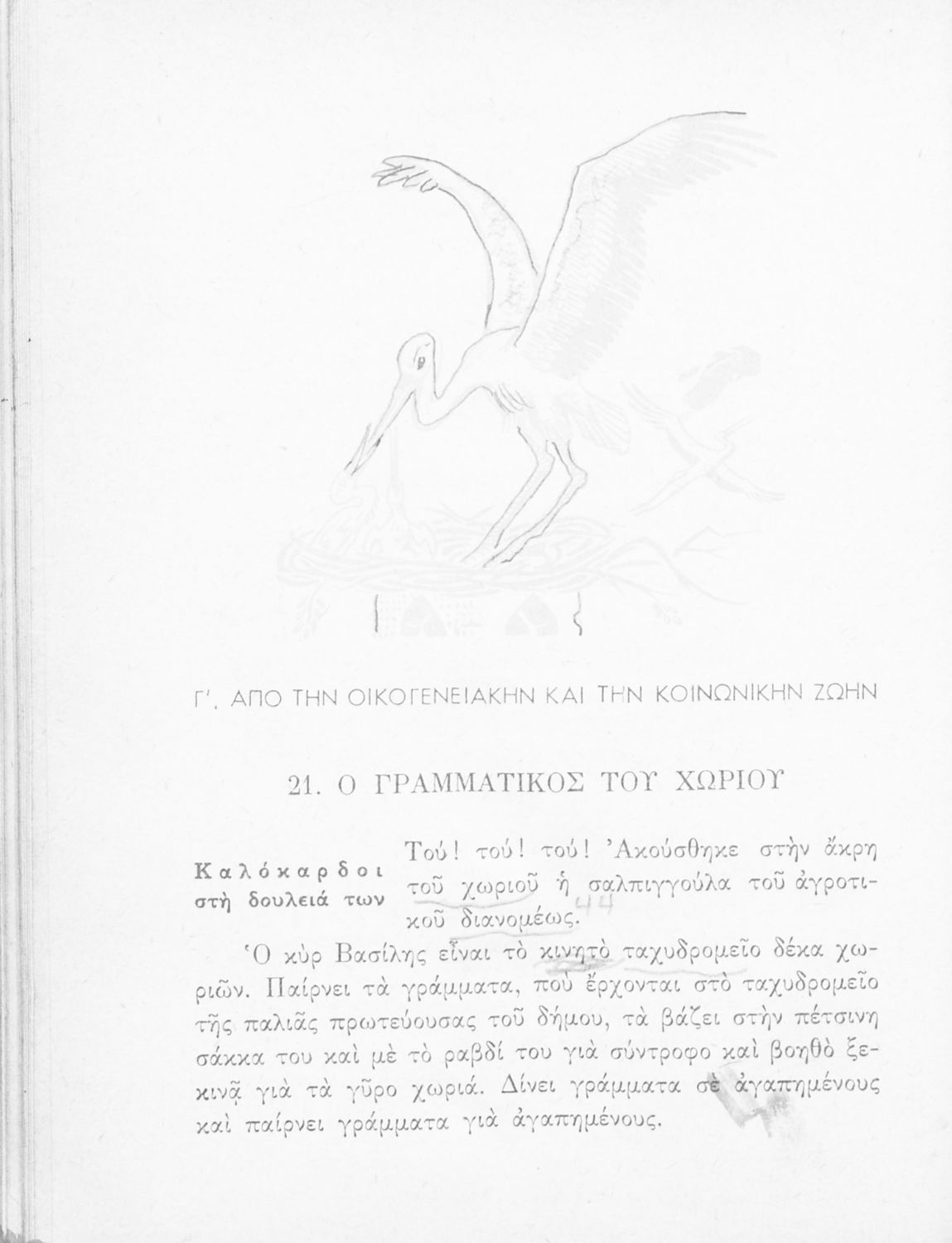 Αναγνωστικό Ε΄ Δημοτικού που περιέχει κείμενα εμπνευσμένα από την εθνική, κοινωνική και οικογενειακή ζωή και την ελληνική φύση, μυθολογία και ιστορία. Φέρει το σύμβολο της δικτατορίας.