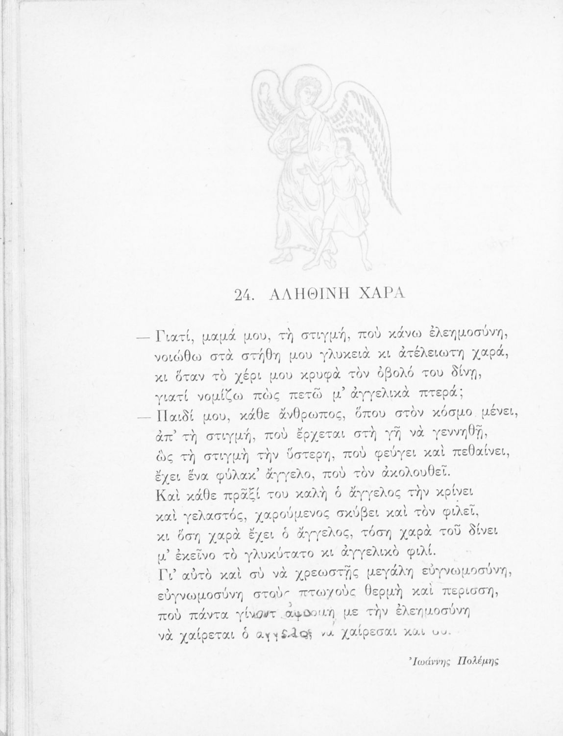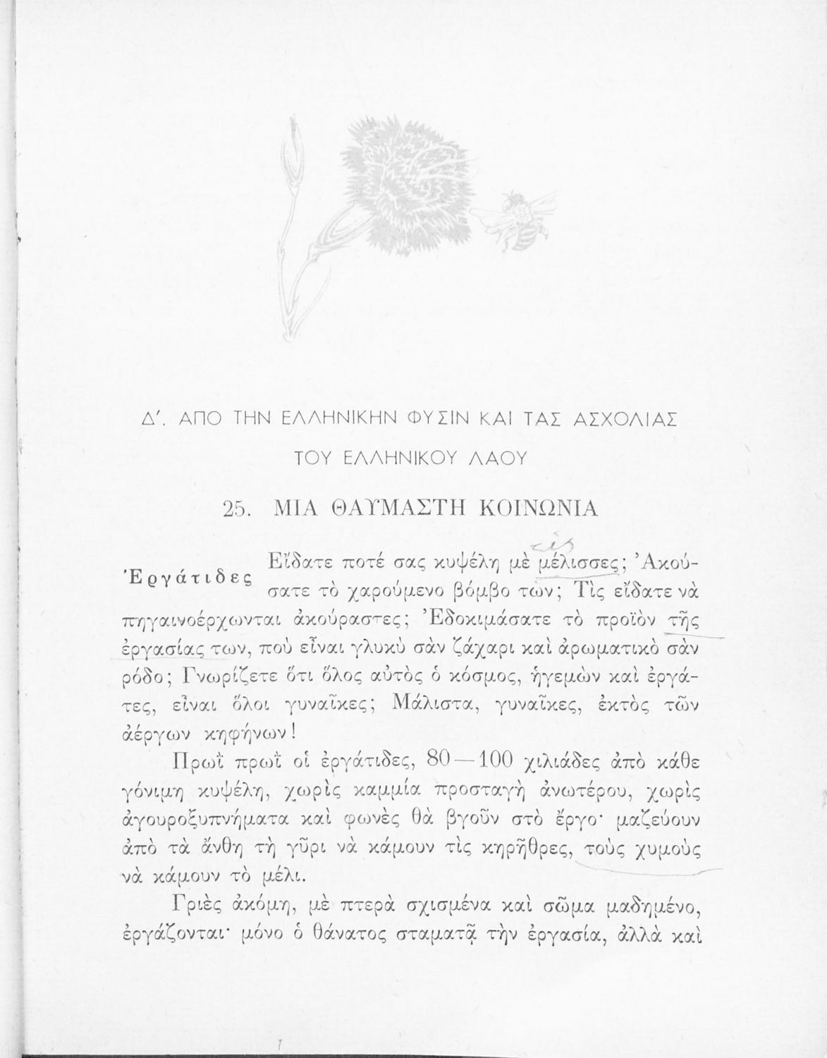 Αναγνωστικό Ε΄ Δημοτικού που περιέχει πεζά και ποιήματα εμπνευσμένα από τη θρησκευτική, εθνική, κοινωνική ζωή καθώς και από τις ασχολίες των Ελλήνων, την αρχαία και σύγχρονη ελληνική ιστορία και τον πολιτισμό.
