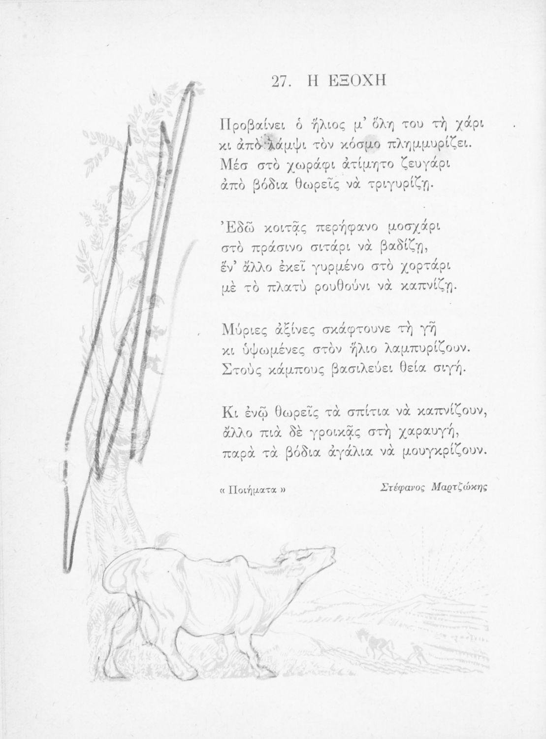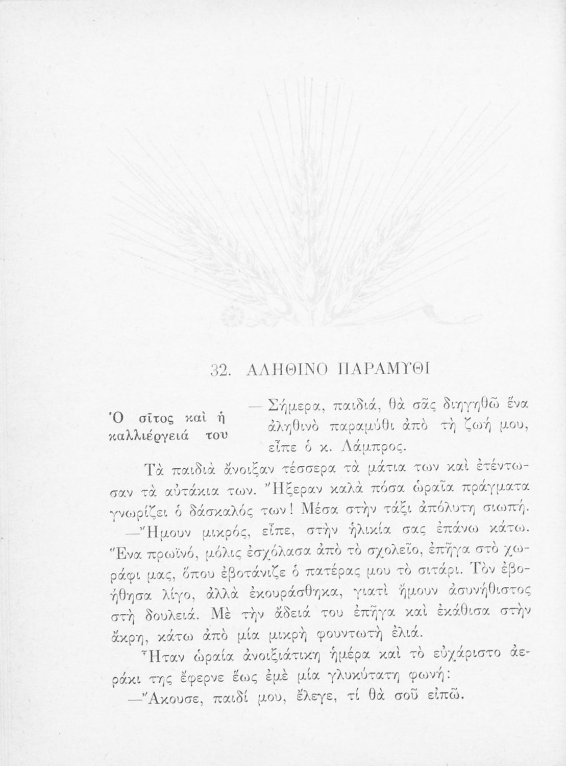 Αναγνωστικό Ε΄ Δημοτικού που περιέχει πεζά και ποιήματα εμπνευσμένα από τη θρησκευτική, εθνική, κοινωνική ζωή καθώς και από τις ασχολίες των Ελλήνων, την αρχαία και σύγχρονη ελληνική ιστορία και τον πολιτισμό.