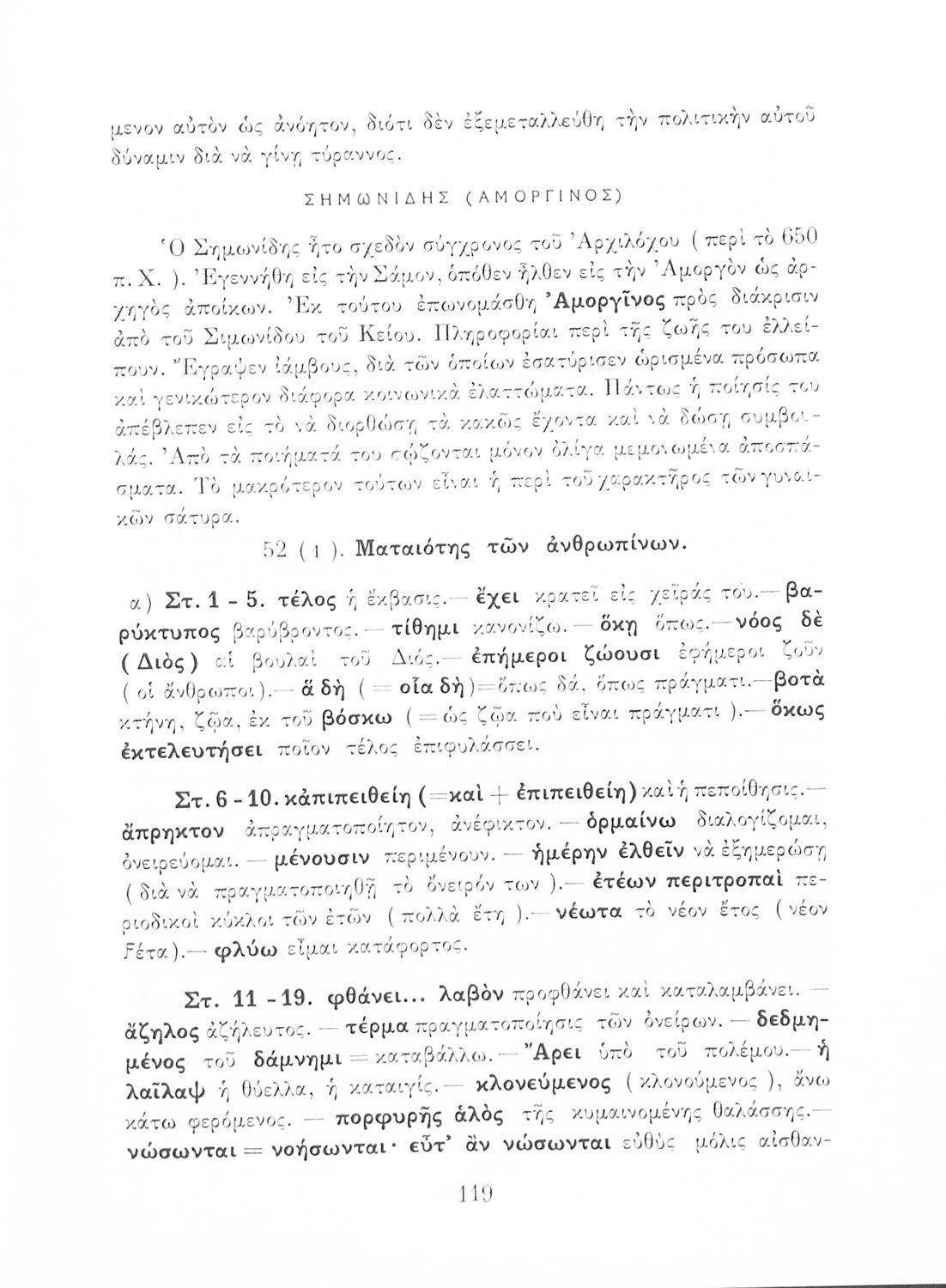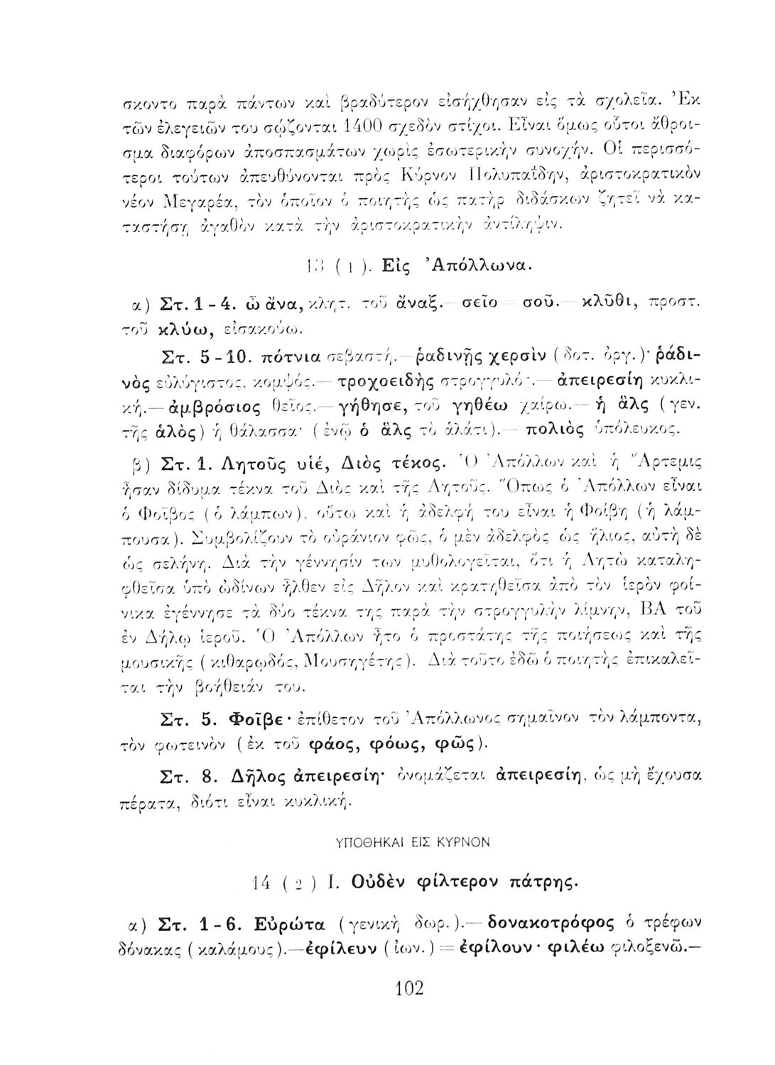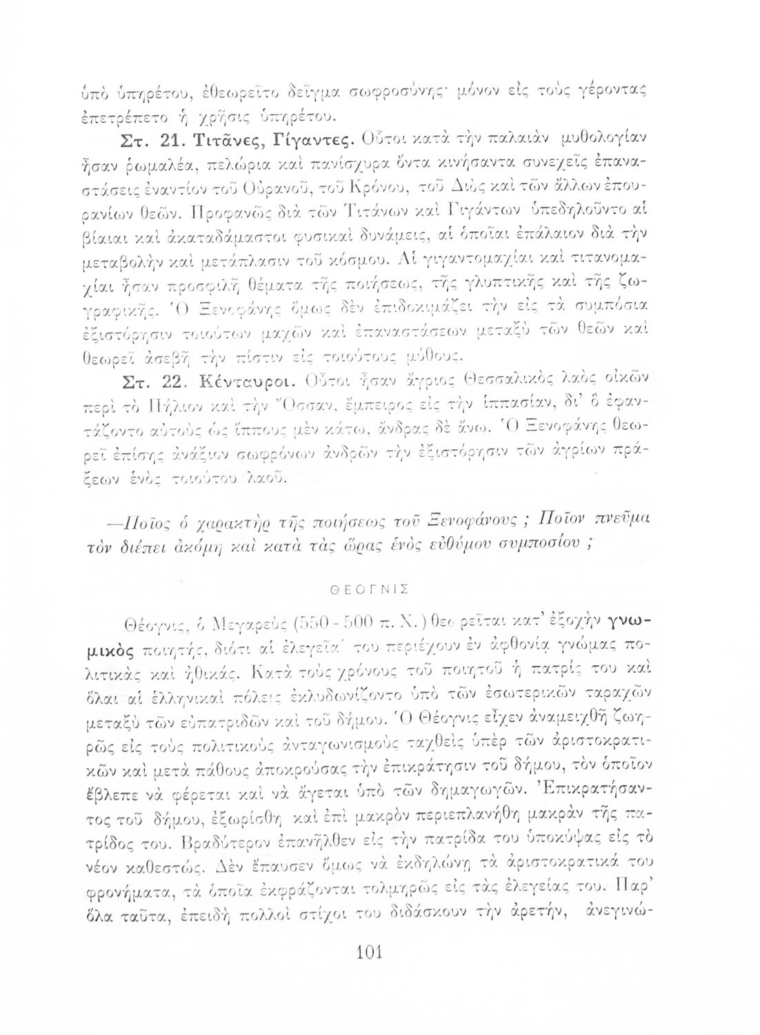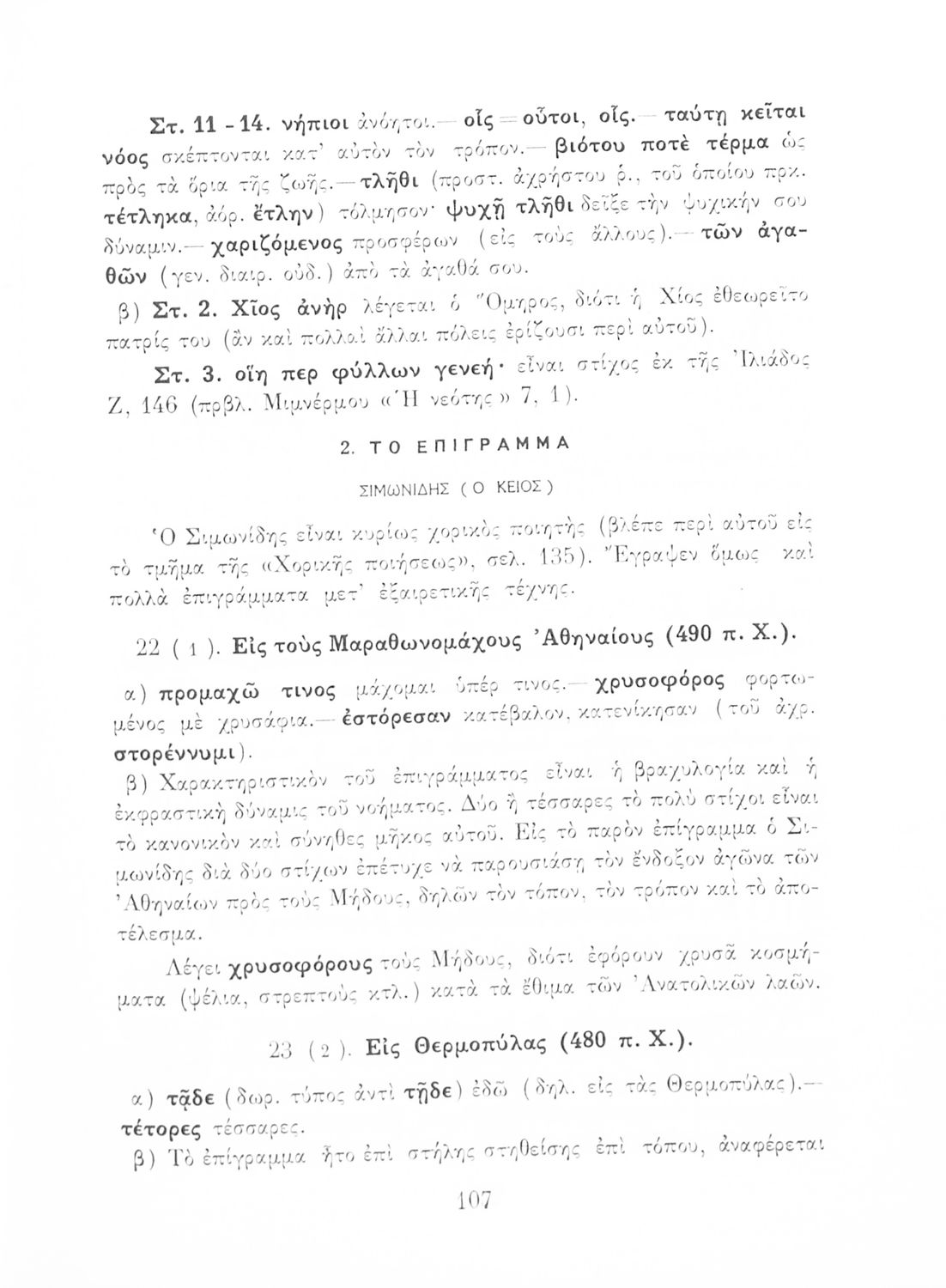Σχολικό εγχειρίδιο Αρχαίων Ελληνικών Ε΄ Γυμνασίου που περιλαμβάνει αποσπάσματα έργων αρχαίων Ελλήνων λυρικών, πολιτικές και γνωμικές ελεγείες, ιάμβους και επιγράμματα. Περιέχει υπόμνημα με ερμηνευτικά, πραγματολογικά, γλωσσικά και γραμματικά σχόλια και μετρικό παράρτημα.