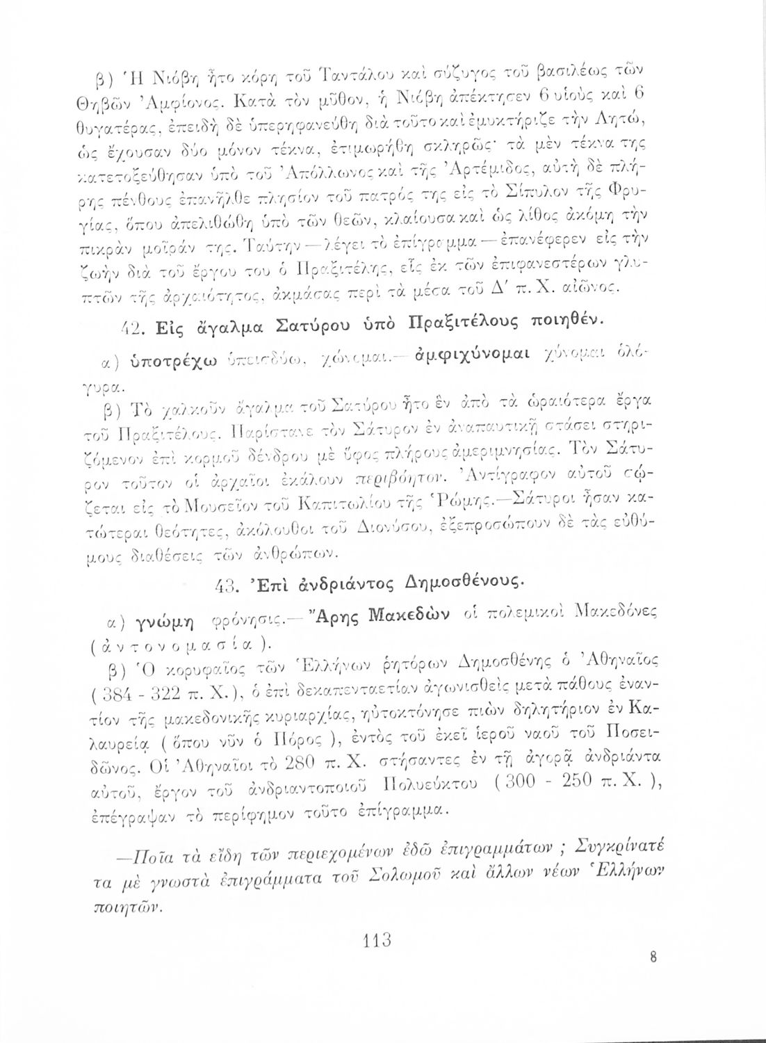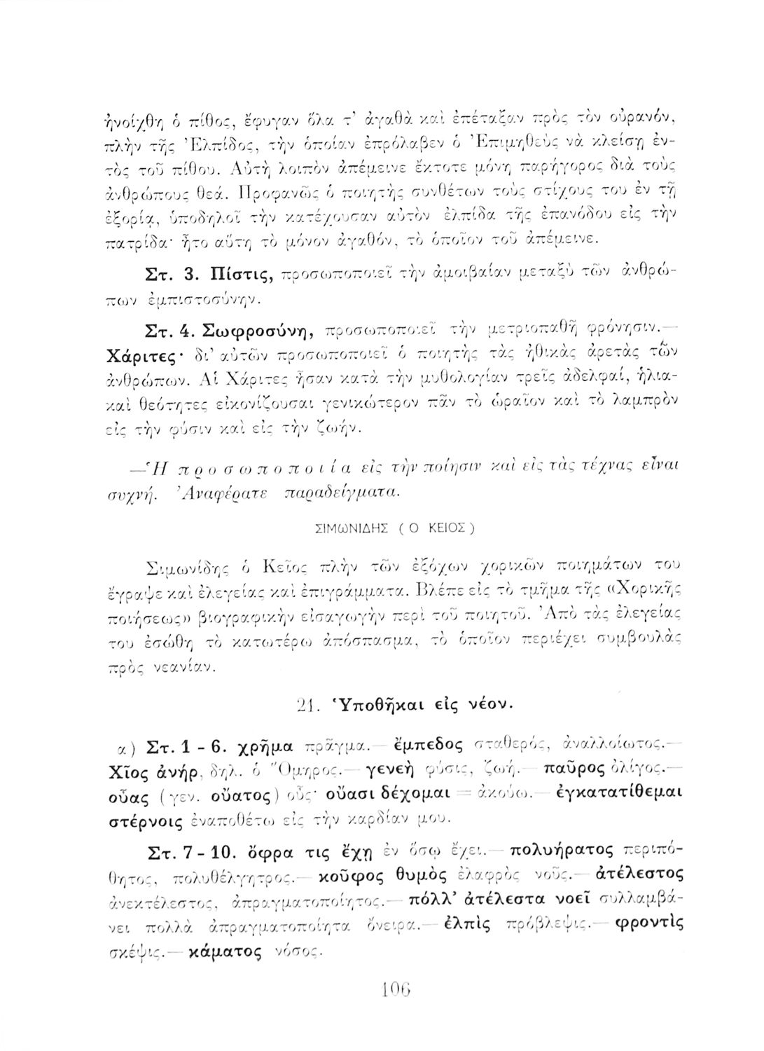 Σχολικό εγχειρίδιο Αρχαίων Ελληνικών Ε΄ Γυμνασίου που περιλαμβάνει αποσπάσματα από έργα αρχαίων Ελλήνων και χριστιανών ποιητών, και λεξιλόγιο