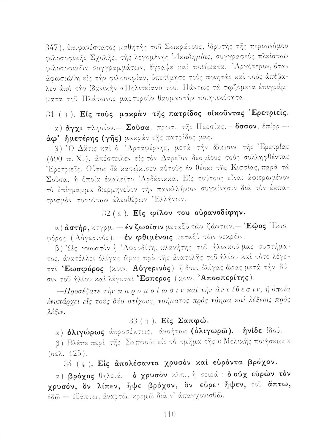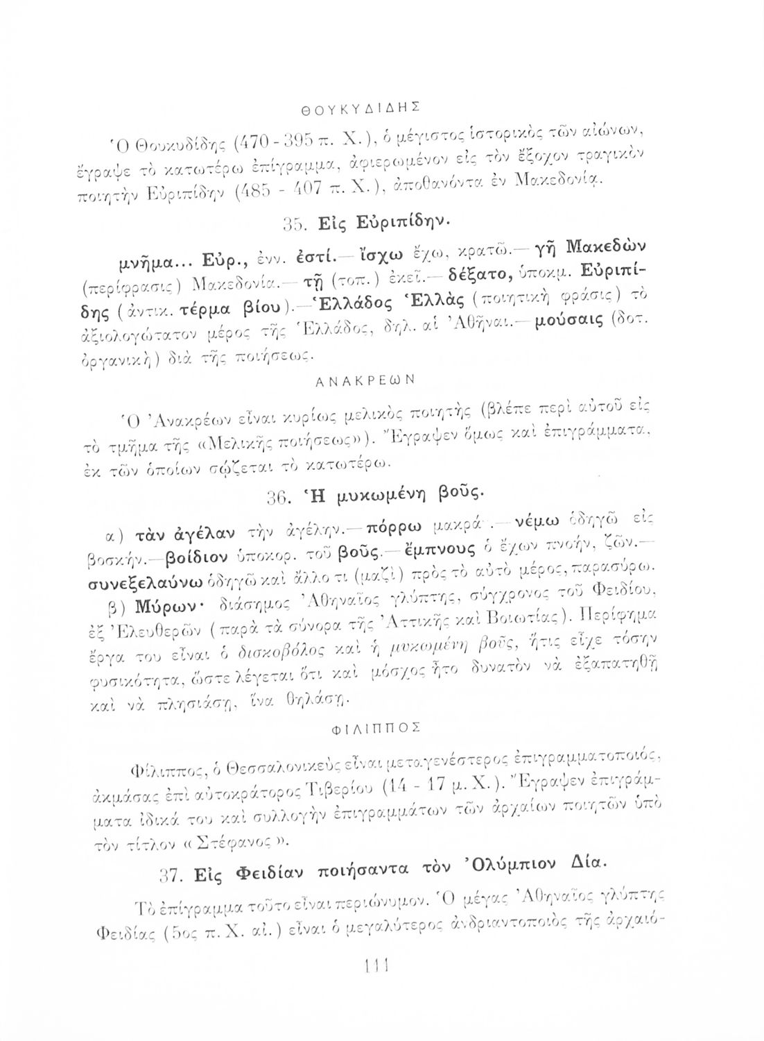 Αρχαίοι Έλληνες λυρικοί, (εκλογαί), δια την Ε΄ τάξιν των εξατάξιων Γυμνασίων