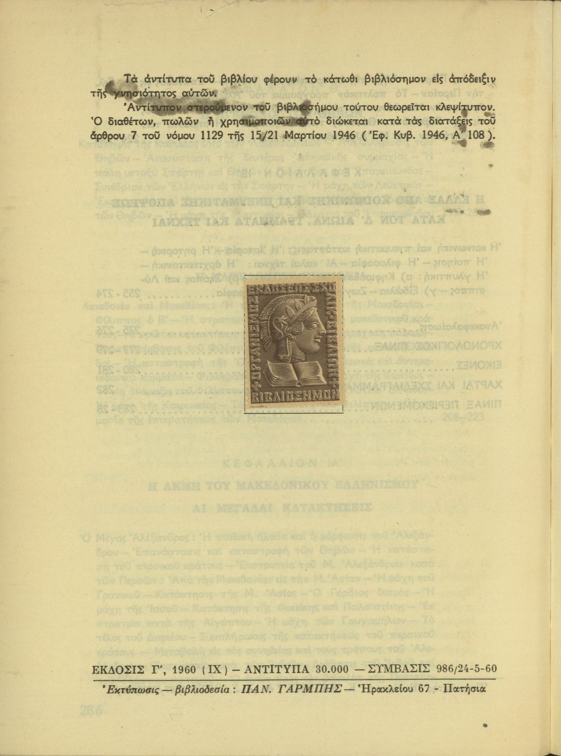 Τίτλος: Ιστορία των ανατολικών λαών και της αρχαίας Ελλάδος από των Μηδικών πολέμων μέχρι του θανάτου του Μεγάλου Αλεξάνδρου δια την Β΄ τάξιν των Εξατάξιων Γυμνασίων