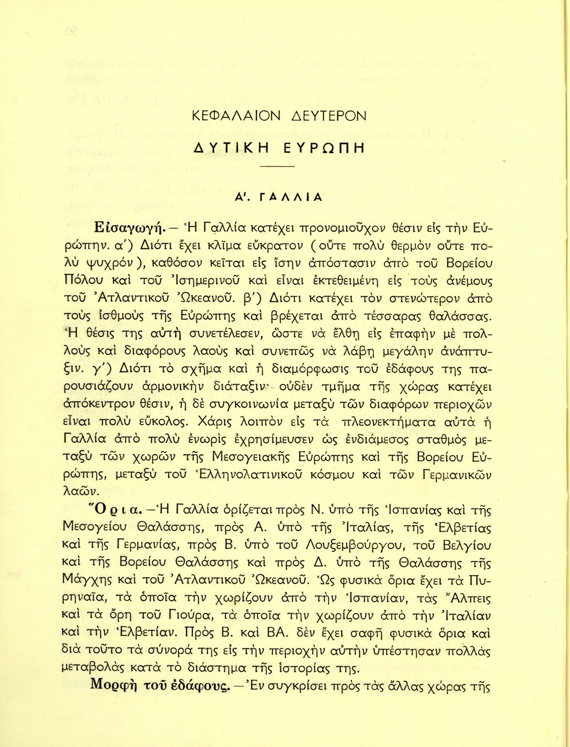Βαθμίδα εκπαίδευσης: Δευτεροβάθμια Τάξη: Β' Γυμνασίου Μάθημα: Γεωγραφία Γλώσσα: Καθαρεύουσα Παρουσίαση περιεχομένου: Σχολικό εγχειρίδιο Γεωγραφίας Β' Γυμνασίου που εξετάζει τις χώρες της Ευρώπης, πλην της Ελλάδας, από γεωμορφολογική, οικονομική και πολιτική άποψη. |