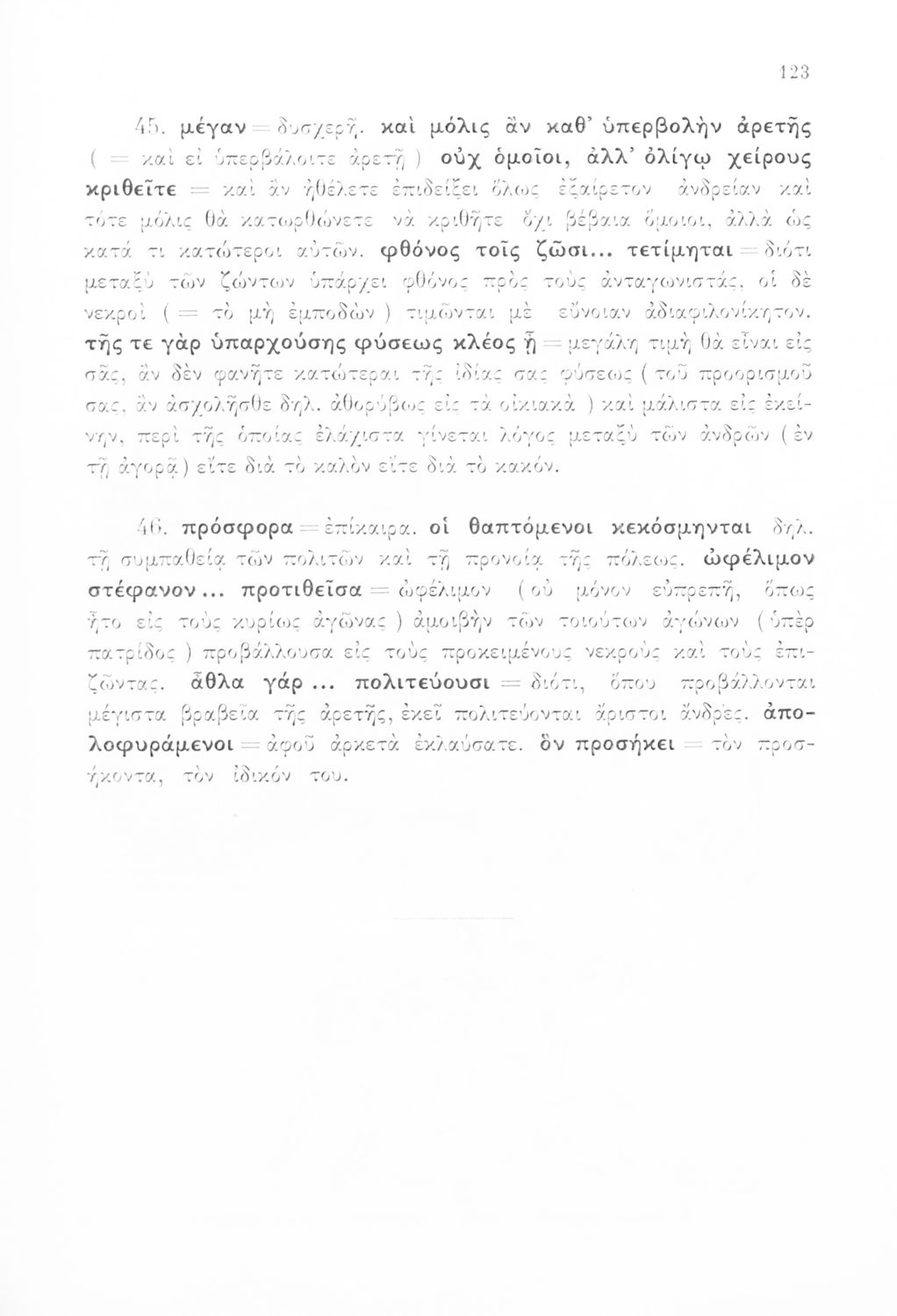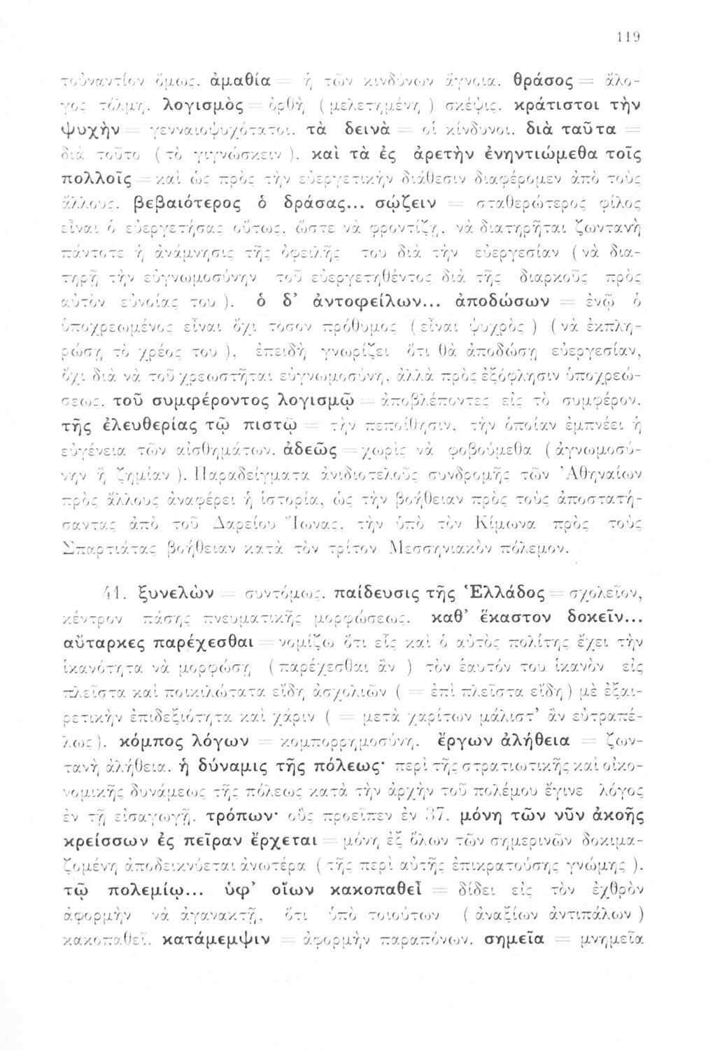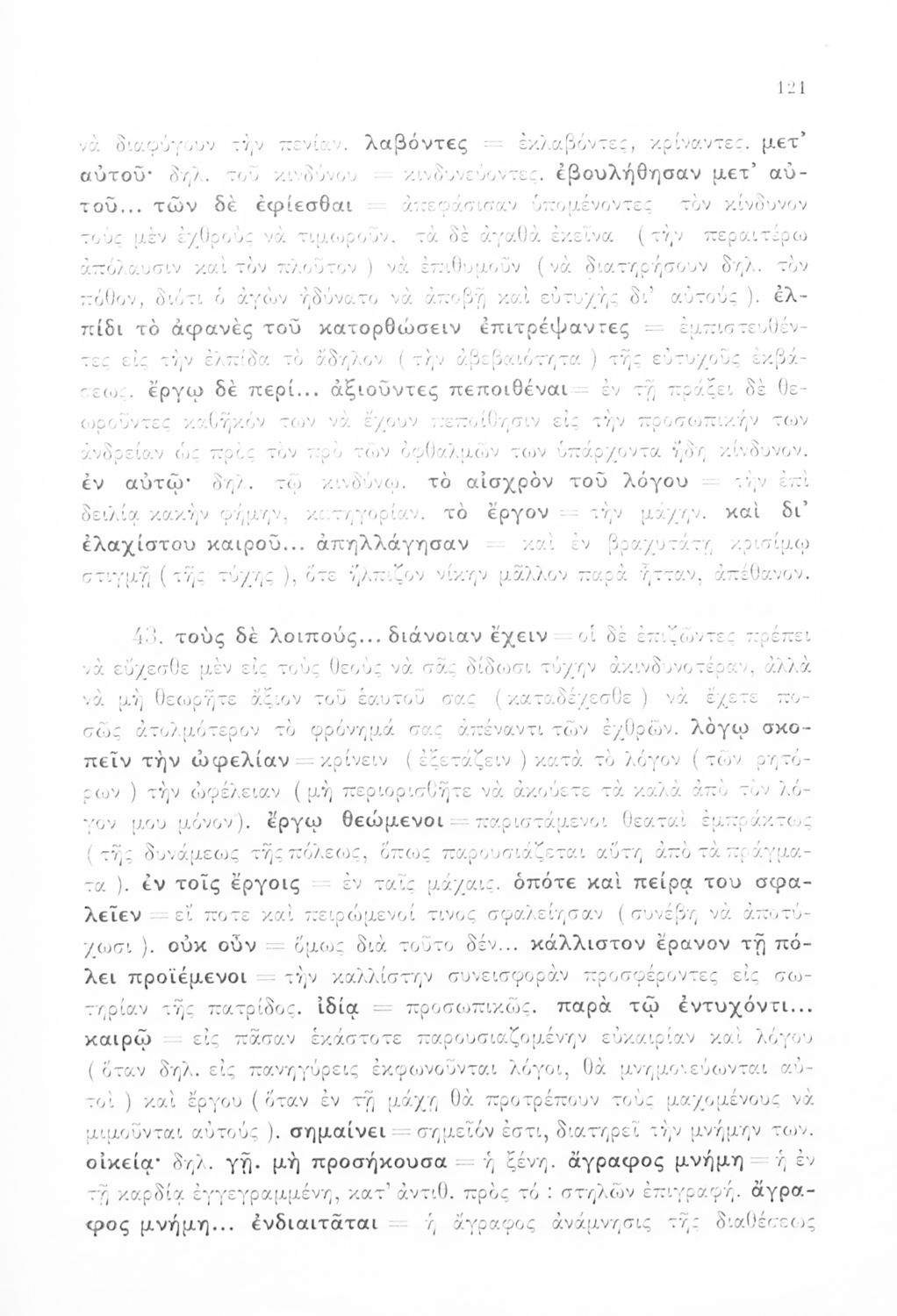 Βαθμίδα εκπαίδευσης: Δευτεροβάθμια Μάθημα: Αρχαία Ελληνικά Γλώσσα: Καθαρεύουσα Παρουσίαση περιεχομένου: Σχολικό εγχειρίδιο Αρχαίων Ελληνικών που περιέχει εισαγωγή στη ζωή και το έργο του Θουκυδίδη, αποσπάσματα από τα Πλαταιϊκά, τα Λεσβιακά και τον Επιτάφιο του Περικλή και ερμηνευτικές σημειώσεις. |