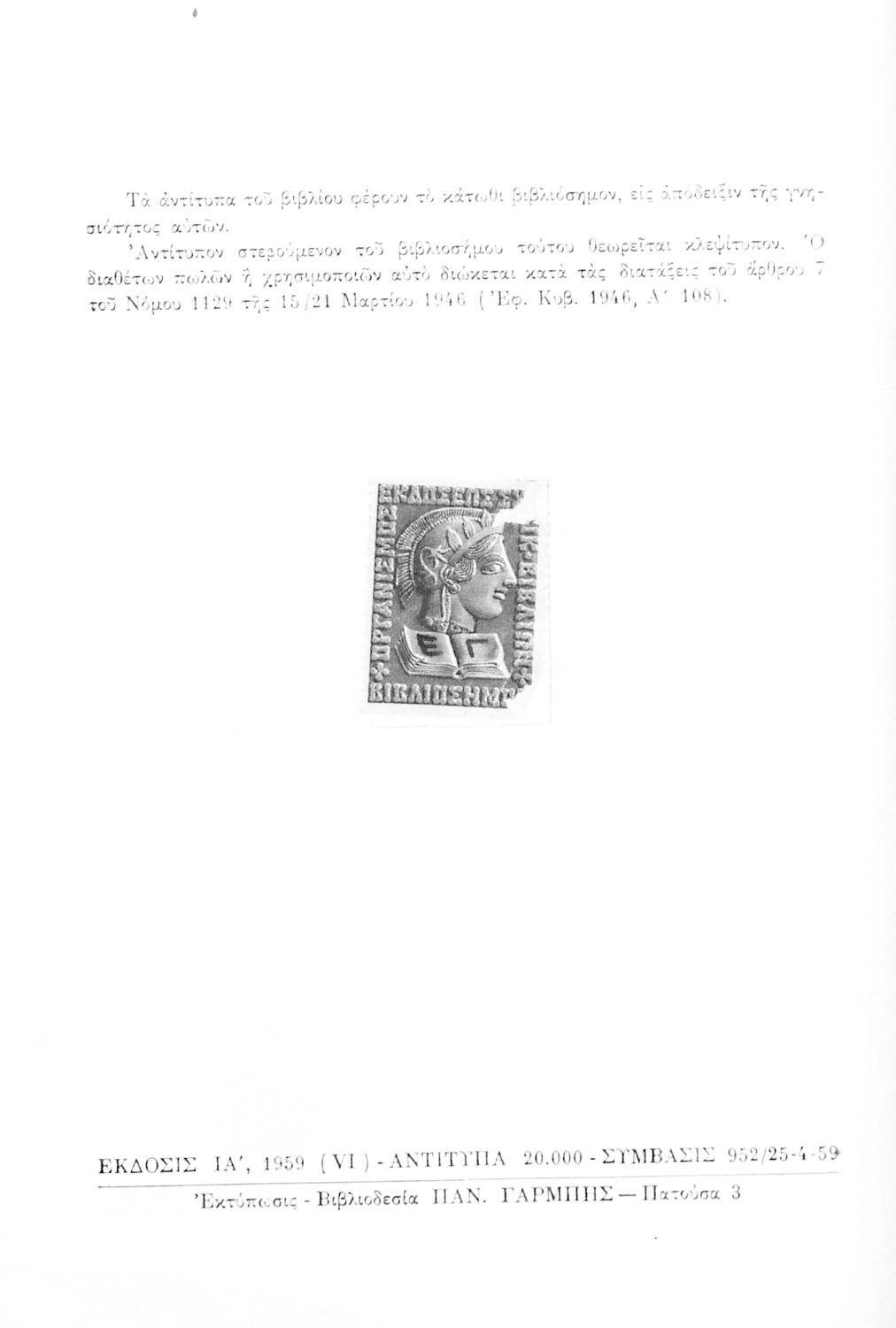 Εντοπισμός πρωτοτύπου: Ελληνικό Λογοτεχνικό και Ιστορικό Αρχείο Κωδικός βιβλιοθήκης: 1959 ΘΟΥ |