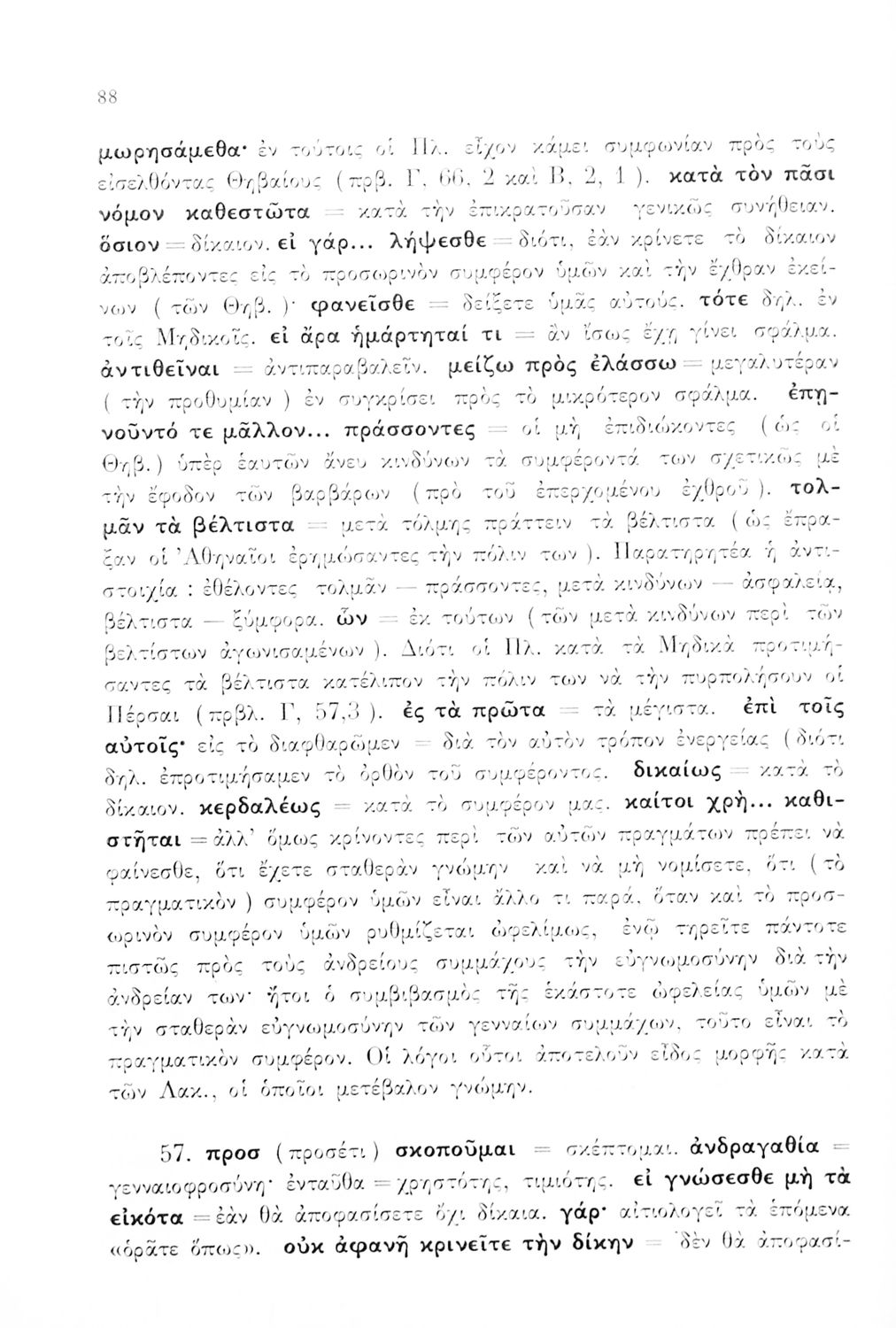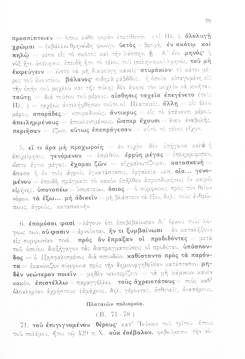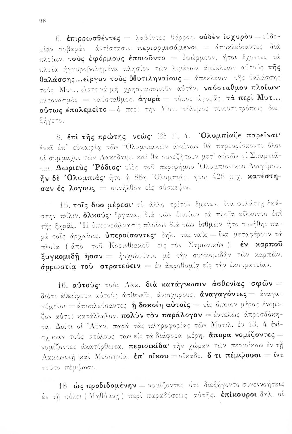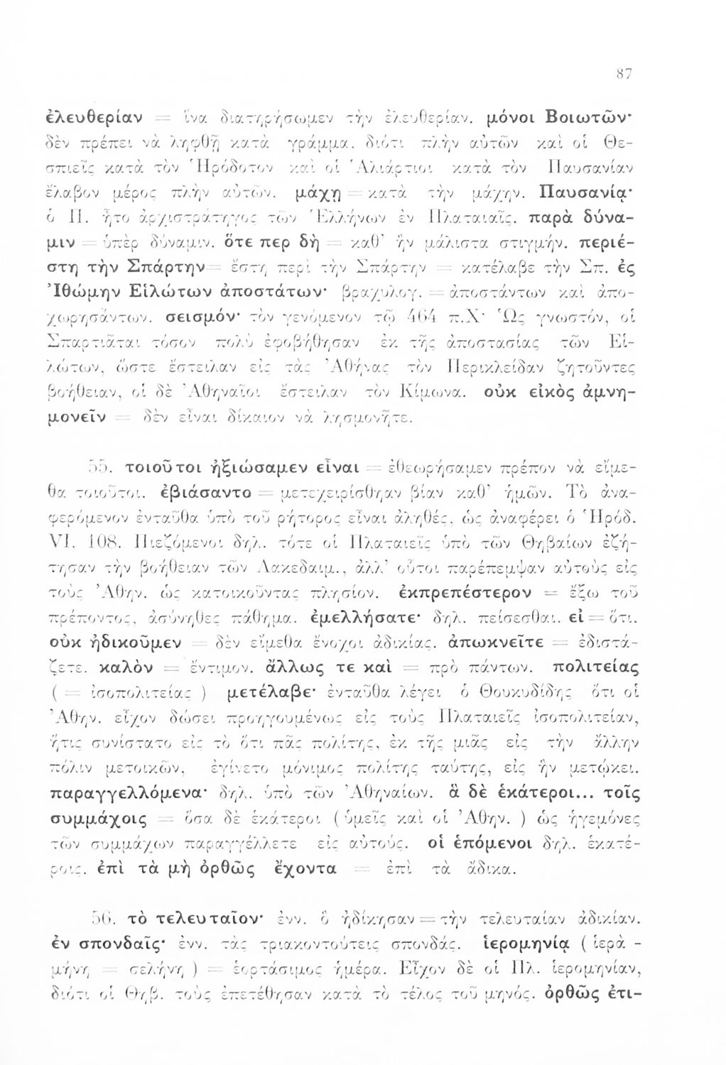 Σχολικό εγχειρίδιο Αρχαίων Ελληνικών που περιέχει εισαγωγή στη ζωή και το έργο του Θουκυδίδη, αποσπάσματα από τα Πλαταιϊκά, τα Λεσβιακά και τον Επιτάφιο του Περικλή και ερμηνευτικές σημειώσεις.