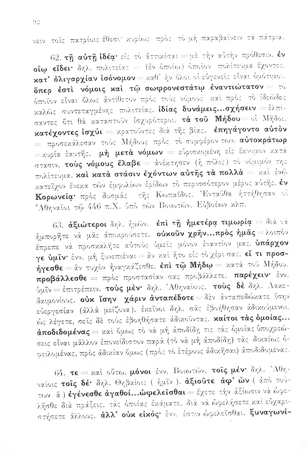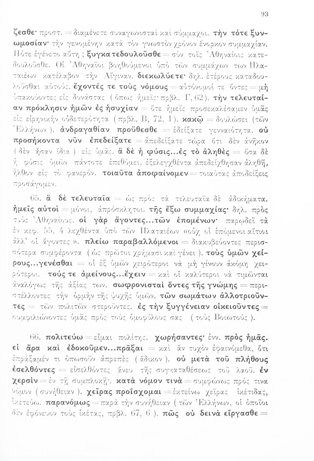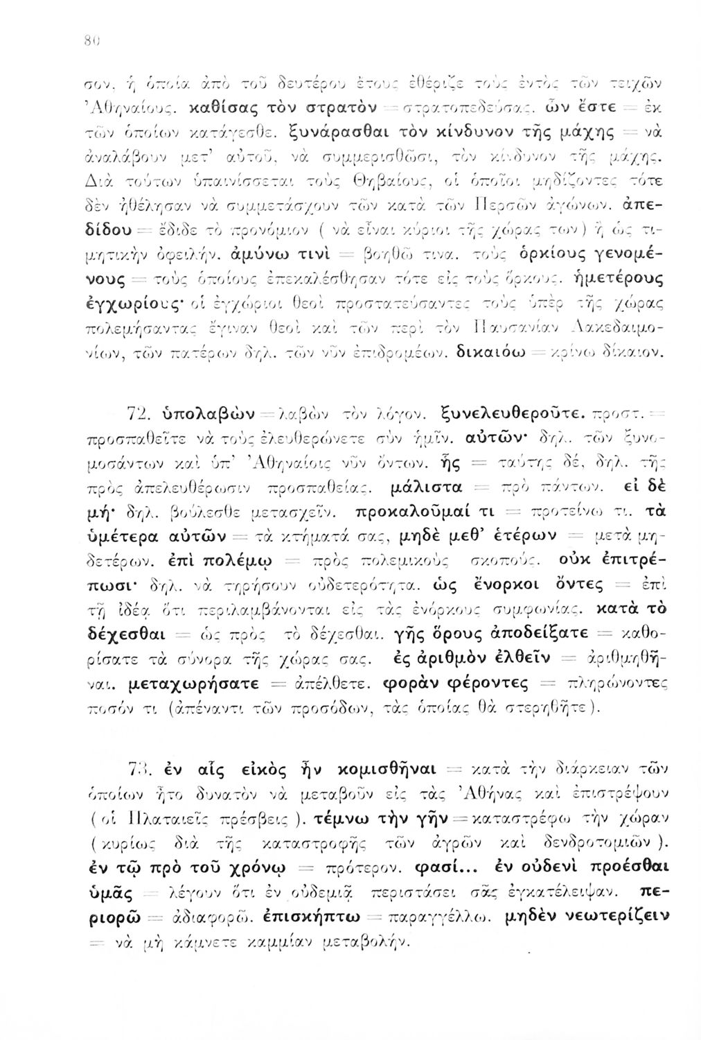 Βαθμίδα εκπαίδευσης: Δευτεροβάθμια Μάθημα: Αρχαία Ελληνικά Γλώσσα: Καθαρεύουσα Παρουσίαση περιεχομένου: Σχολικό εγχειρίδιο Αρχαίων Ελληνικών που περιέχει εισαγωγή στη ζωή και το έργο του Θουκυδίδη, αποσπάσματα από τα Πλαταιϊκά, τα Λεσβιακά και τον Επιτάφιο του Περικλή και ερμηνευτικές σημειώσεις. |