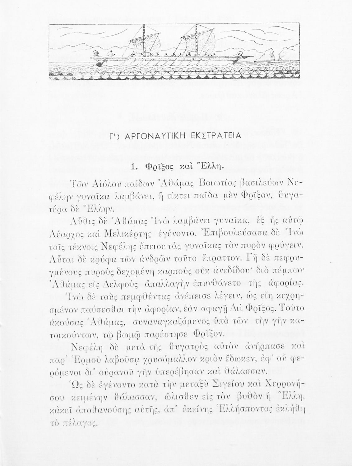 Σχολικό εγχειρίδιο Αρχαίων Ελληνικών Α΄ Γυμνασίου που περιέχει αποσπάσματα από έργα αρχαίων Ελλήνων συγγραφέων, ερμηνευτικά και πραγματολογικά σχόλια και γραμματικές παρατηρήσεις.