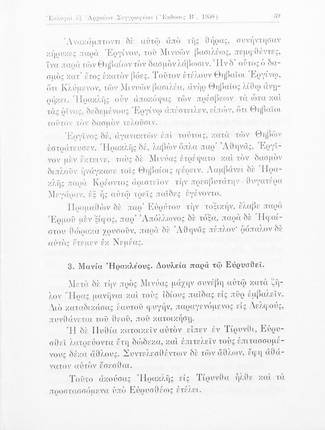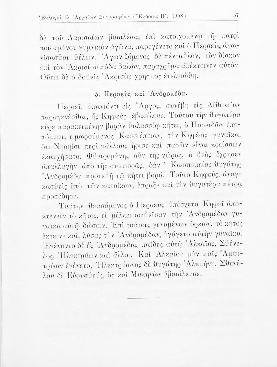 Σχολικό εγχειρίδιο Αρχαίων Ελληνικών Β΄ και Γ΄ Γυμνασίου που περιέχει αποσπάσματα από έργα αρχαίων Ελλήνων συγγραφέων, ερμηνευτικά και πραγματολογικά σχόλια και γραμματικές παρατηρήσεις.