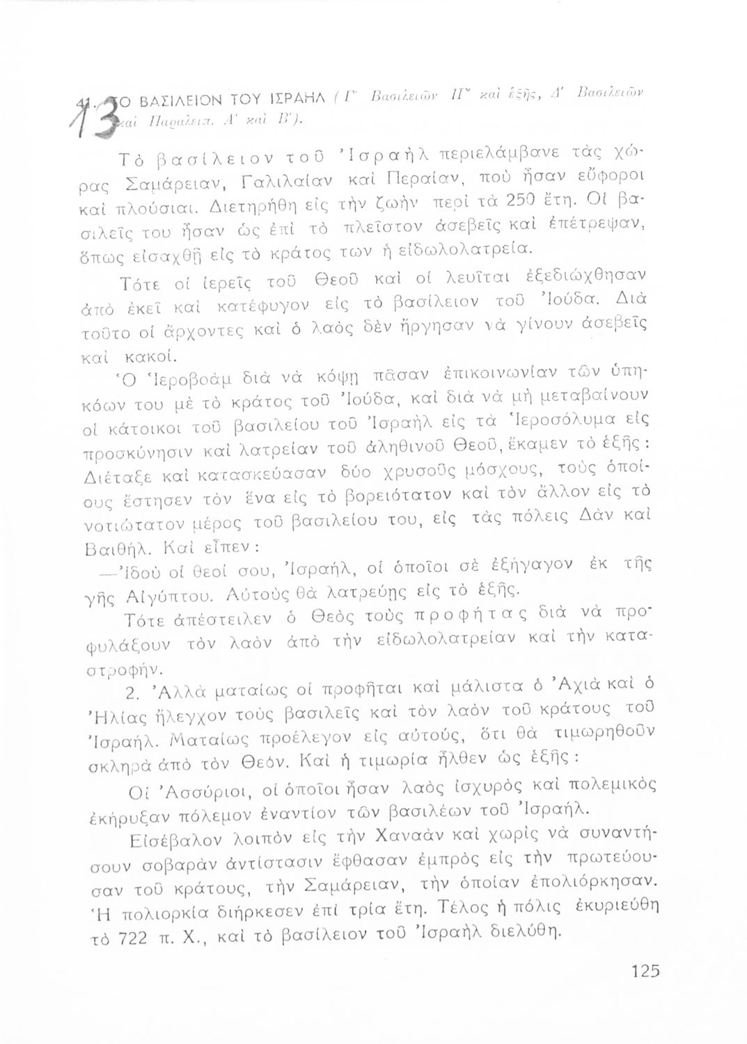Σχολικό εγχειρίδιο Θρησκευτικών που συνιστά μία εξιστόρηση της Παλαιάς Διαθήκης από τη δημιουργία του κόσμου ως την υποταγή των Εβραίων στους Ρωμαίους. Περιέχει και στοιχεία γεωγραφίας της Παλαιστίνης.