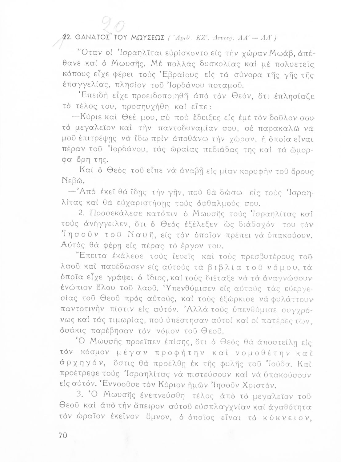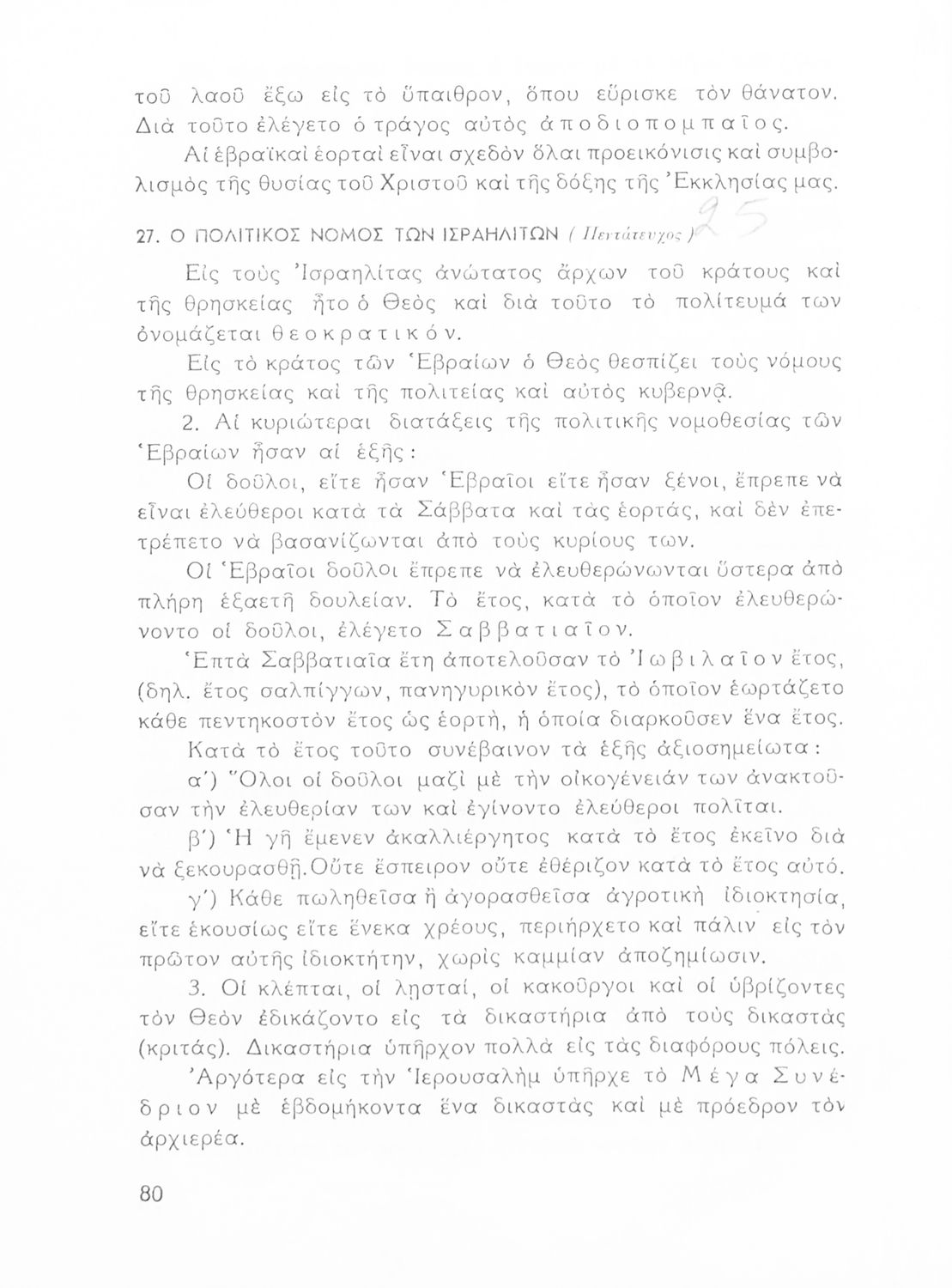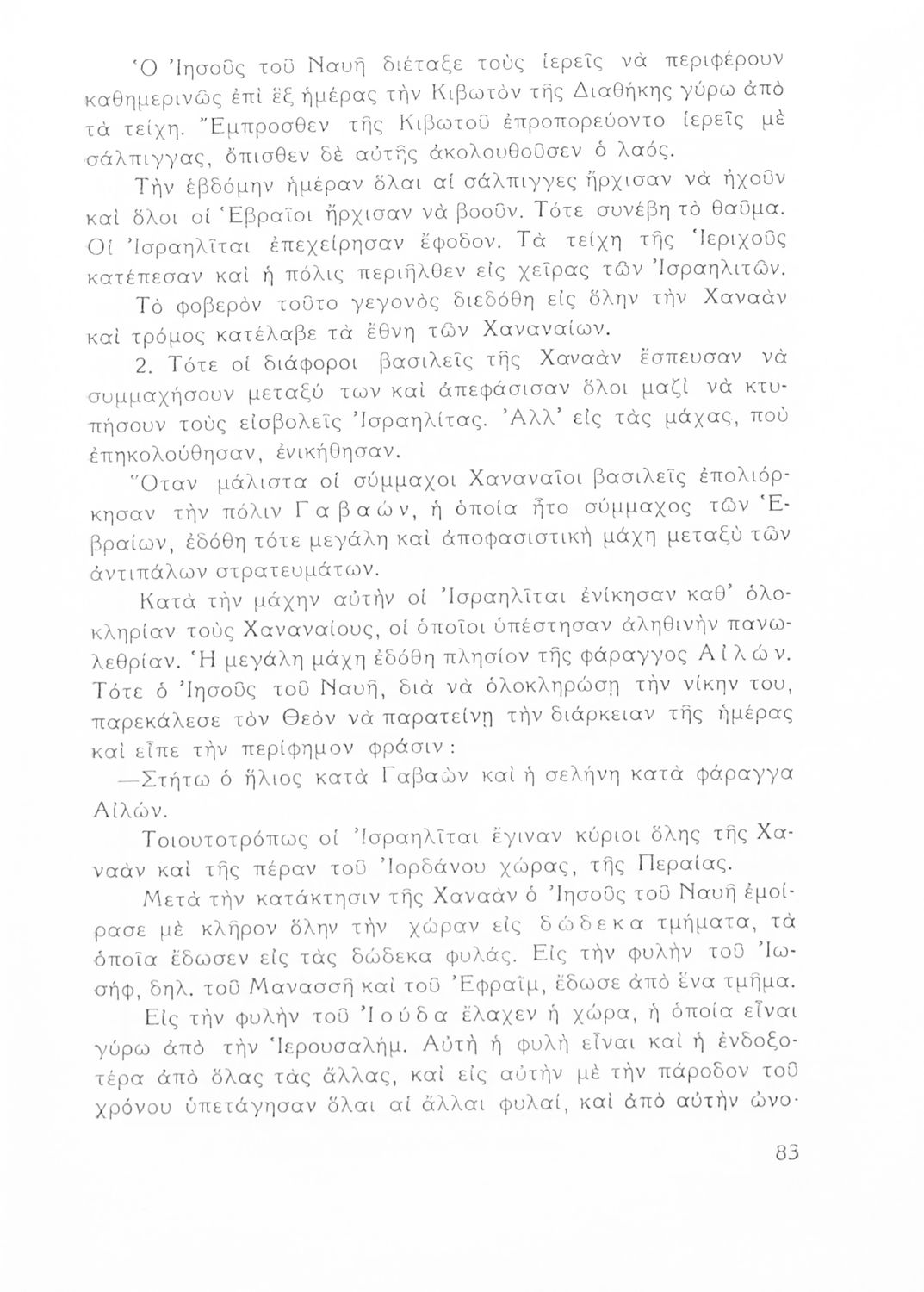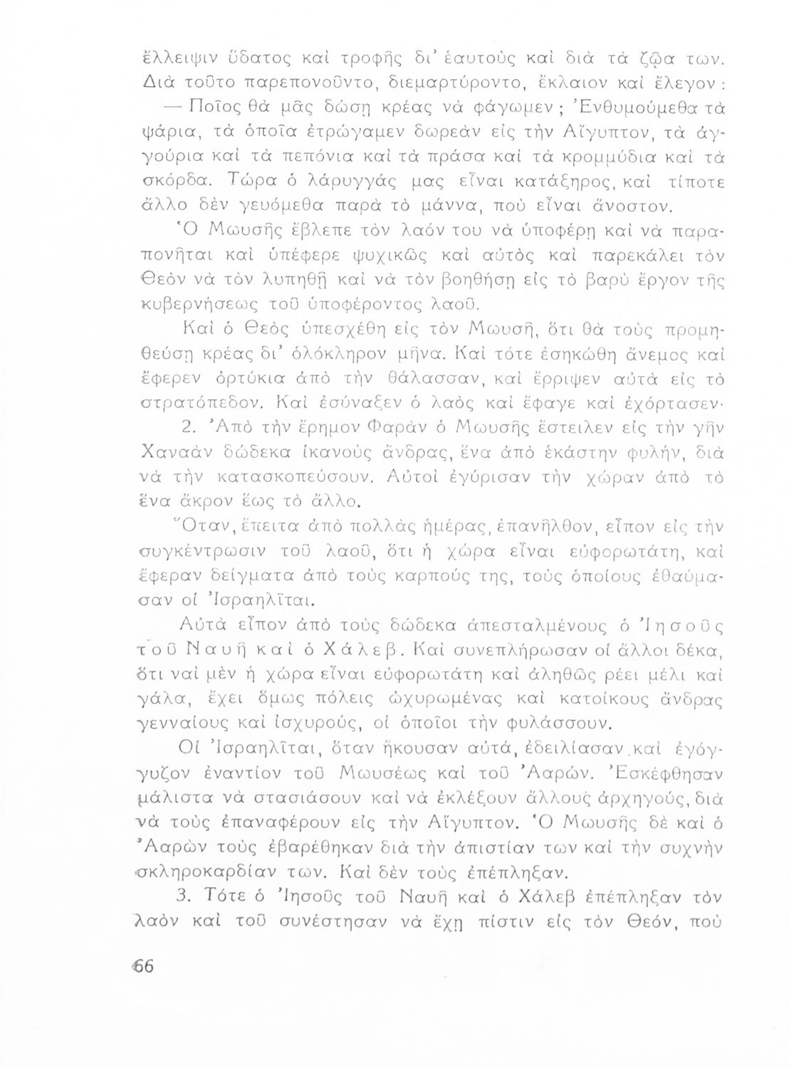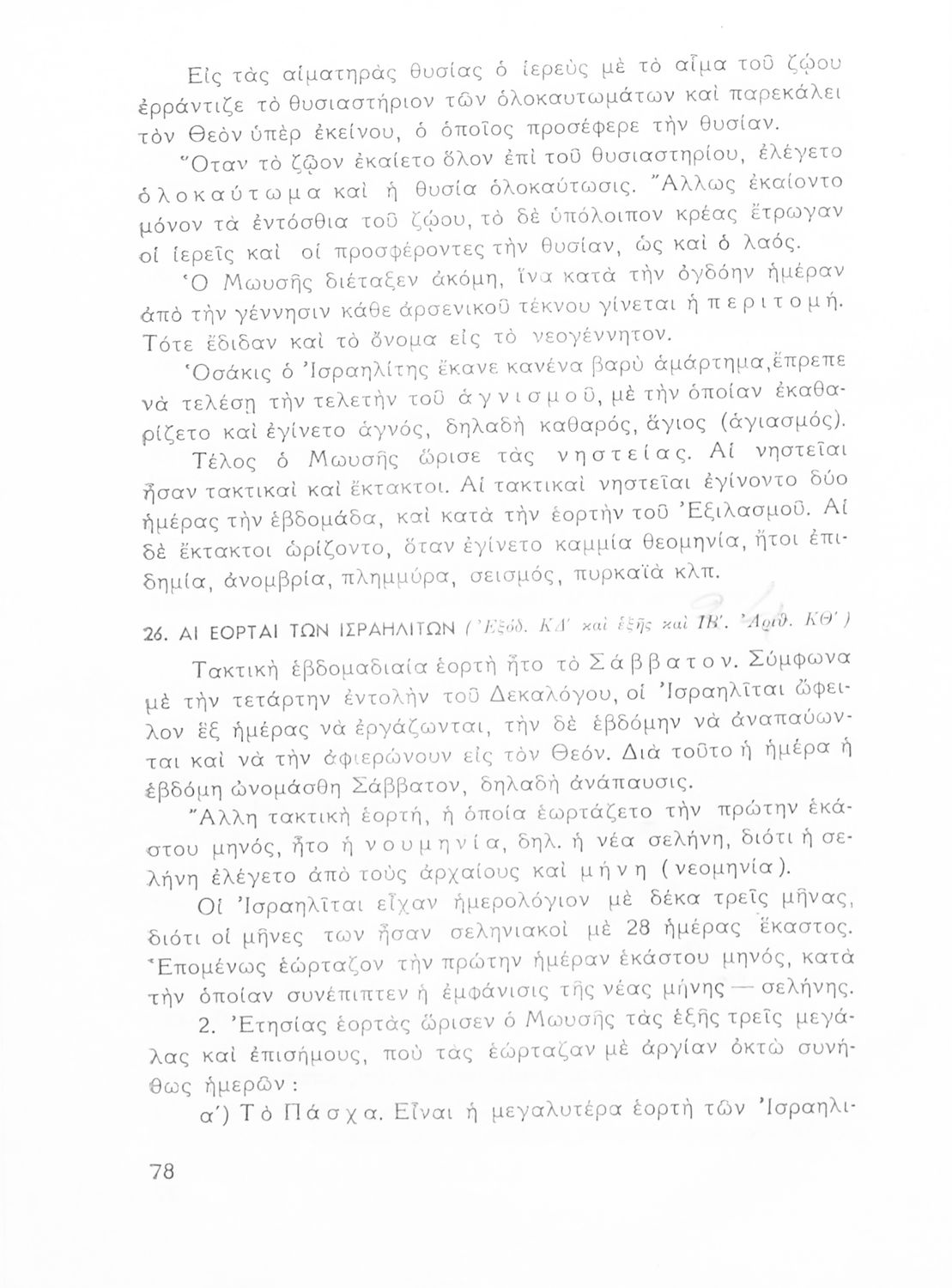 Σχολικό εγχειρίδιο Θρησκευτικών που συνιστά μία εξιστόρηση της Παλαιάς Διαθήκης από τη δημιουργία του κόσμου ως την υποταγή των Εβραίων στους Ρωμαίους. Περιέχει και στοιχεία γεωγραφίας της Παλαιστίνης.