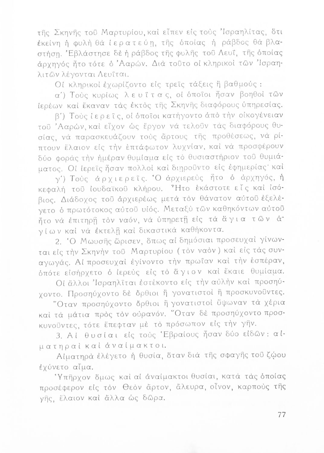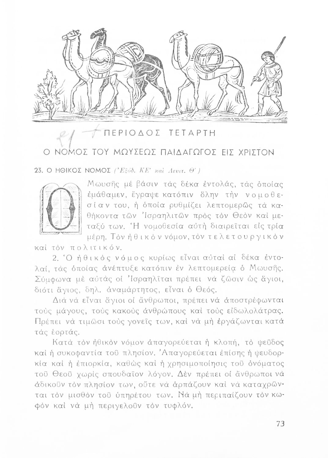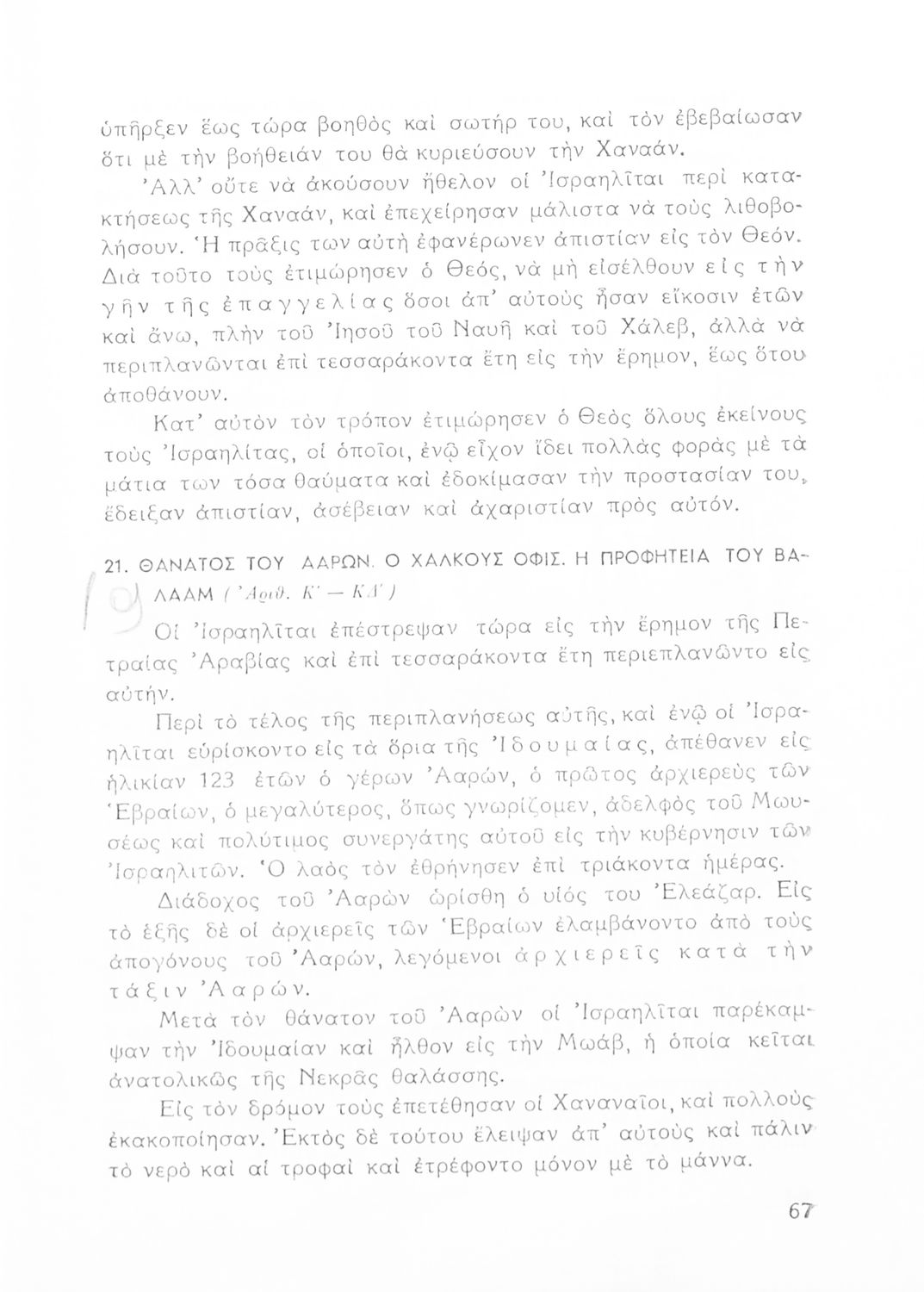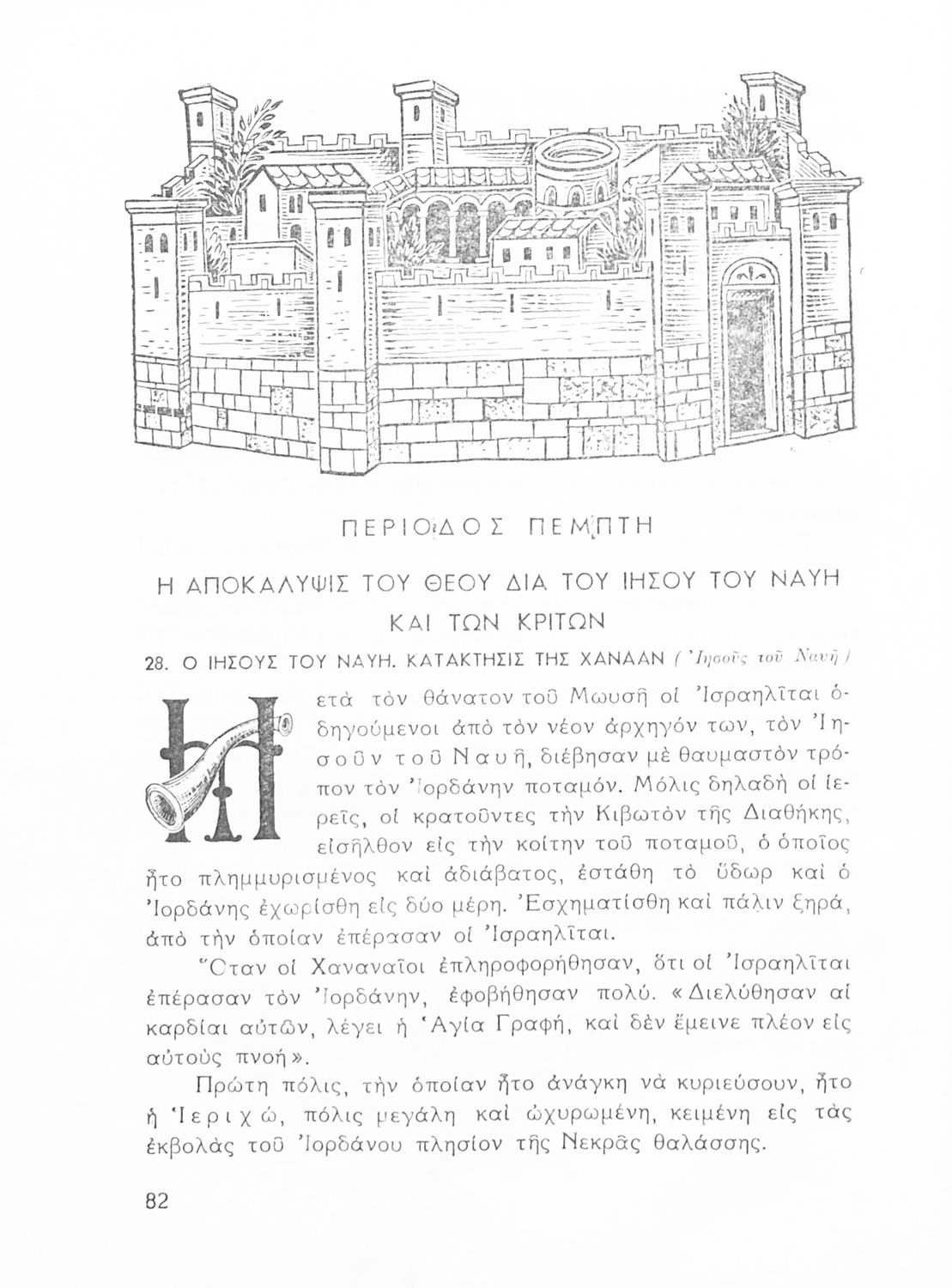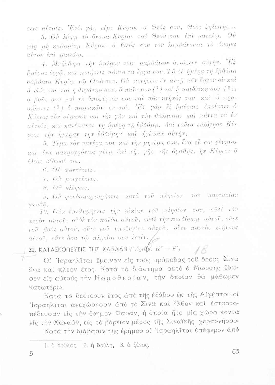 Σχολικό εγχειρίδιο Θρησκευτικών που συνιστά μία εξιστόρηση της Παλαιάς Διαθήκης από τη δημιουργία του κόσμου ως την υποταγή των Εβραίων στους Ρωμαίους. Περιέχει και στοιχεία γεωγραφίας της Παλαιστίνης.