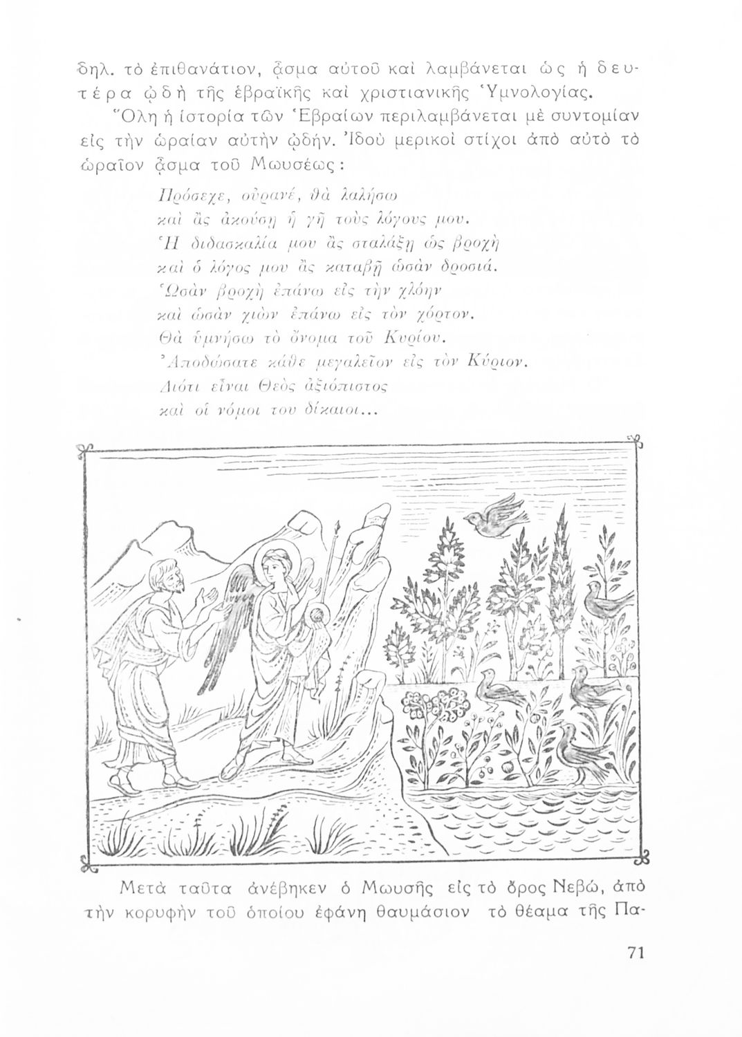 Σχολικό εγχειρίδιο Θρησκευτικών Δημοτικού που συνιστά μία εξιστόρηση της Παλαιάς Διαθήκης από τη δημιουργία του κόσμου ως τους Μακκαβαίους. Περιέχει και ποιήματα θρησκευτικού περιεχομένου.