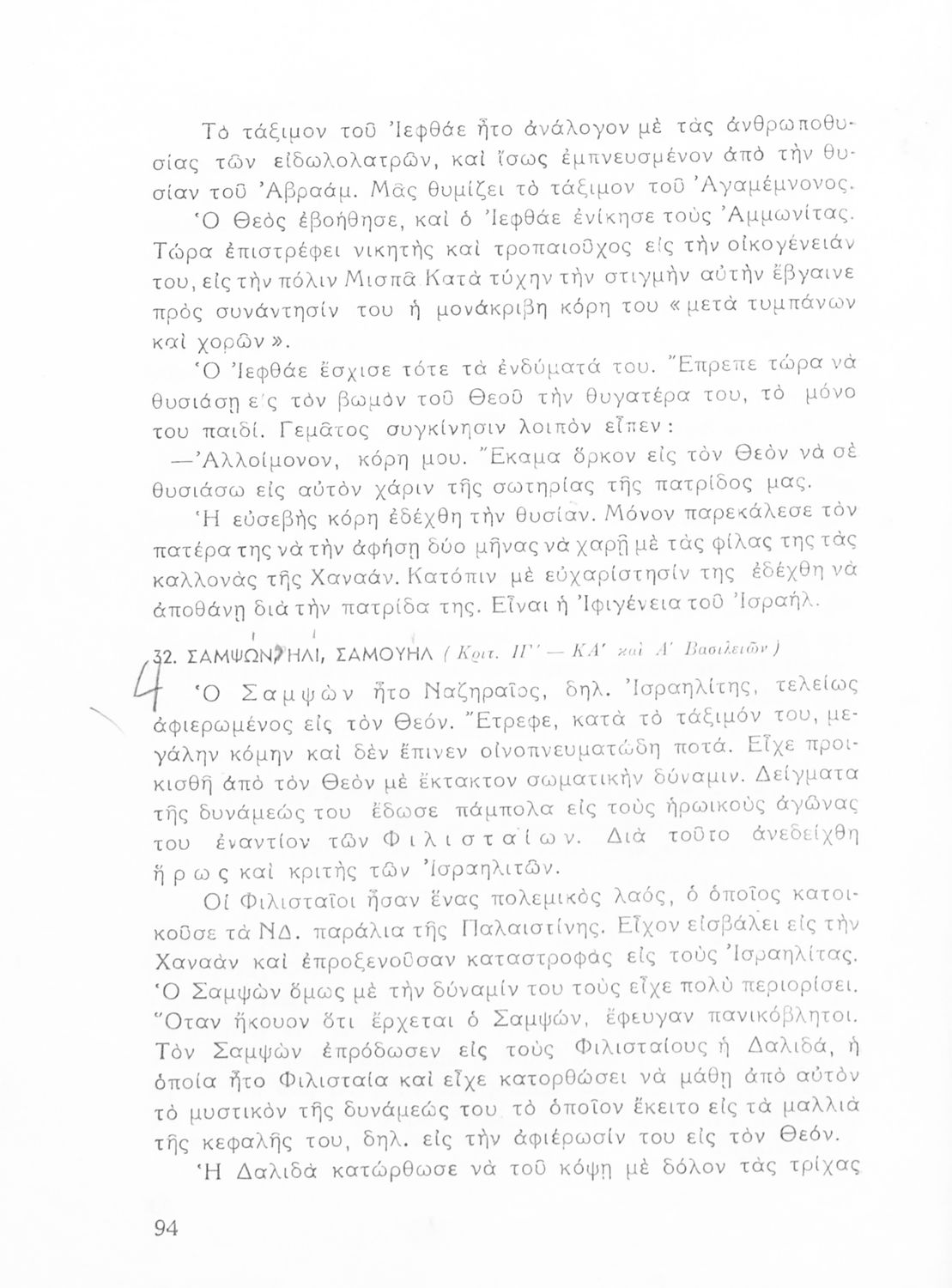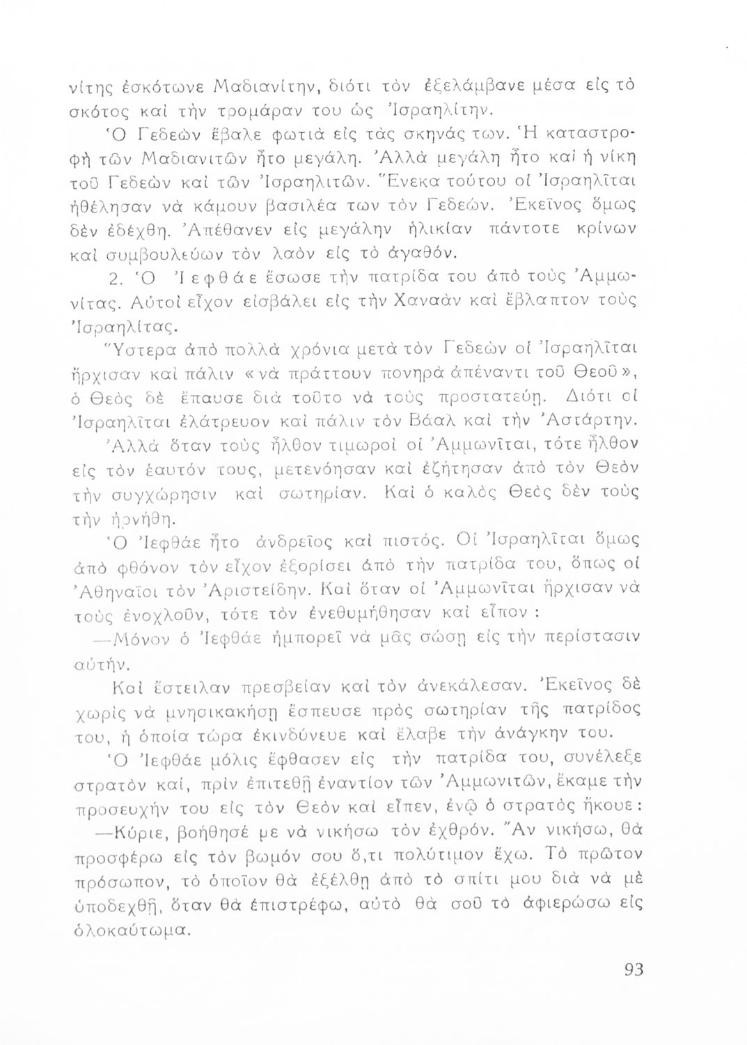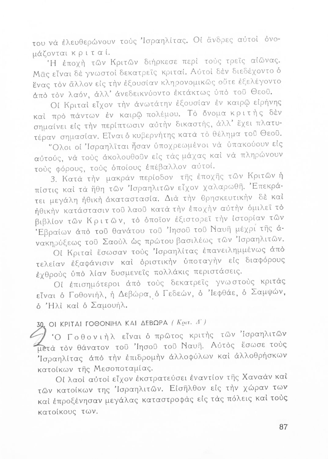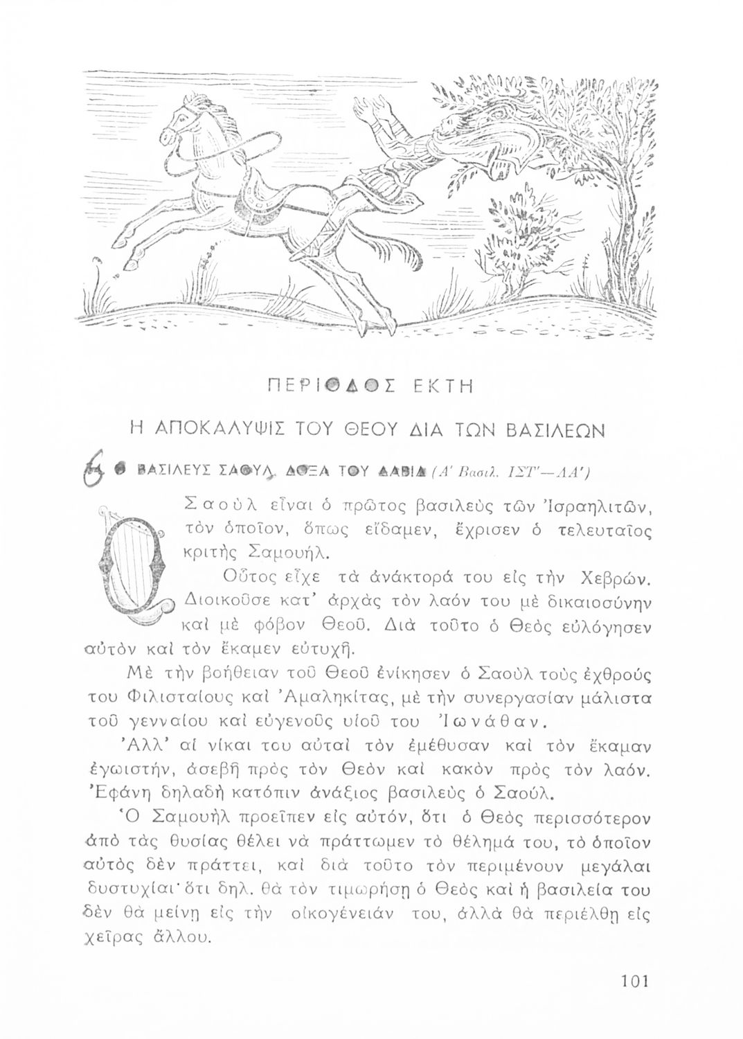 Σχολικό εγχειρίδιο Θρησκευτικών που συνιστά μία εξιστόρηση της Παλαιάς Διαθήκης από τη δημιουργία του κόσμου ως την υποταγή των Εβραίων στους Ρωμαίους. Περιέχει και στοιχεία γεωγραφίας της Παλαιστίνης.