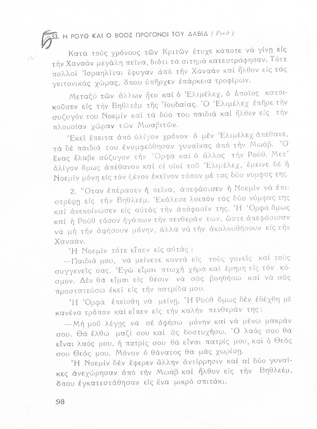Σχολικό εγχειρίδιο Θρησκευτικών που συνιστά μία εξιστόρηση της Παλαιάς Διαθήκης από τη δημιουργία του κόσμου ως την υποταγή των Εβραίων στους Ρωμαίους.