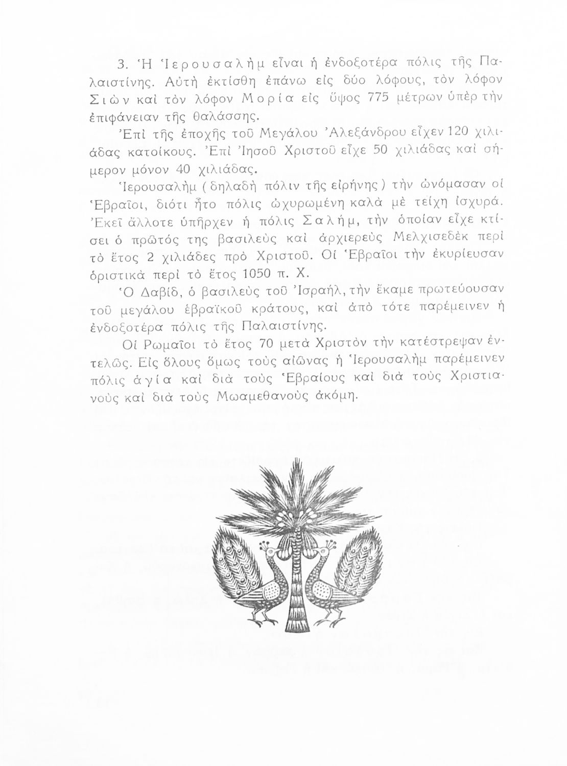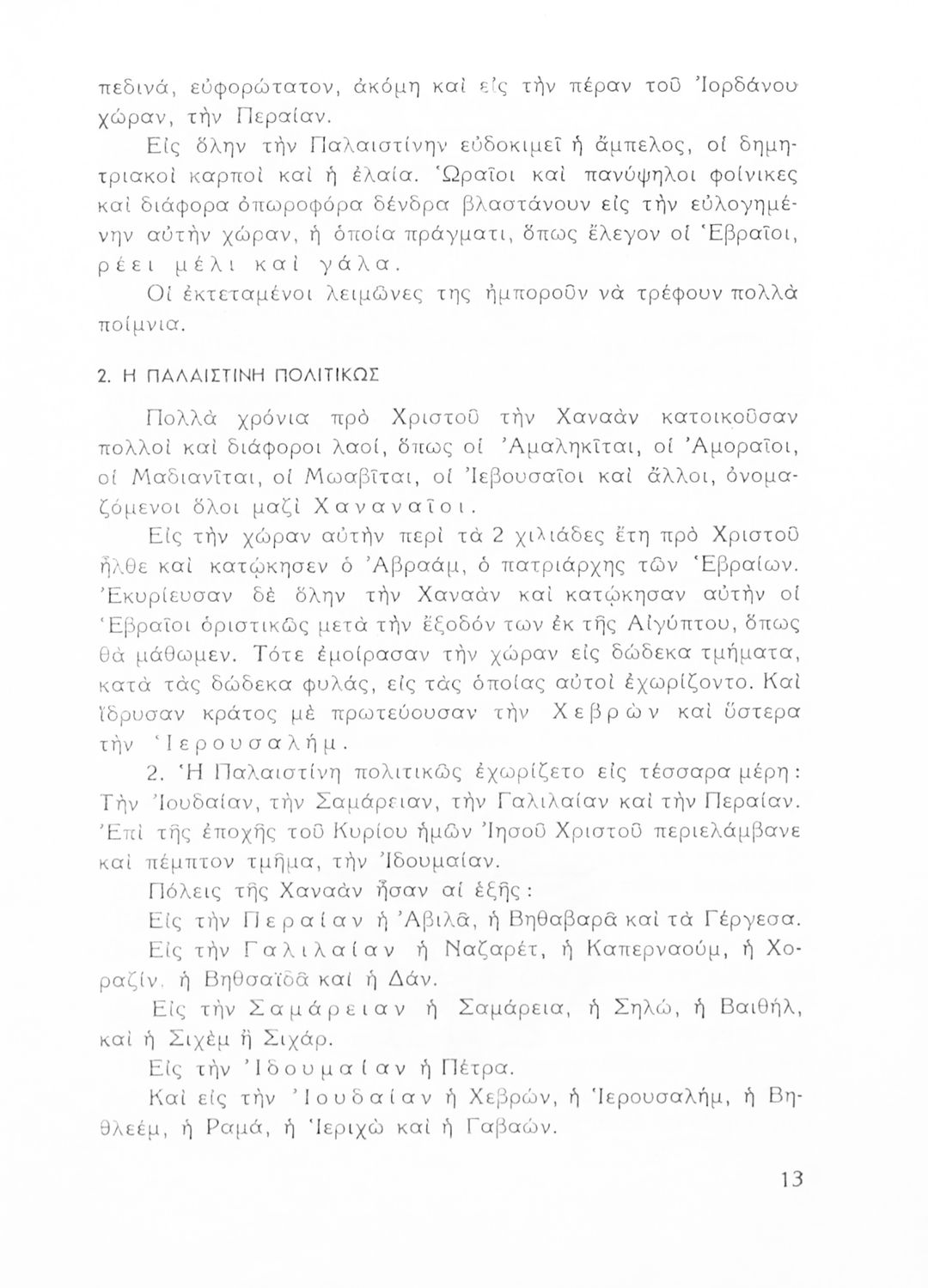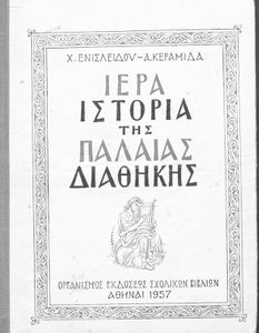 Σχολικό εγχειρίδιο Θρησκευτικών που συνιστά μία εξιστόρηση της Παλαιάς Διαθήκης από τη δημιουργία του κόσμου ως την υποταγή των Εβραίων στους Ρωμαίους. Περιέχει και στοιχεία γεωγραφίας της Παλαιστίνης.