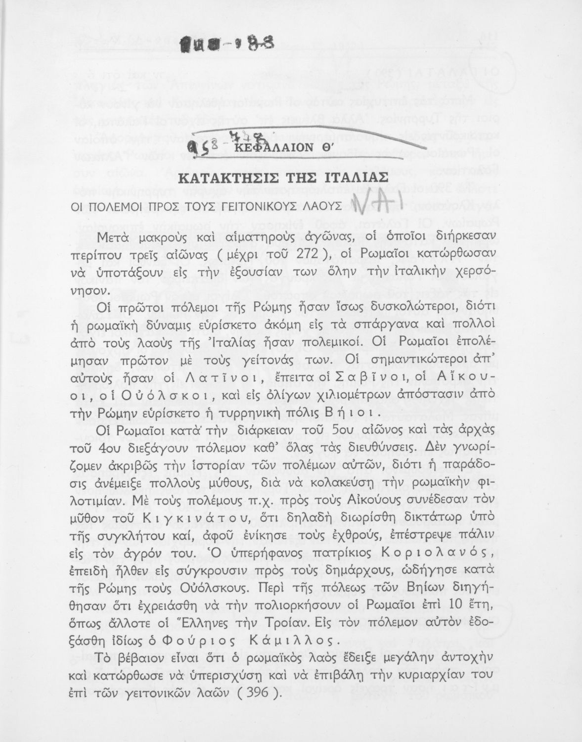 Τίτλος: Ιστορία Ελληνική - Ρωμαϊκή από του θανάτου του Μ. Αλεξάνδρου μέχρι του Μ. Κωνσταντίνου. Δια την Γ΄ Τάξη των Εξατάξιων Γυμνασίων